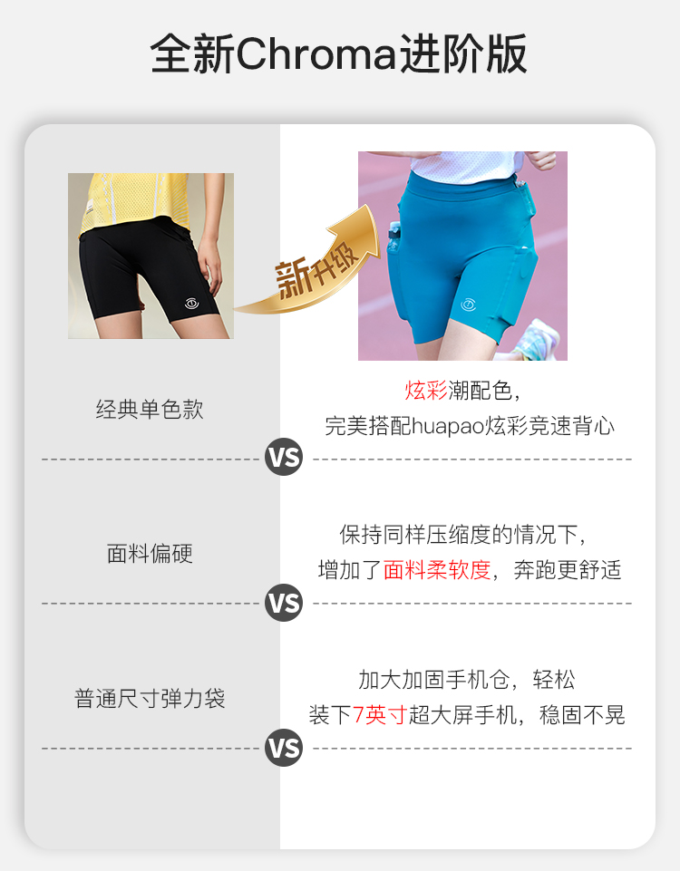 【顺丰发货】(可放水壶、手机、纸巾、钥匙、能量胶)画跑专业运动速干紧身四分压缩短裤 & Chroma酷迈系列