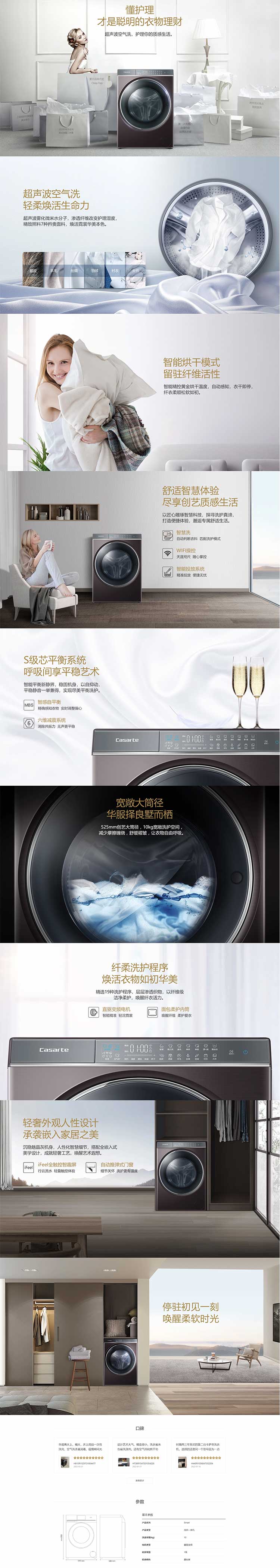 卡萨帝超声波空气洗 WiFi操控洗烘一体机C1 HD10P6LU1
