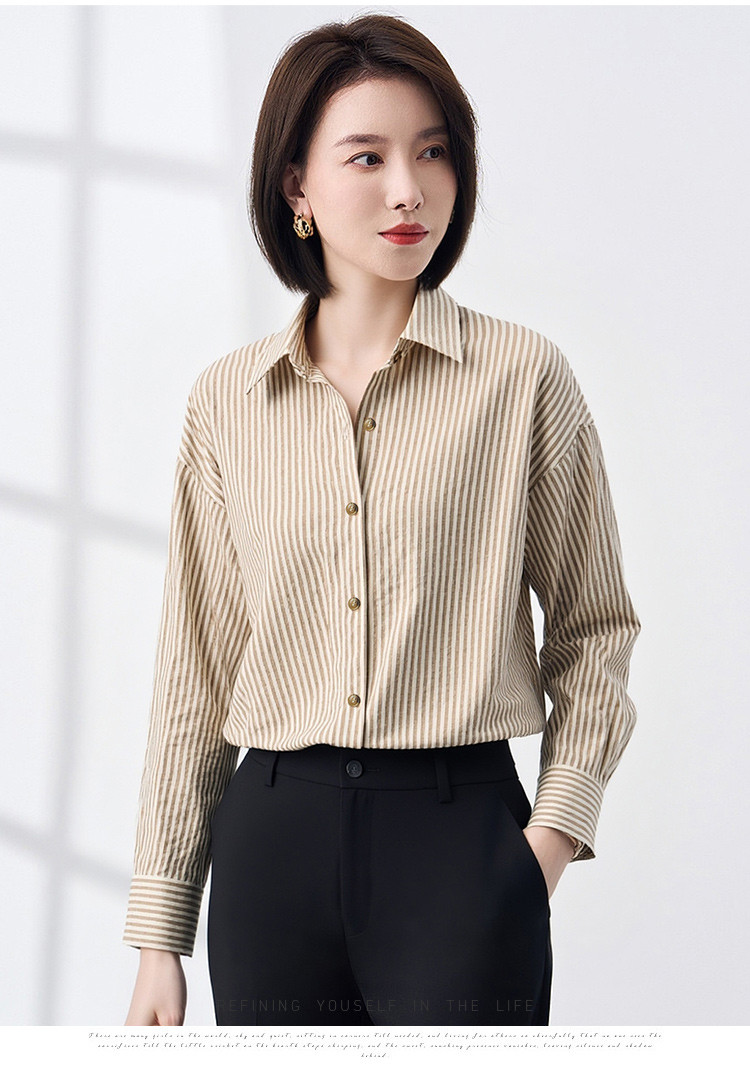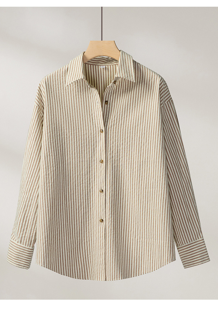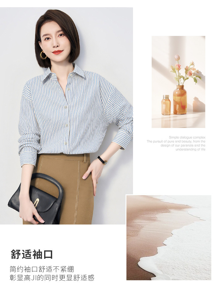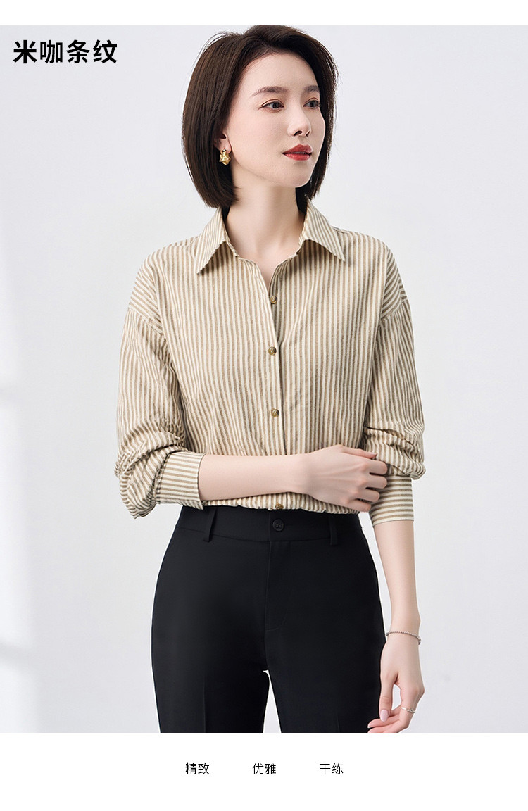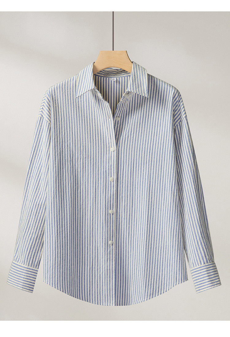 罗蒙秋冬厚款竖条纹长袖衬衫女士休闲百搭落肩宽松版磨毛棉质衬衣女上衣开衫