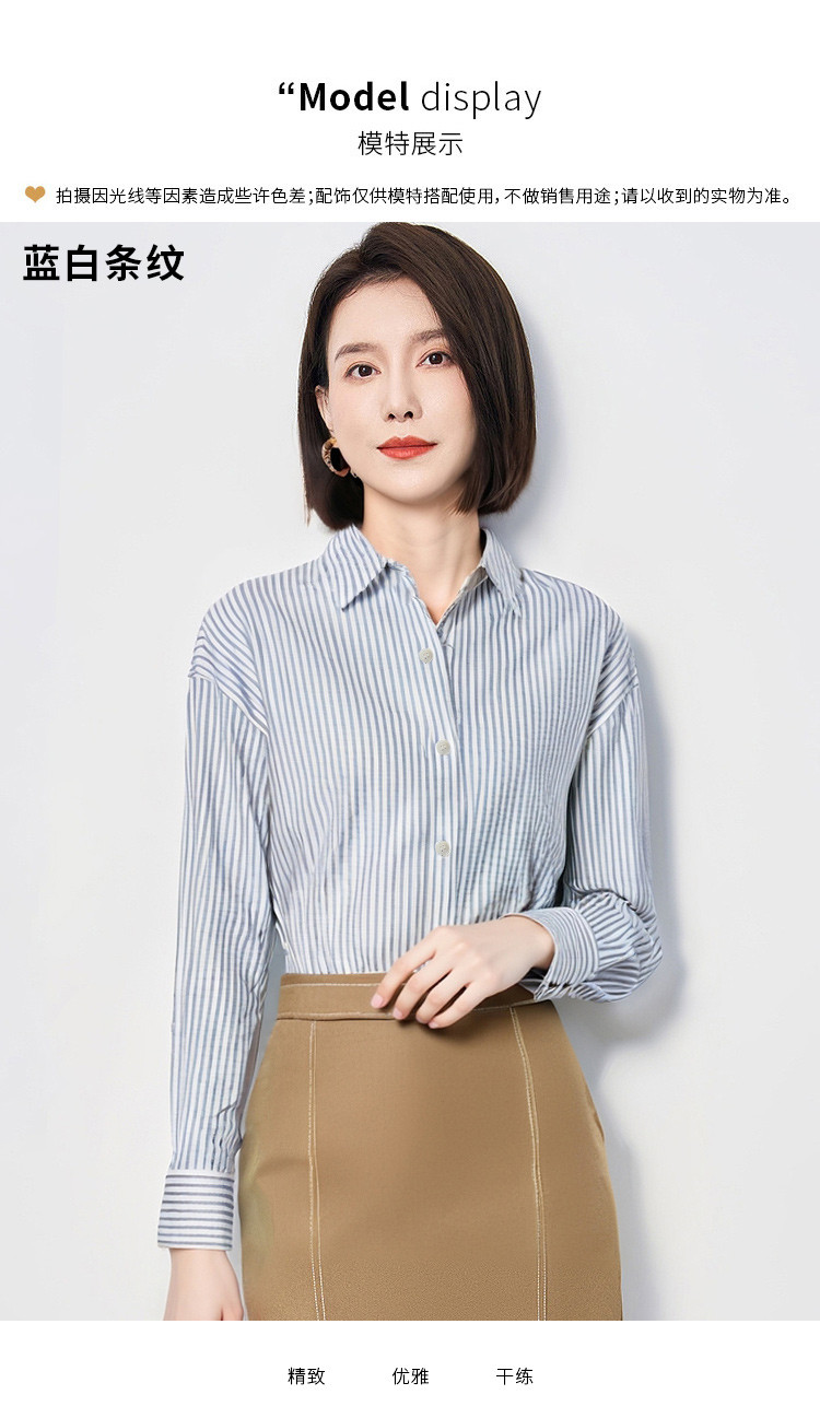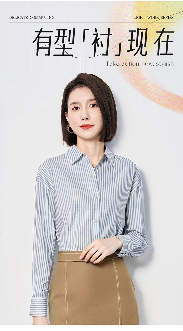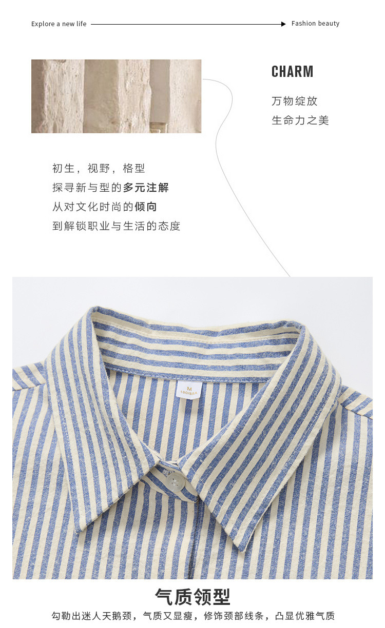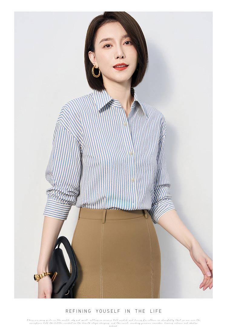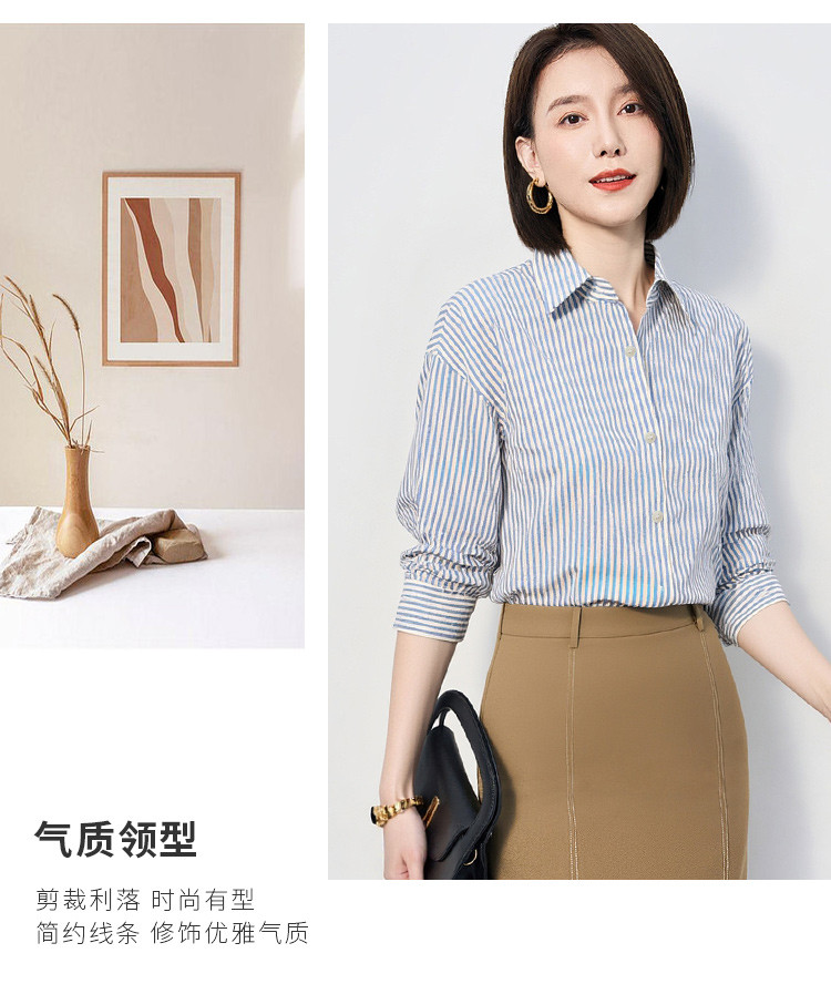 罗蒙秋冬厚款竖条纹长袖衬衫女士休闲百搭落肩宽松版磨毛棉质衬衣女上衣开衫