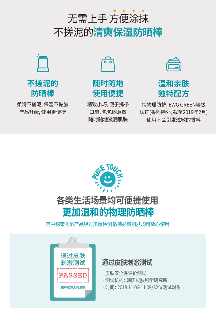 【中欧班列】韩国宫中秘策防晒乳液 /防晒棒/防晒气垫 原装进口宝宝专用脸部物理防晒 20g/80g/15gWHBX