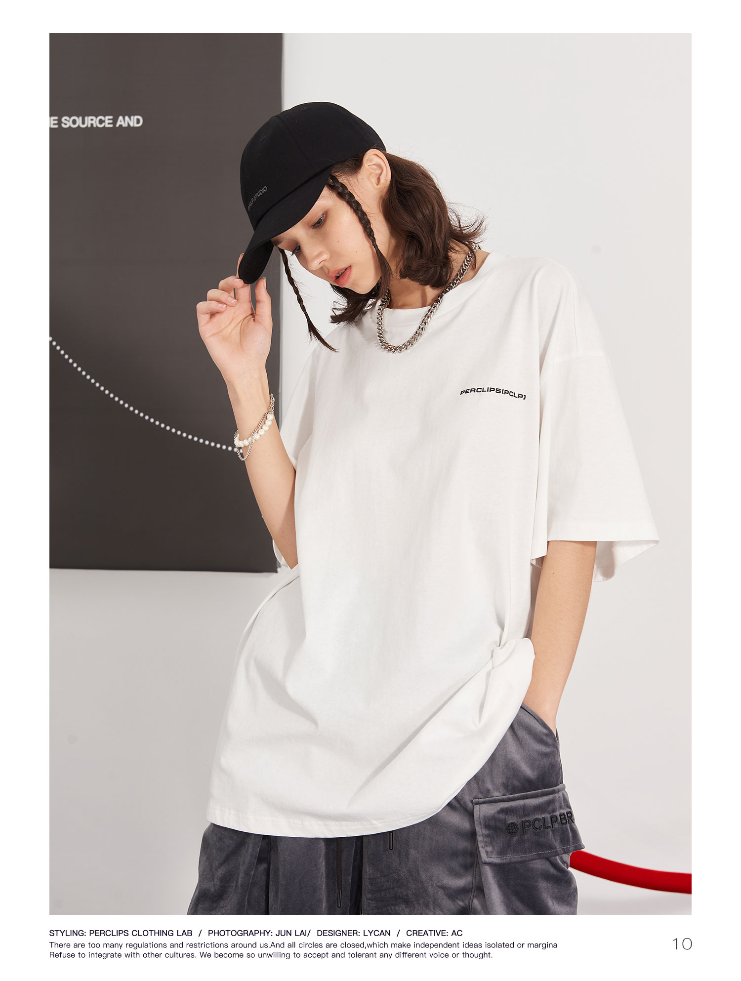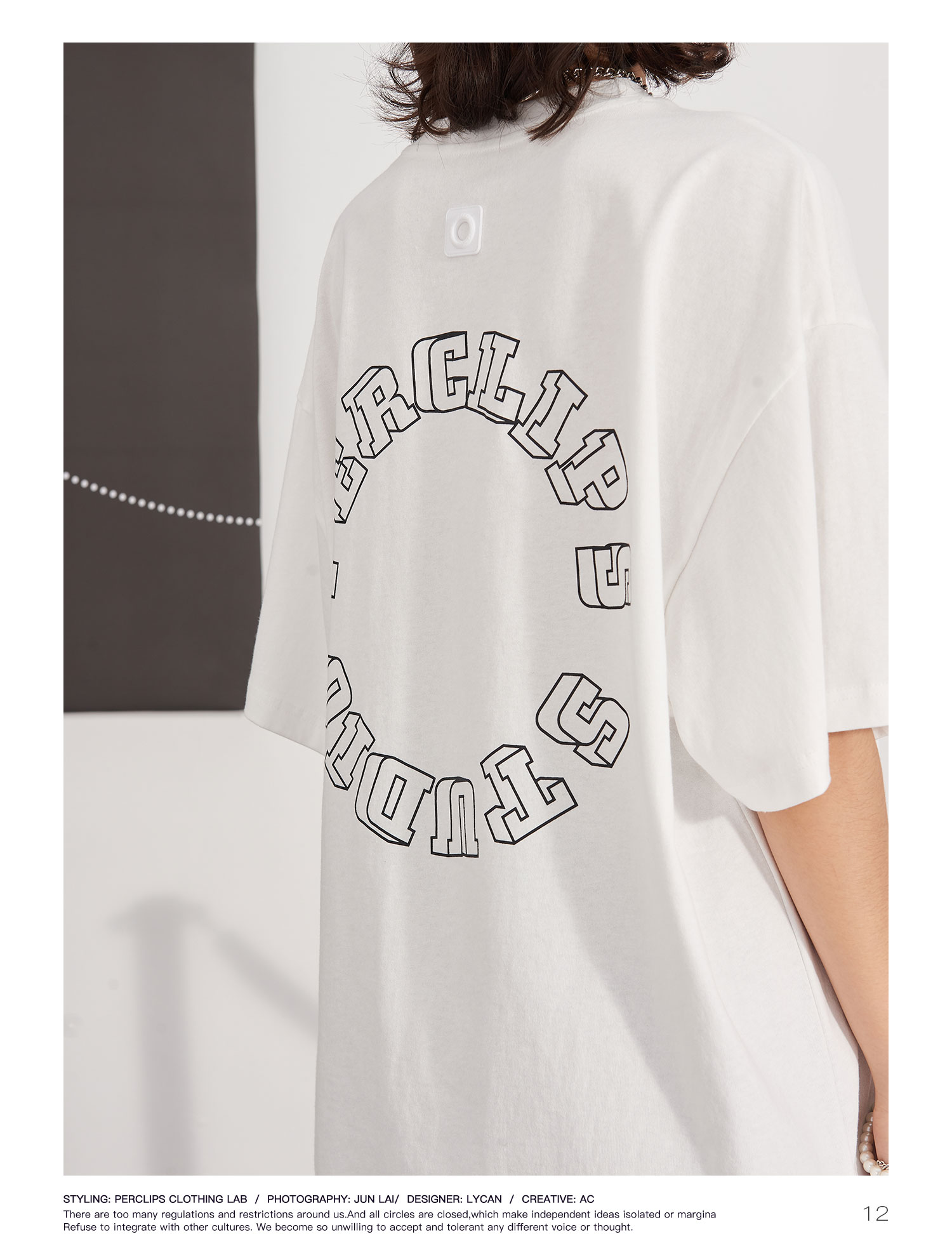 PCLP 立体字母环形圆圈 印花短袖男 国潮牌夏季宽松百搭半袖t恤