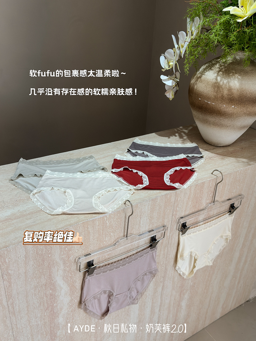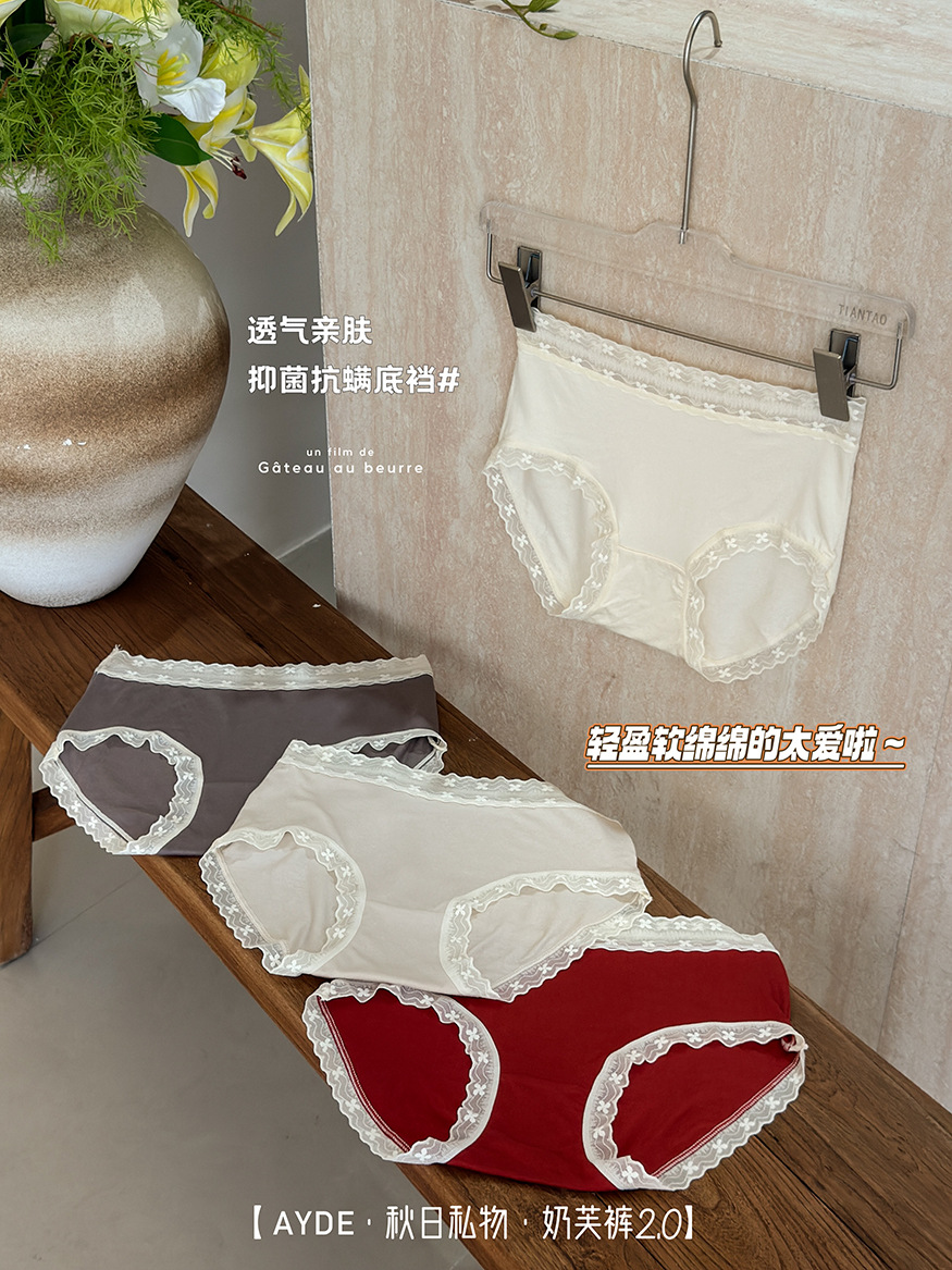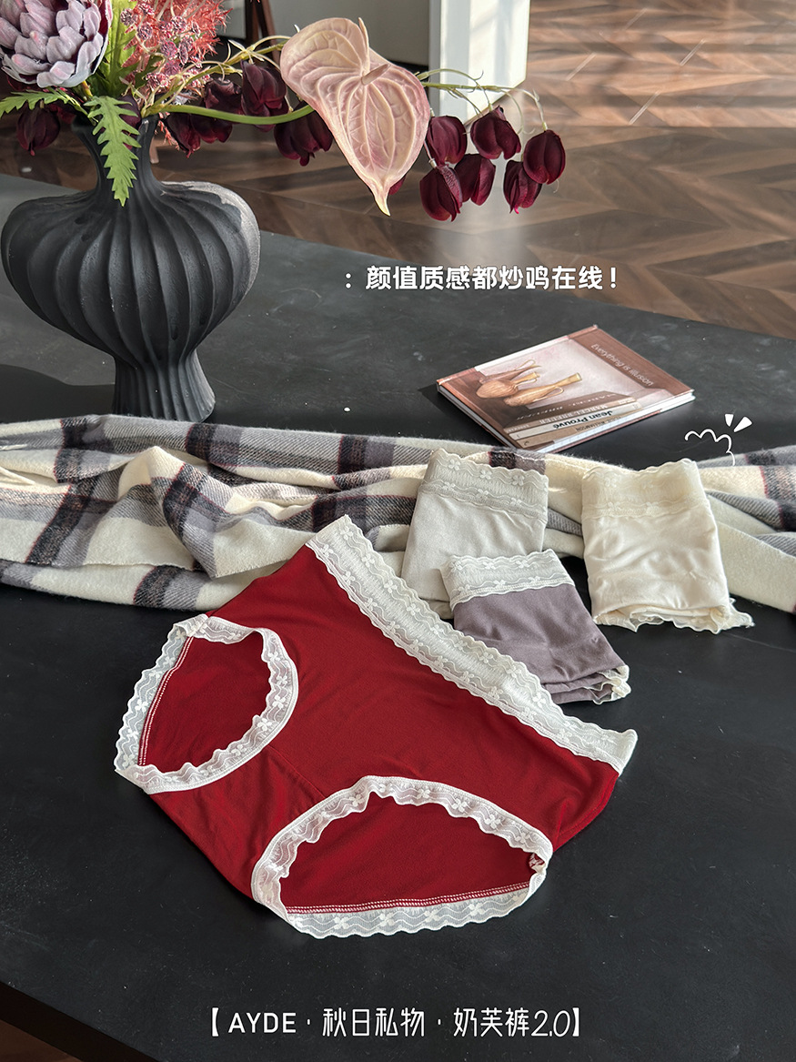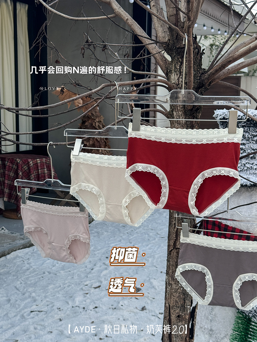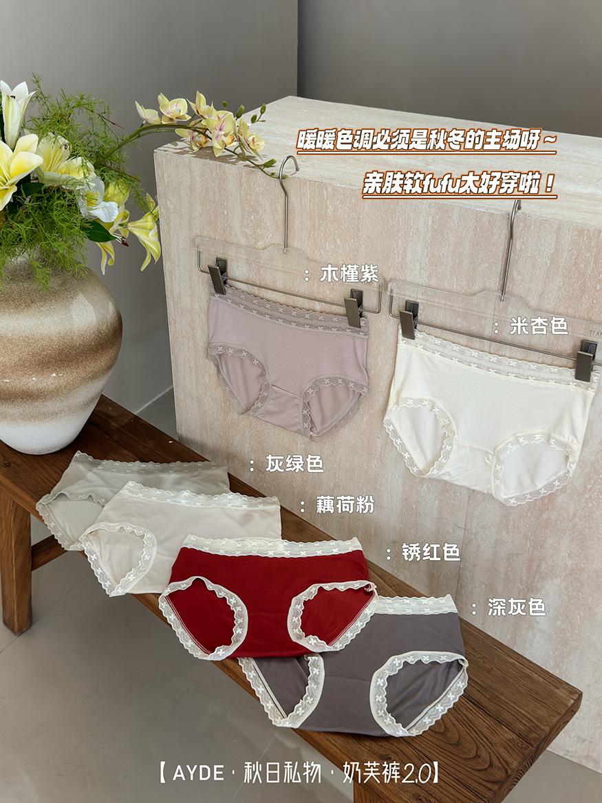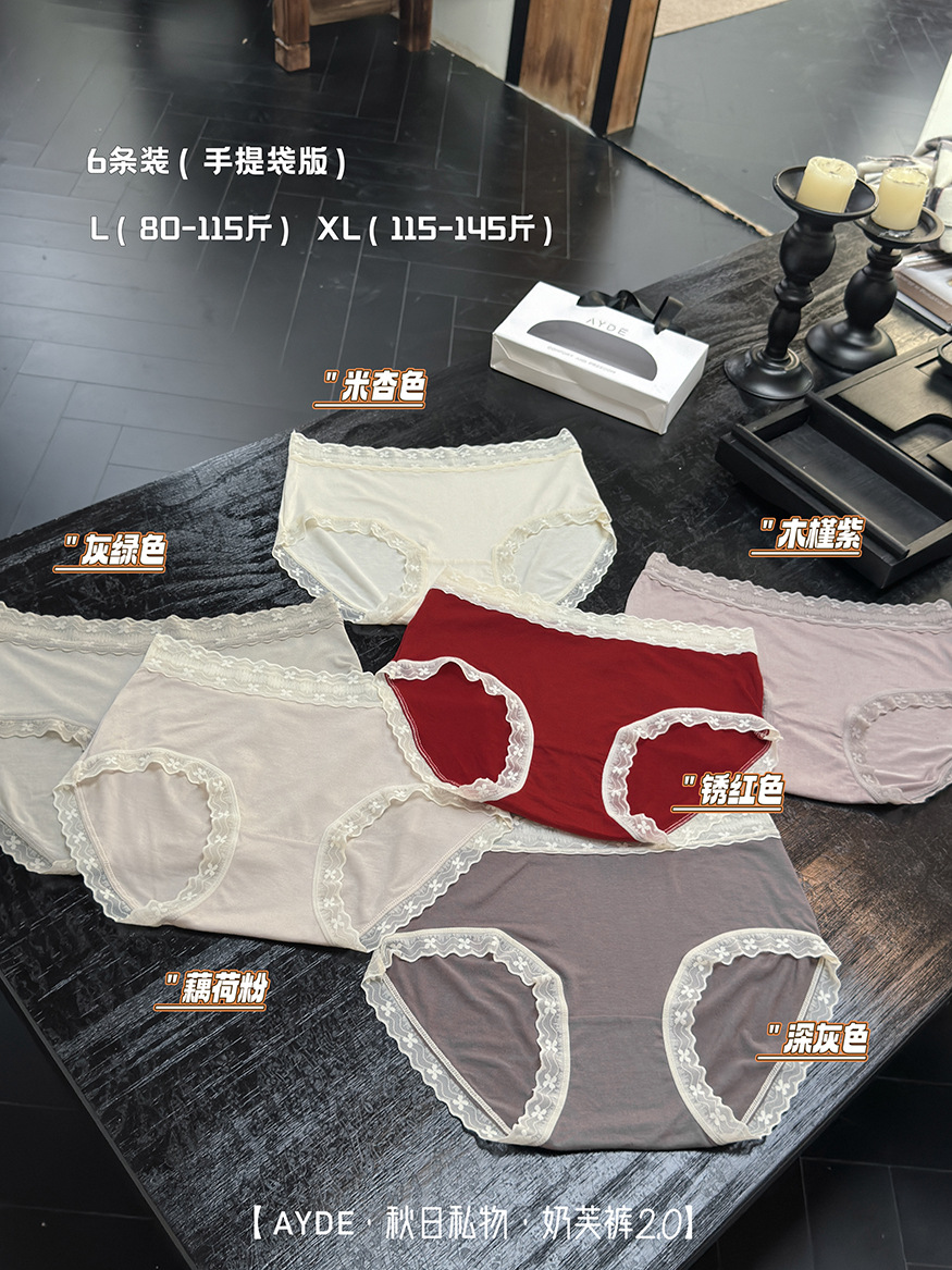6条/盒装【秋冬新品!暖暖奶芙内裤女】高颜值内裤,暖心呵护;蕾丝花边修饰,美好献礼;三角裤设计,轻松自如;透气抑菌,舒适呵护;快来感受冬季温暖与浪漫!