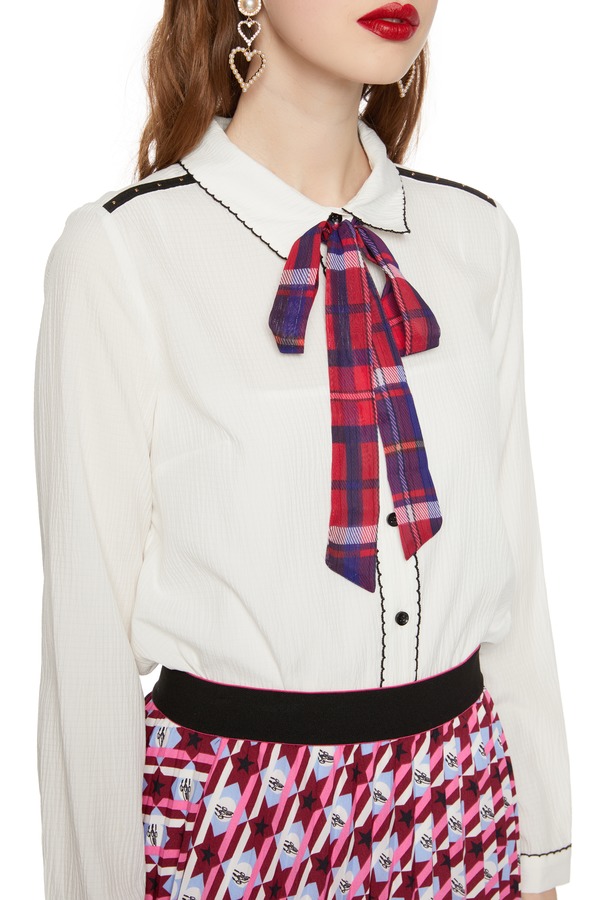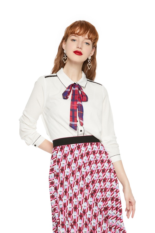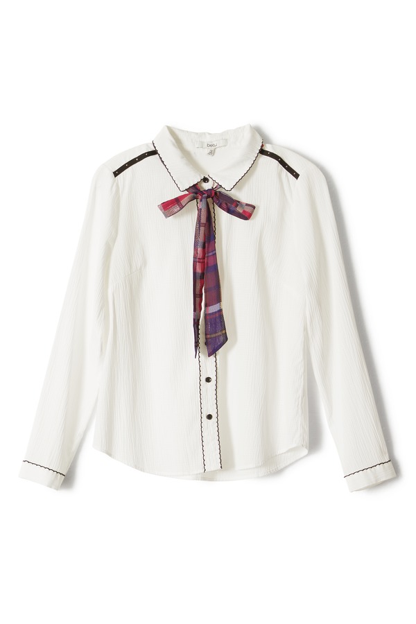 Betu百图 格纹系带白衬衣 5247
