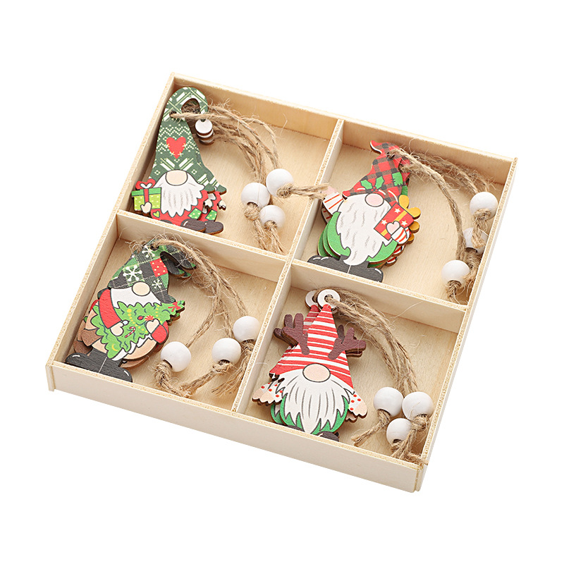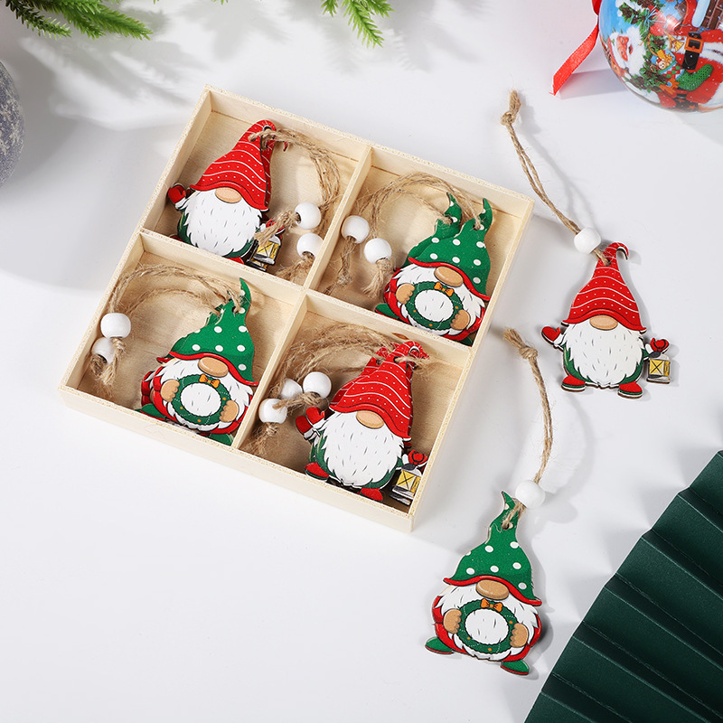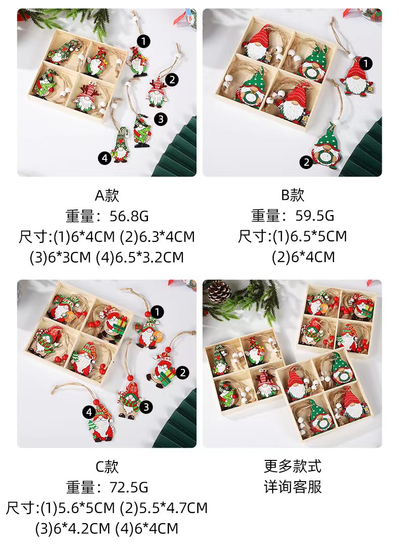 【圣诞系!12个装!新款圣诞节彩绘木质挂件】 圣诞老人礼物圣诞树挂件 12个装盒装装饰品