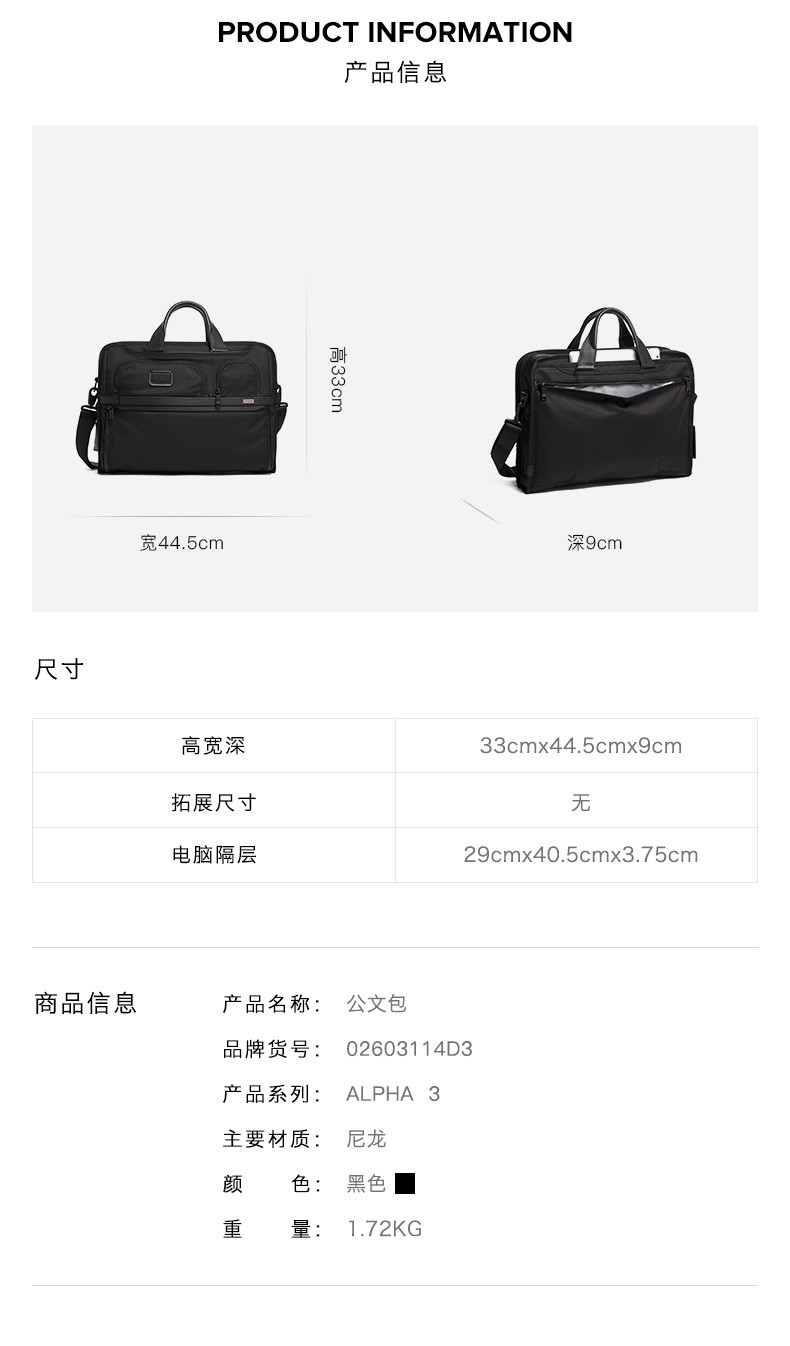 TUMI 顶部拉链公文包 TM02603114D3-F .【刻字后发出的商品,不支持退换货服务】