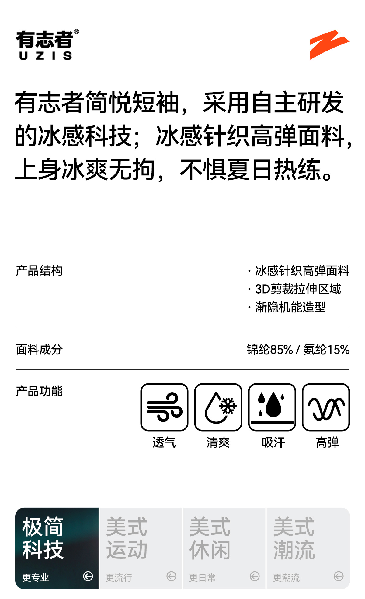 有志者UZIS 极简科技简悦运动短袖男冰感透气篮球健身跑步T恤解语