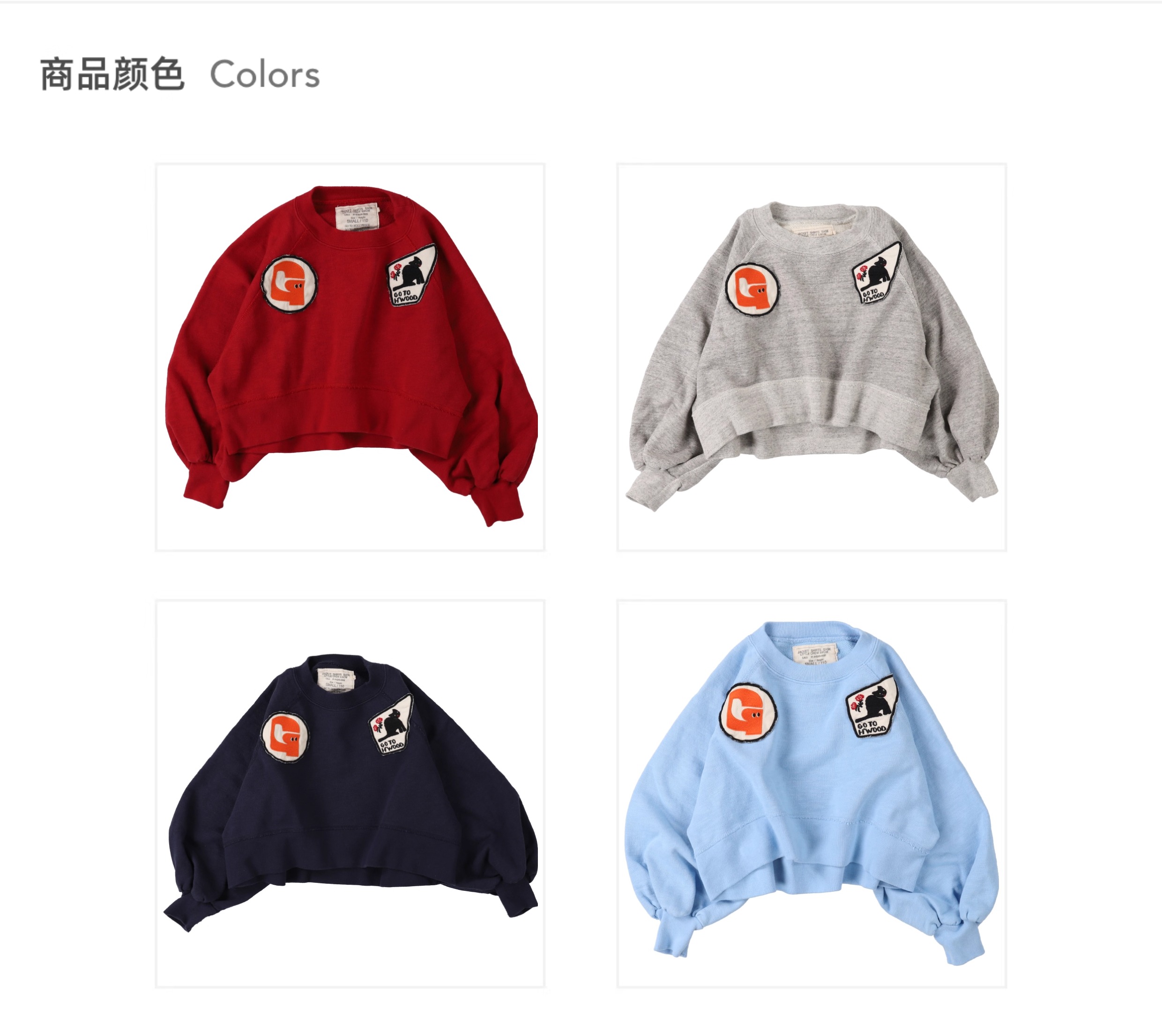 日本G2H童装 GO TO HOLLYWOOD 宽松徽章贴布卫衣