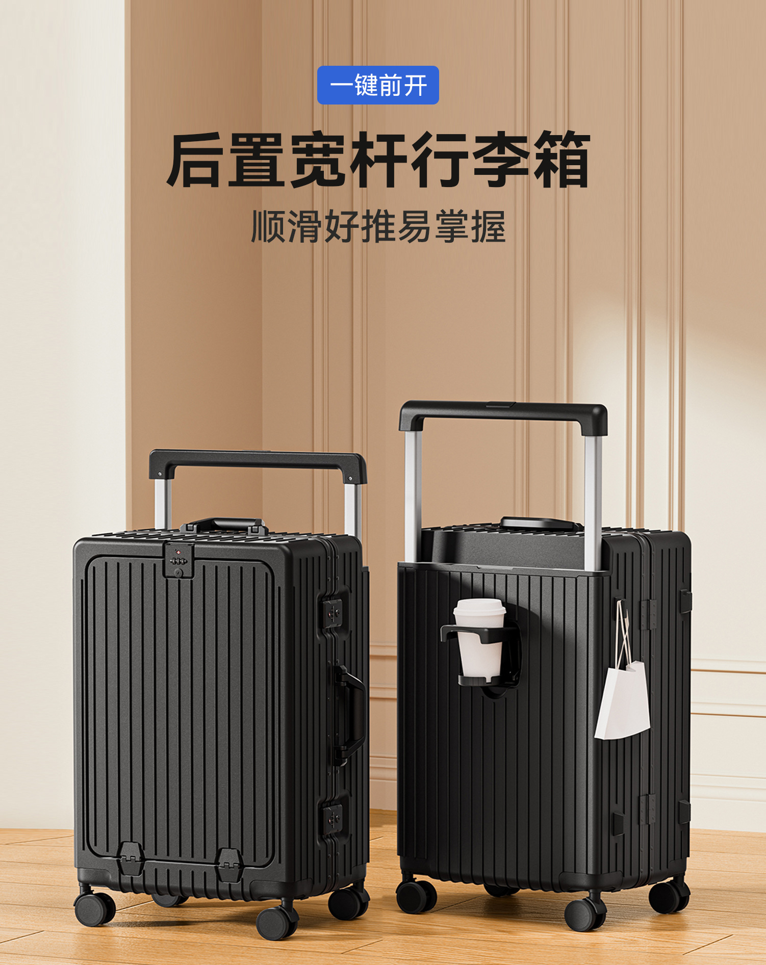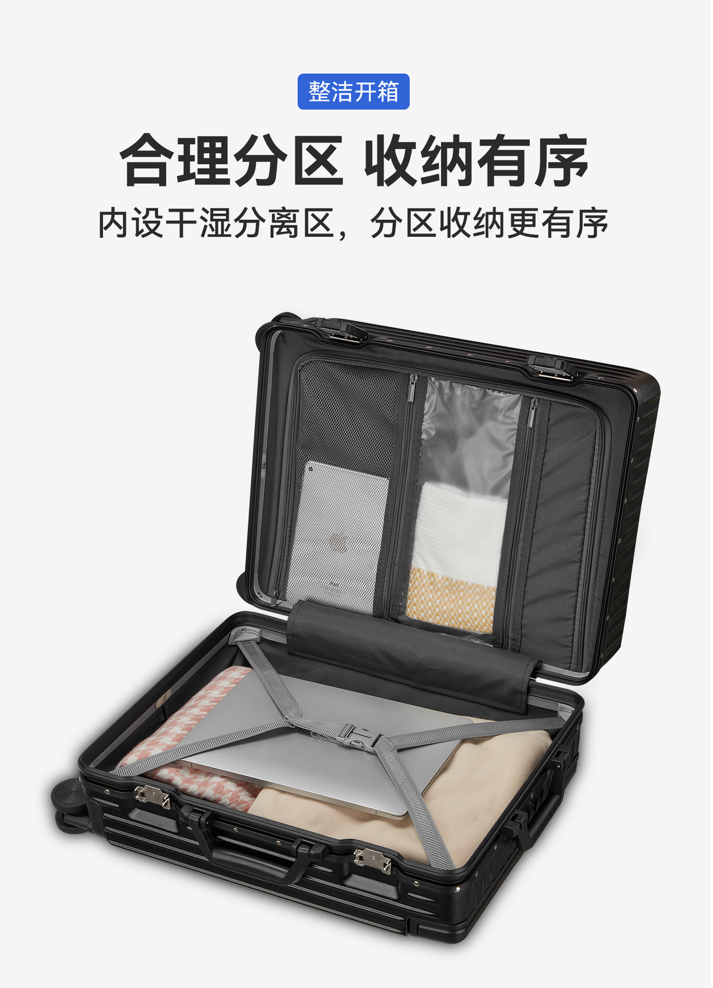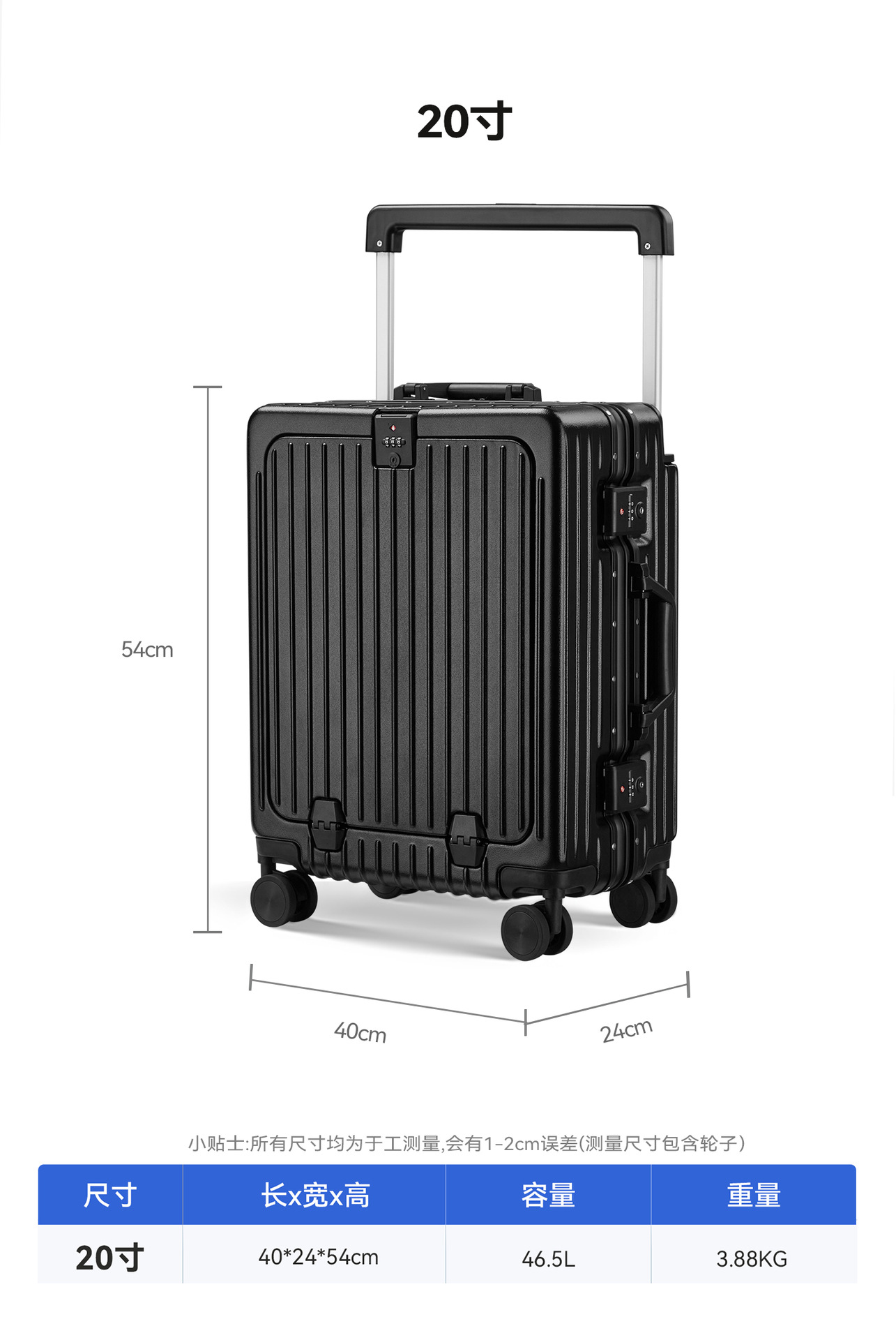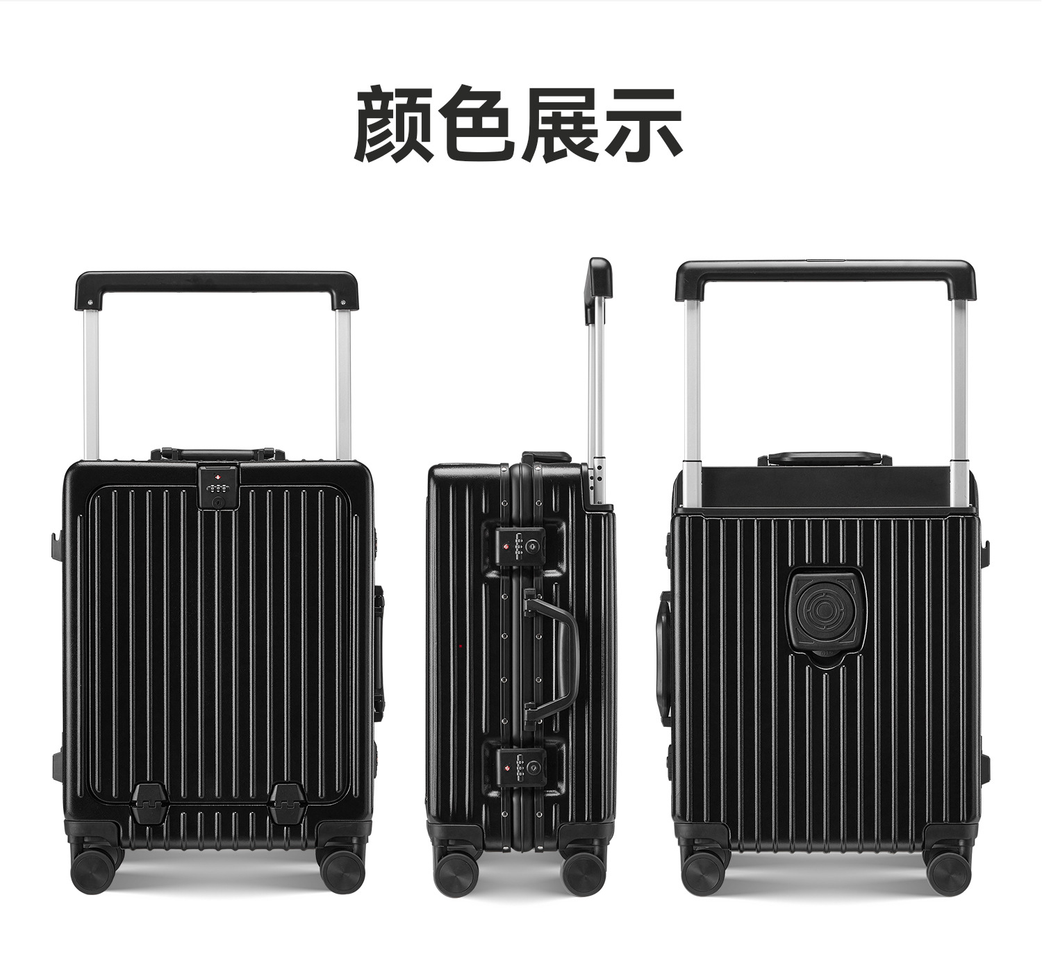 自然醒铝框宽拉杆多功能20寸登机箱一键前开万向轮行李箱YS6006