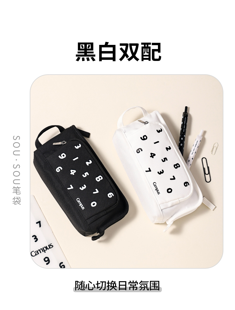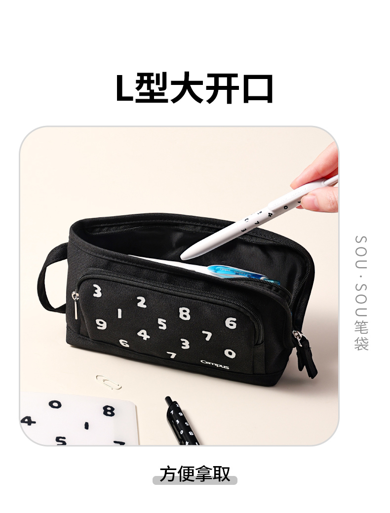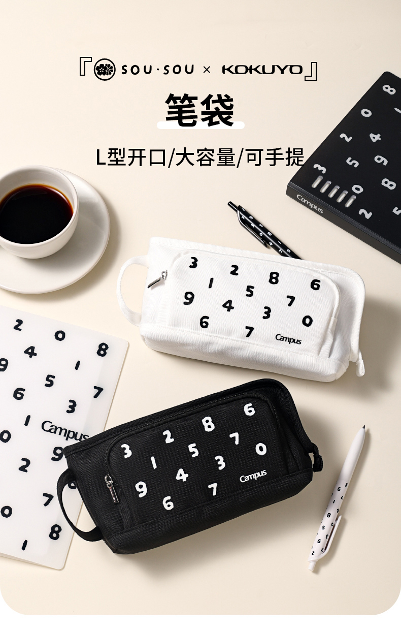 WSG-PC1X52-1国誉SOU.SOU笔袋黑百色联名款大容量学生用日双层文具袋收纳包