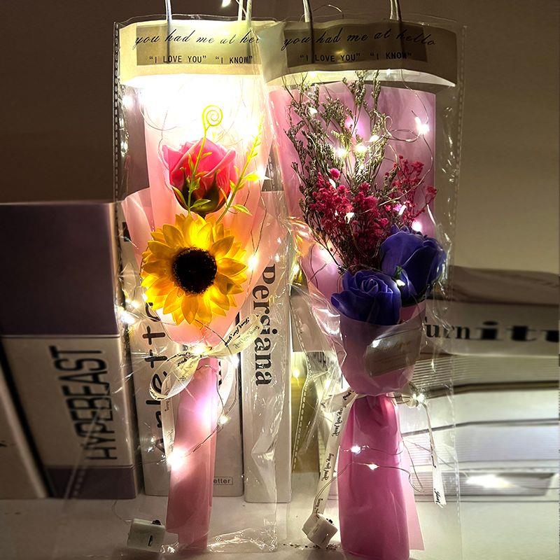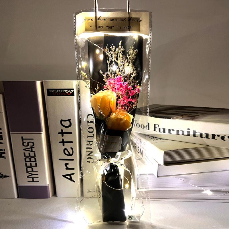 【520情人节!永生创意花束!】母亲节礼物送妈妈玫瑰永生花送同学生日礼物满天星干花束手提袋设计-24XPXH080