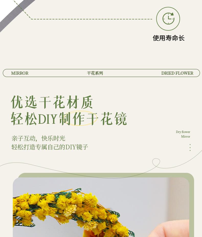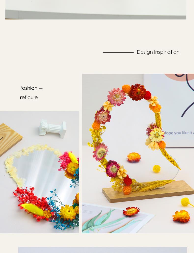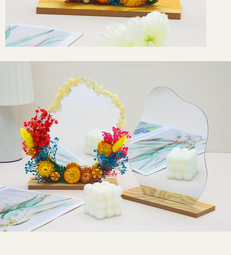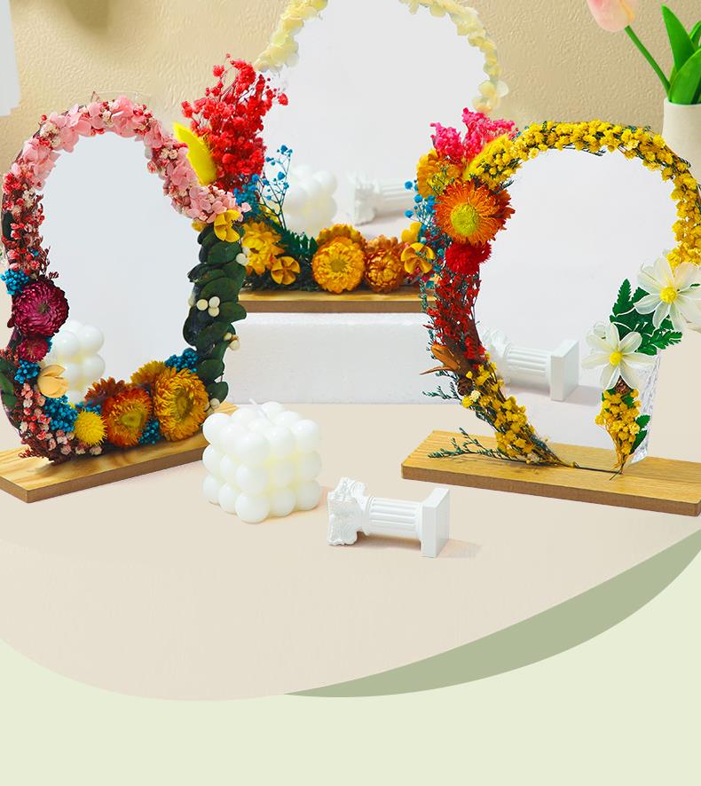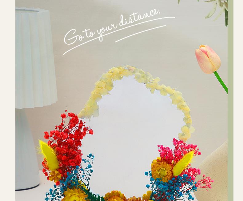 【教师节手工DIY干花镜子】儿童材料包 永生花化妆镜改造 春天活动材料