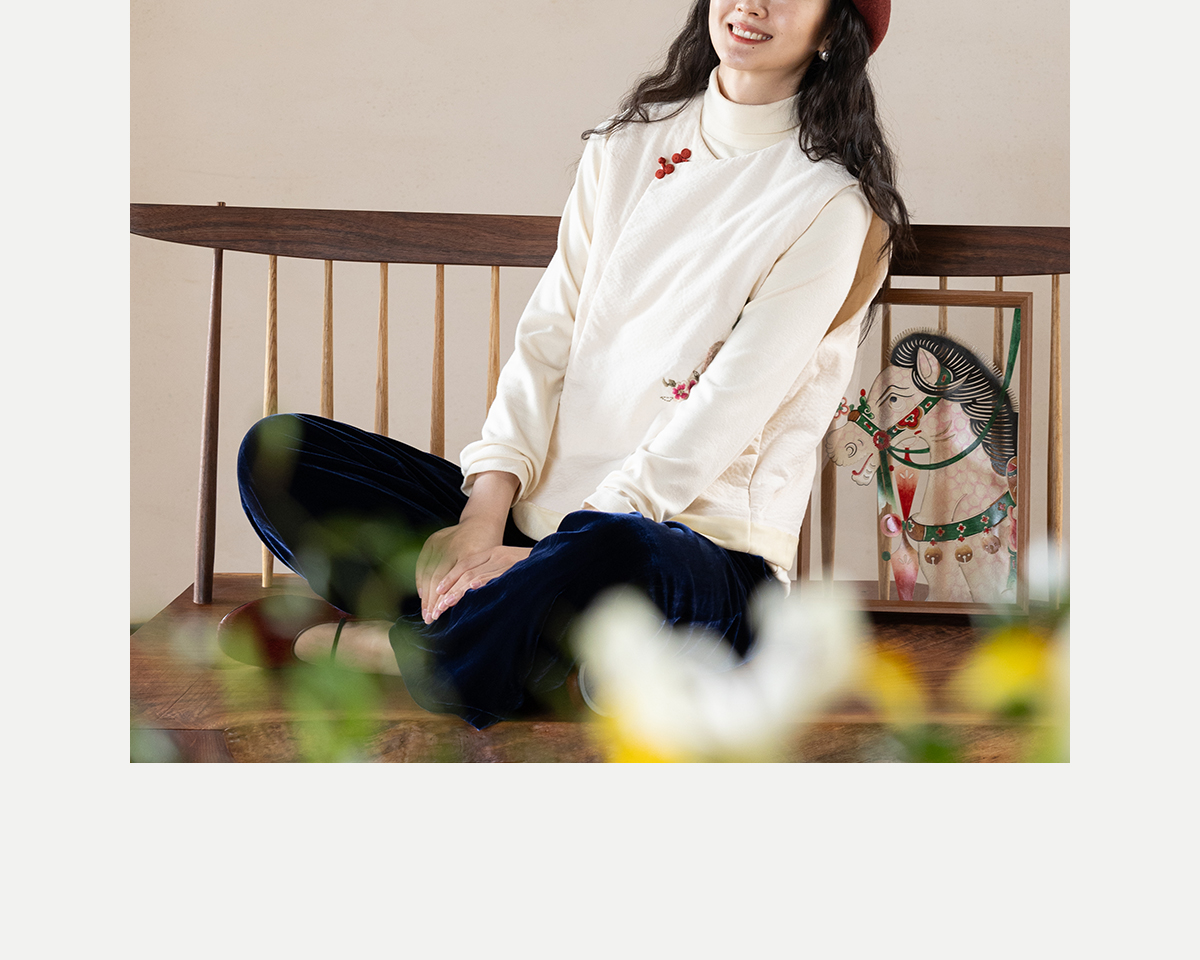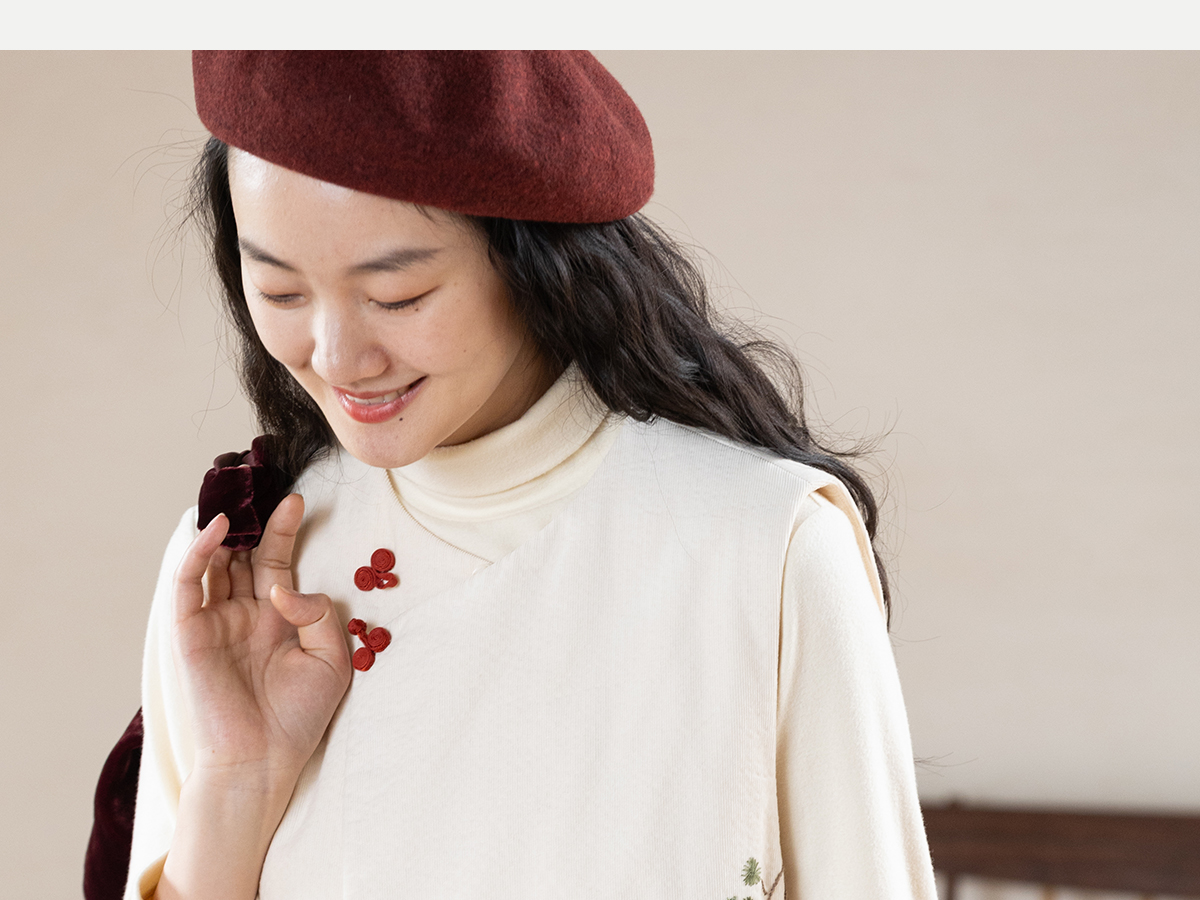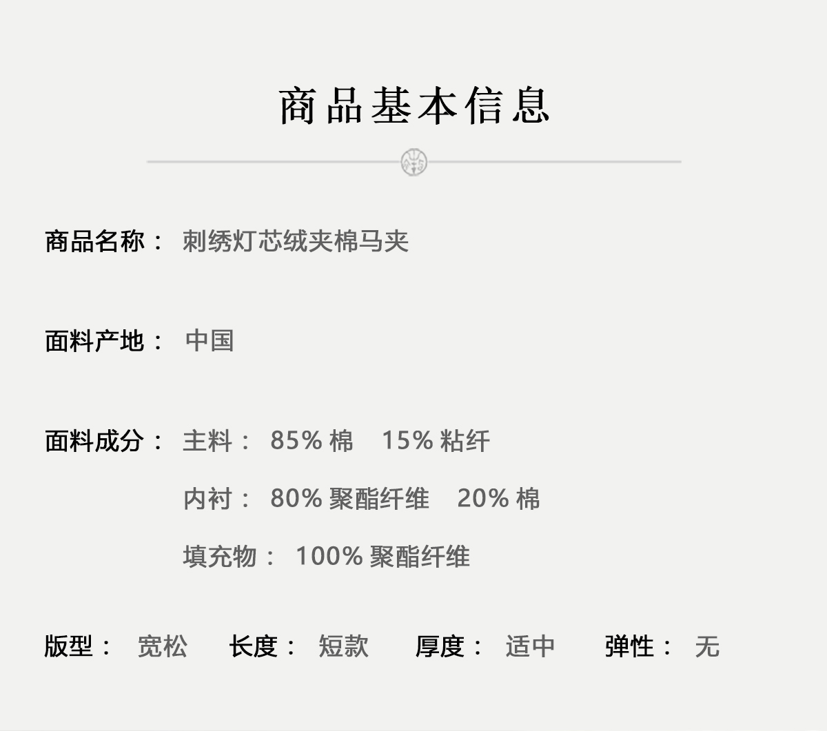 牧衣游原创 手工刺绣灯芯绒夹棉马夹新款百搭复古新中式开衫 木言