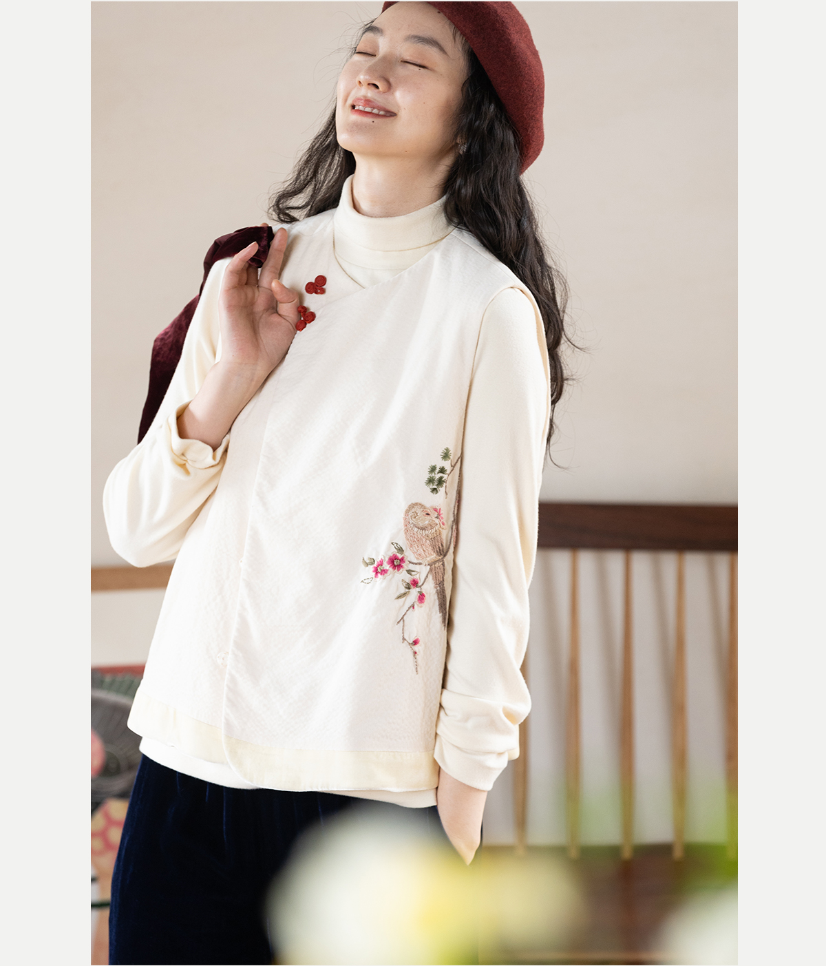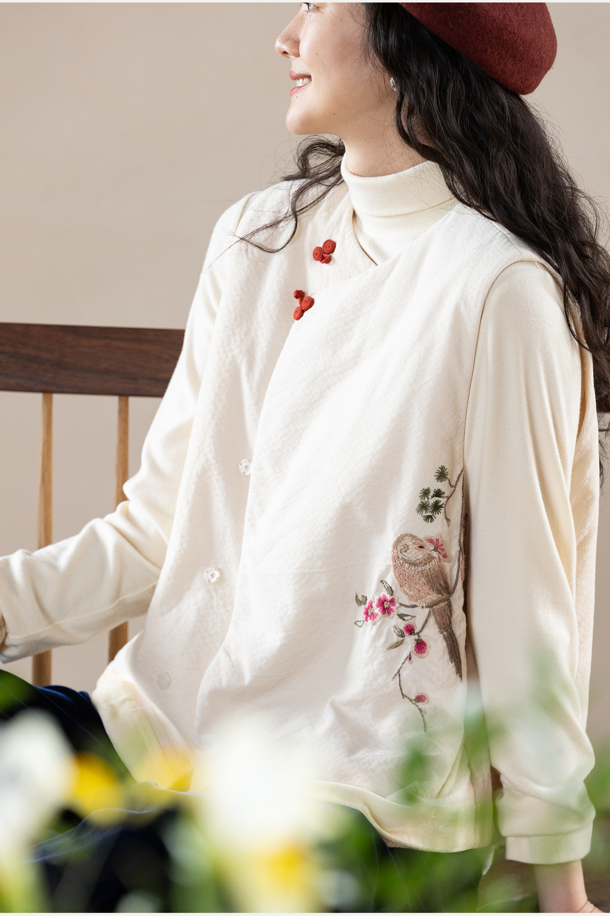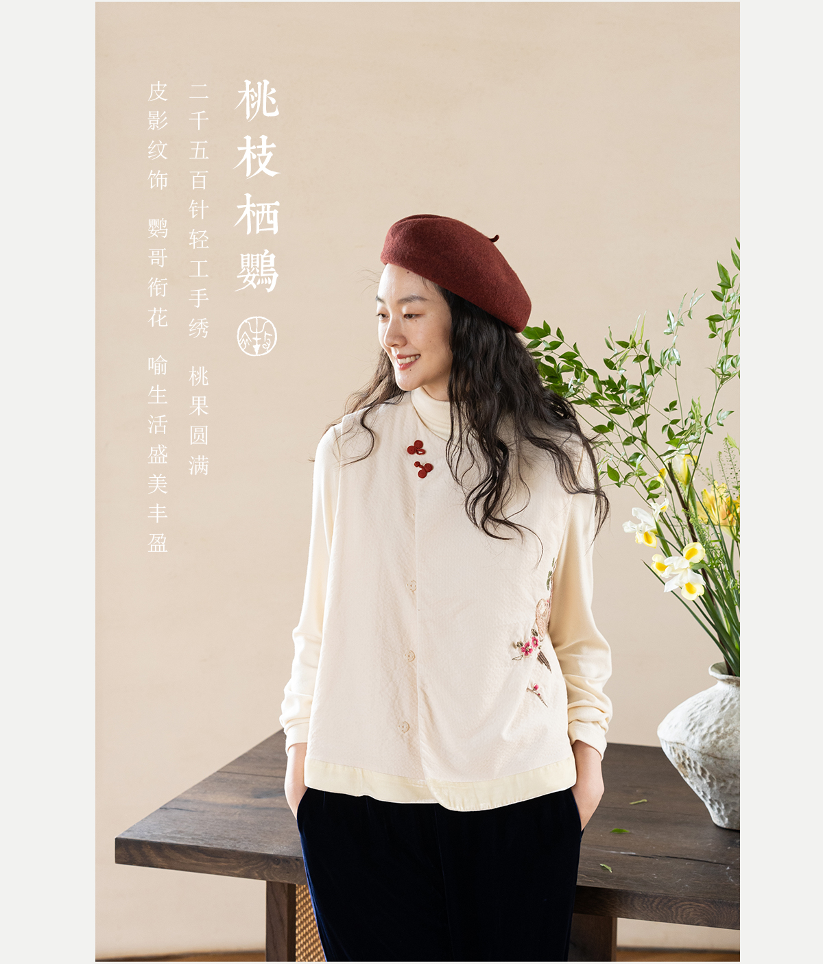 牧衣游原创 手工刺绣灯芯绒夹棉马夹新款百搭复古新中式开衫 木言