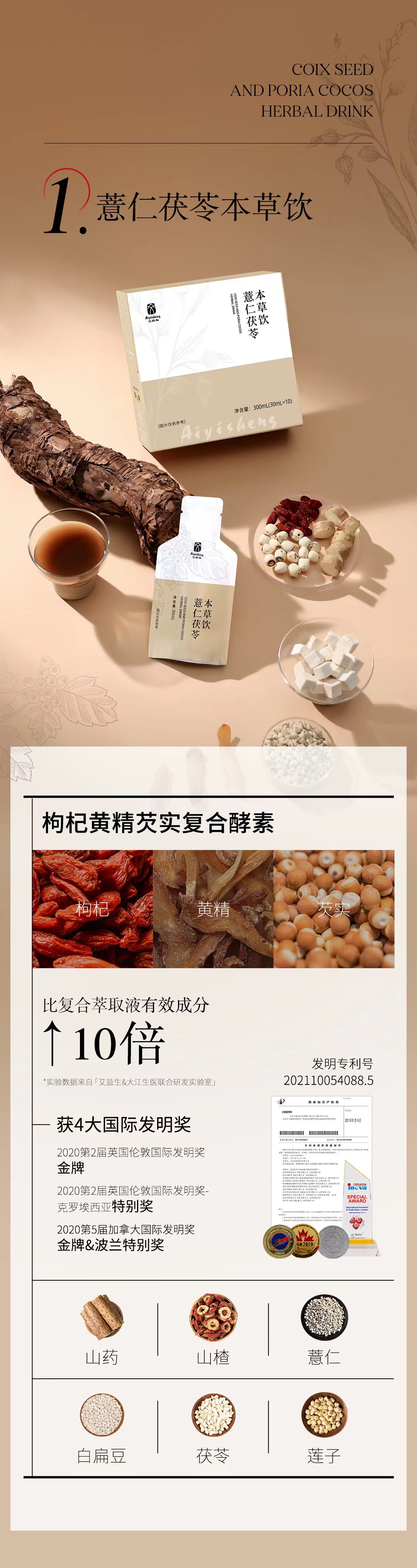 护脾胃 薏仁茯苓本草饮 10支/盒 药食同源 无添加