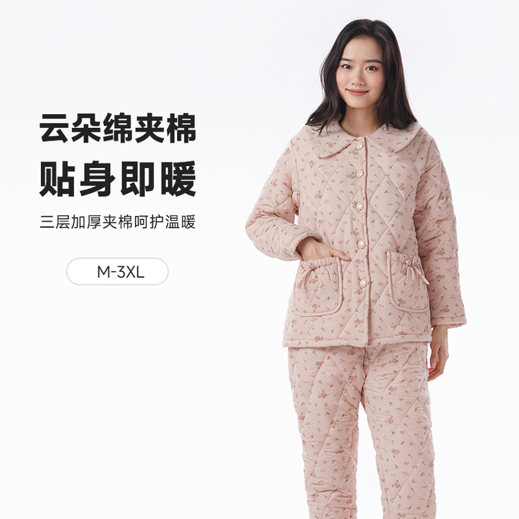 都市丽人云朵绵夹棉睡衣女士家居服长袖长裤加厚夹棉套装LHH9D9
