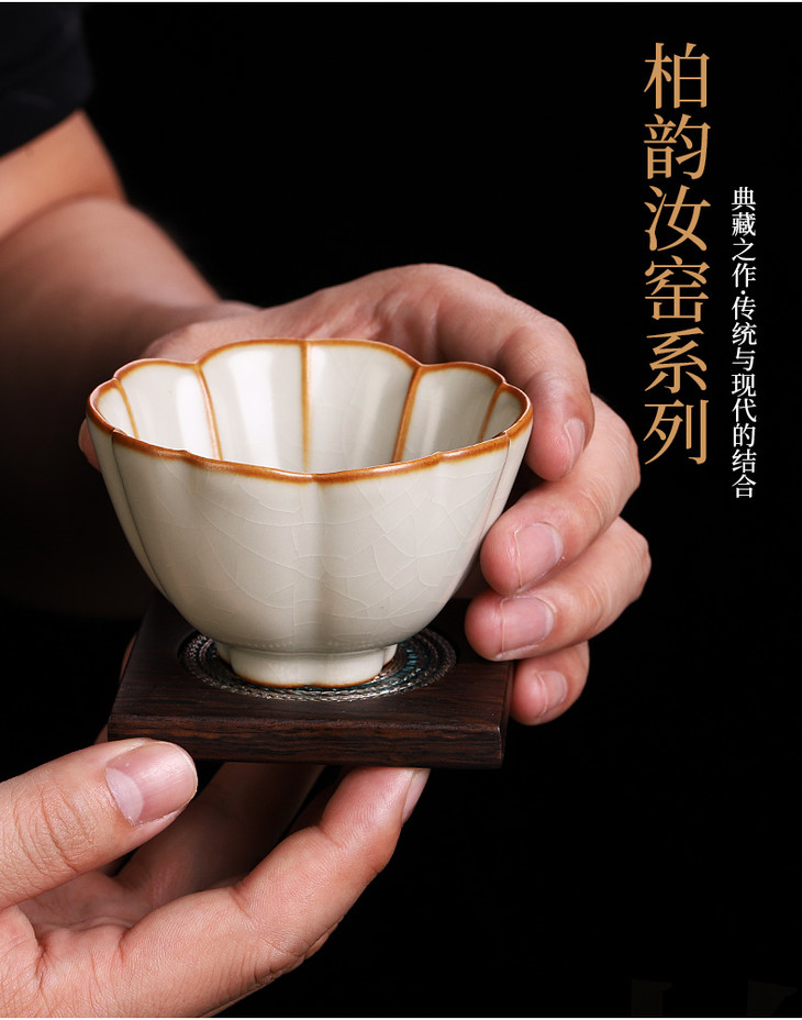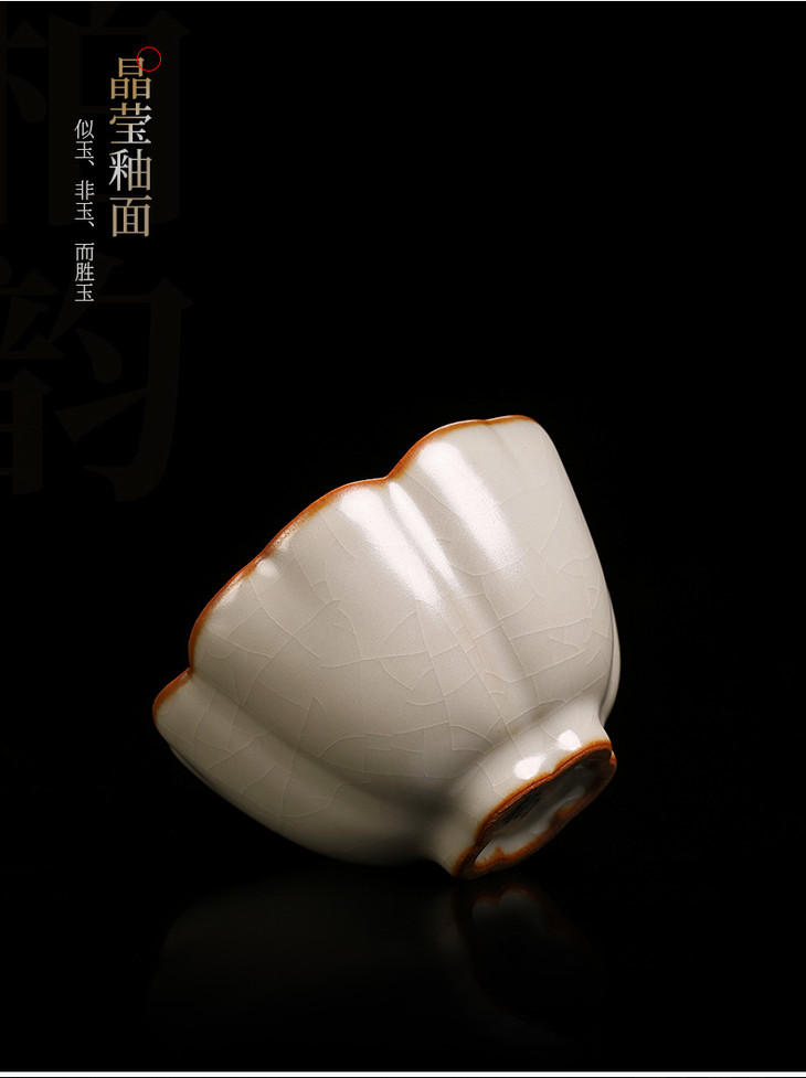 汝窑开片品茗杯小茶杯陶瓷功夫茶主人杯女单个单杯大号纯手工茶盏