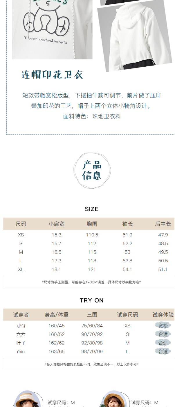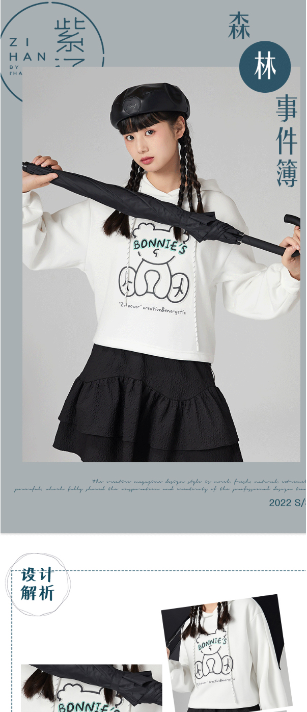ZIHAN紫涵宽松印花卫衣女休闲运动风2022春季新款短款Z2Z02HS614