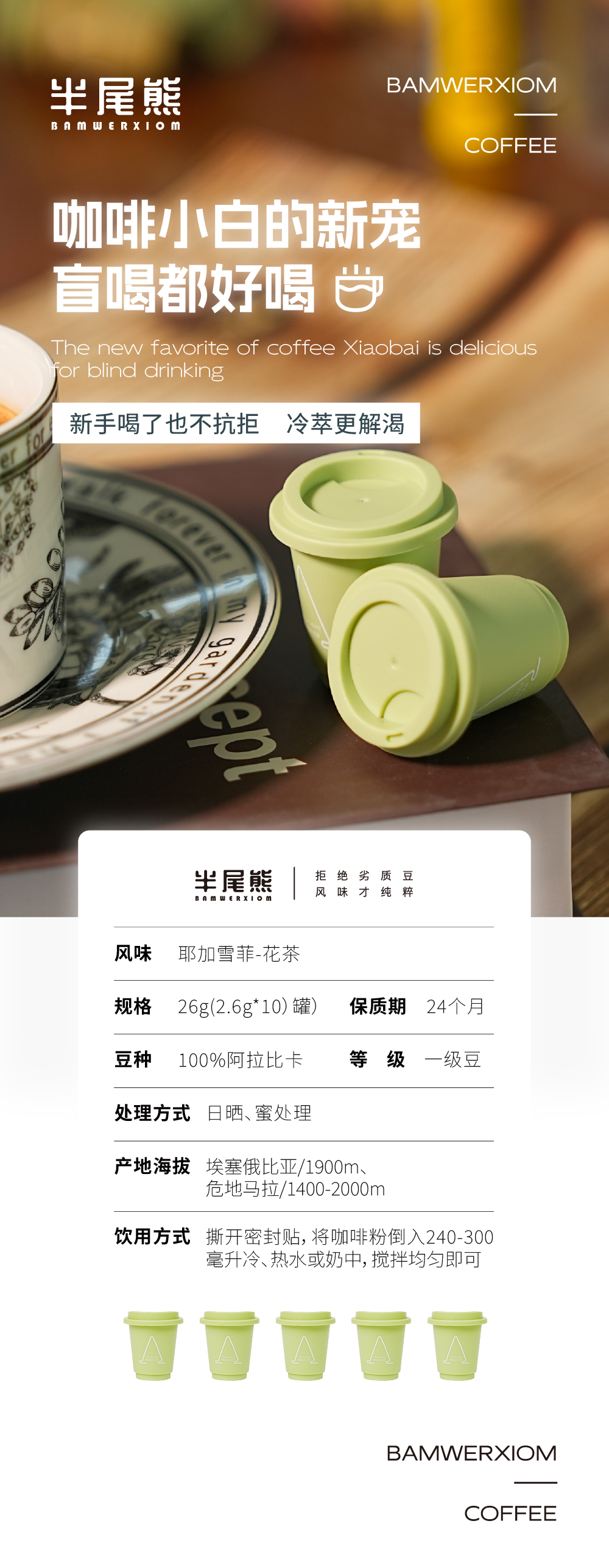 半尾熊丨冷萃冻干咖啡 A耶加雪菲-花茶 26g(2.6g*10罐 )