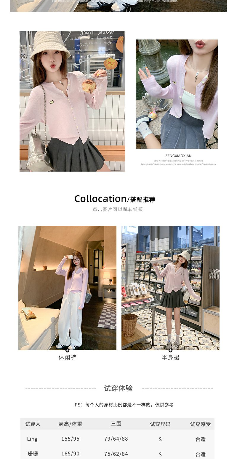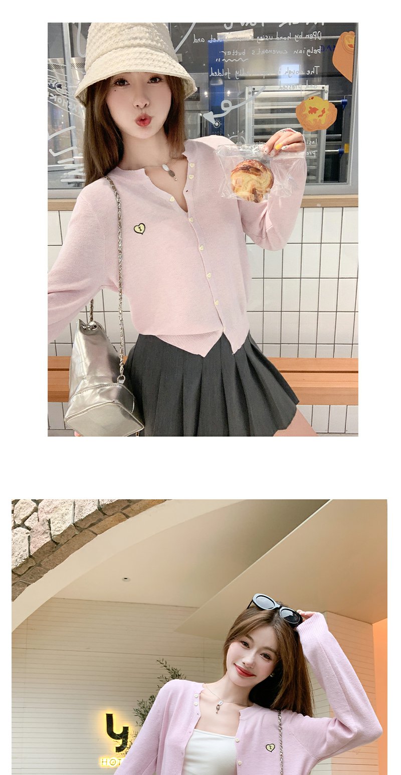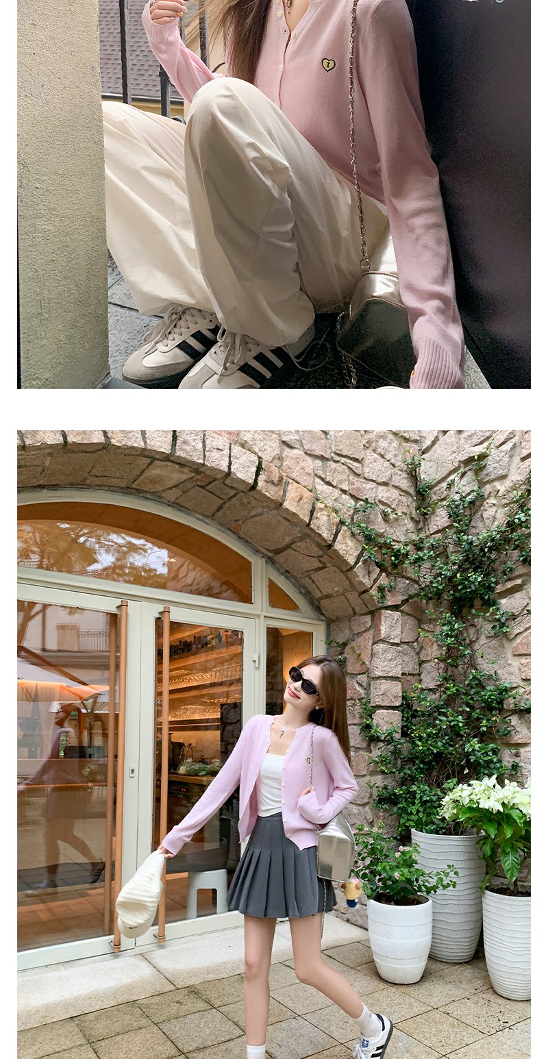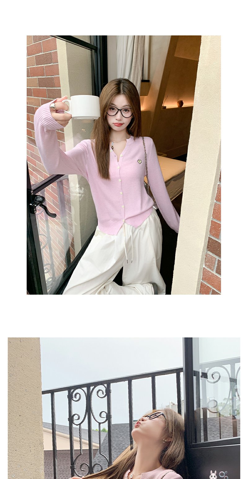 <曾小咸推荐>爱心刺绣V领针织开衫上衣