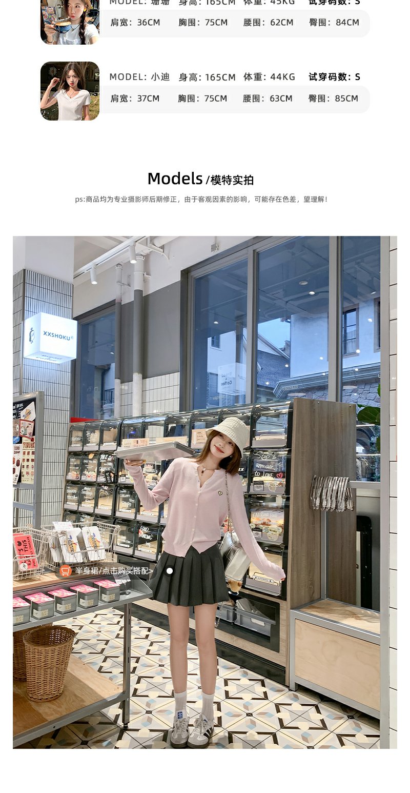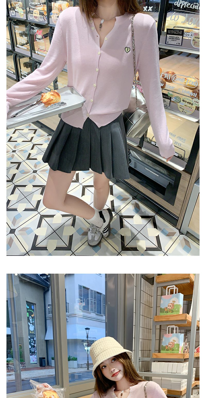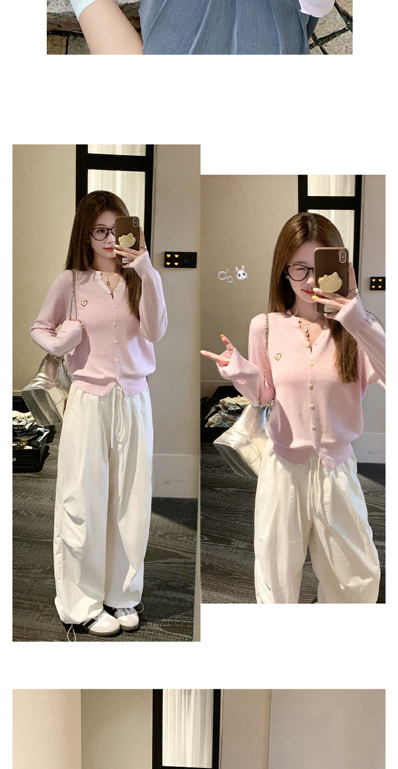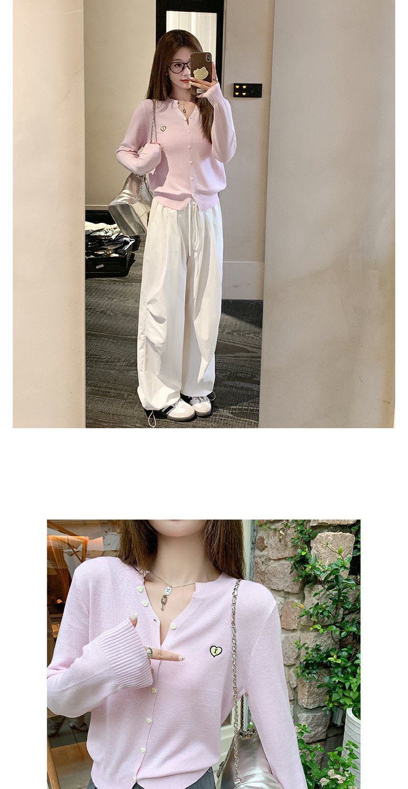 <曾小咸推荐>爱心刺绣V领针织开衫上衣