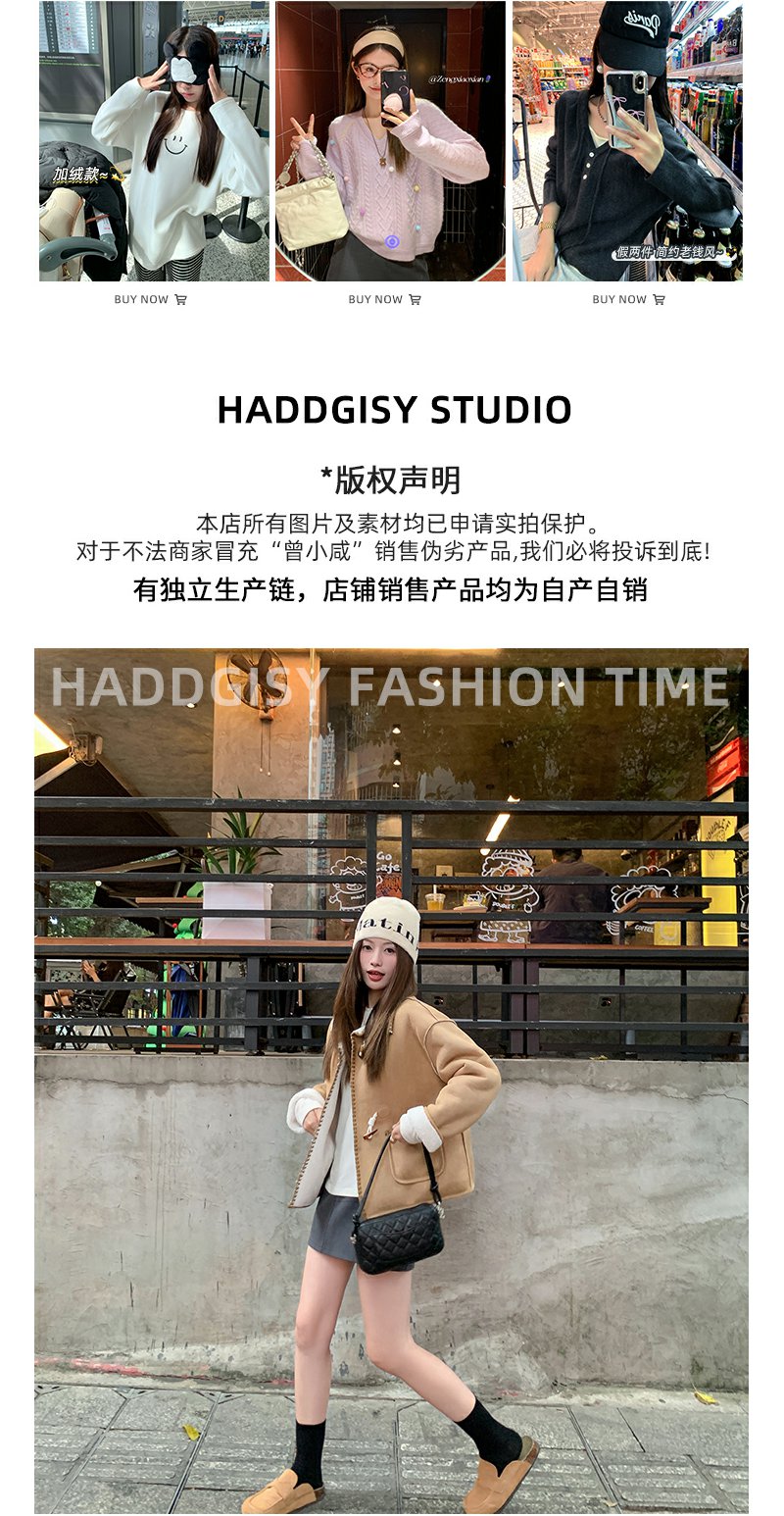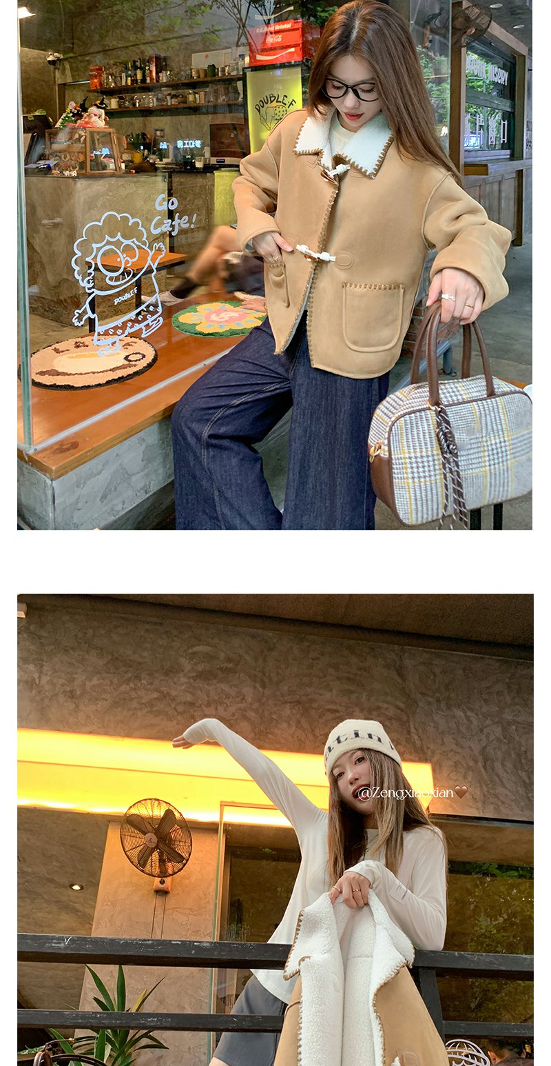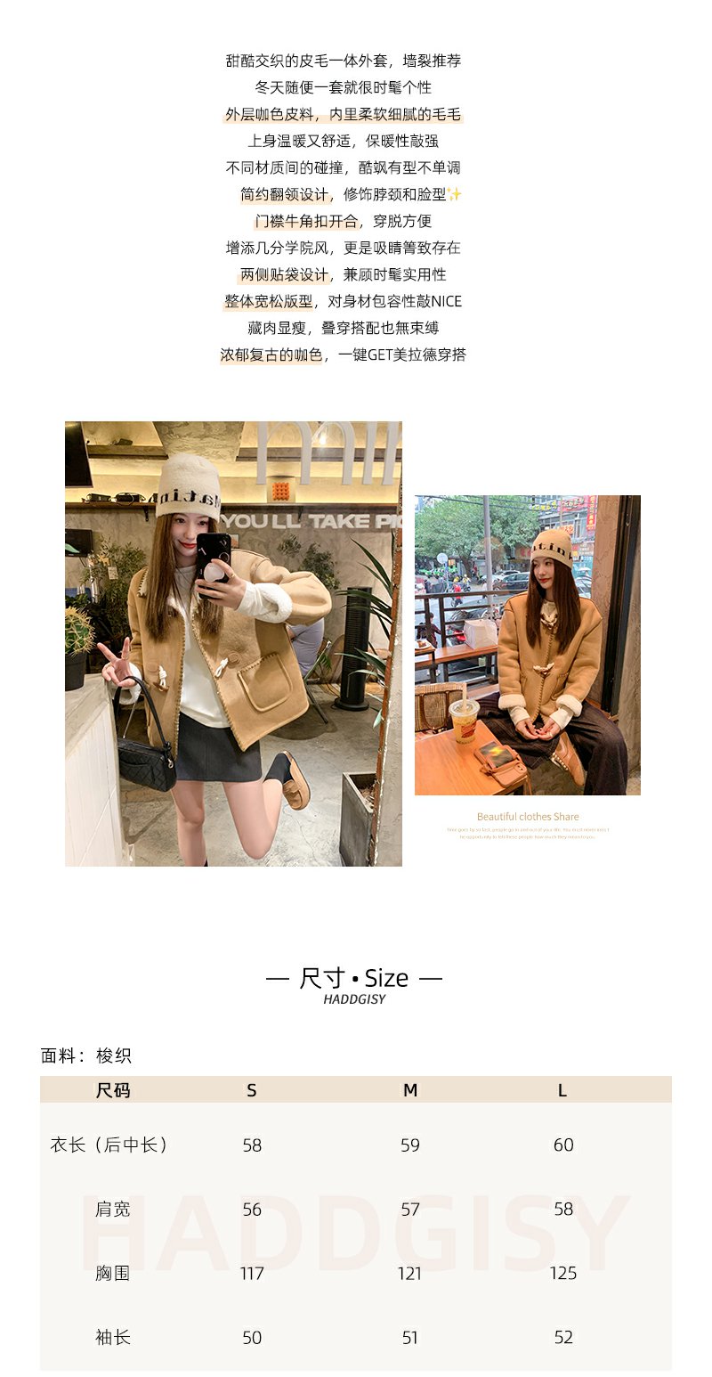 <曾小咸推荐>现货秒杀 !微信超特价!翻领撞色边皮毛一体牛角扣外套 日常269.99 立减140 秒杀129.99!!