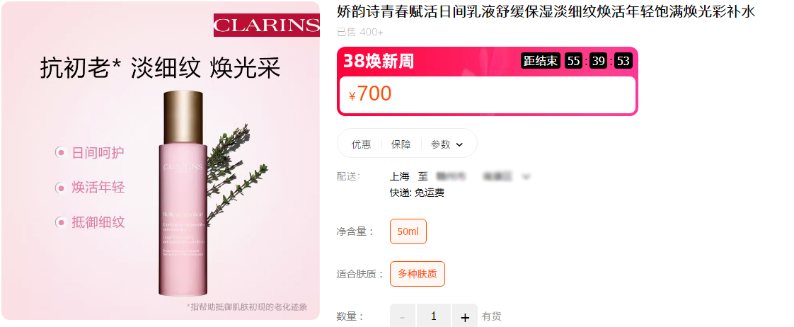 【3.7王炸割肉价】娇韵诗青春赋活日间乳液50ml(限24年4月)