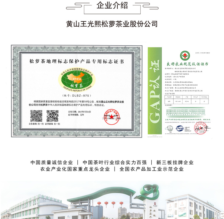 - 专注做茶近30年,连续十多年蝉联中国茶叶行业百强企业称号,是农业产业化国家重点龙头企业,通过ISO9001、ISO14001、ISO45001等体系认证。