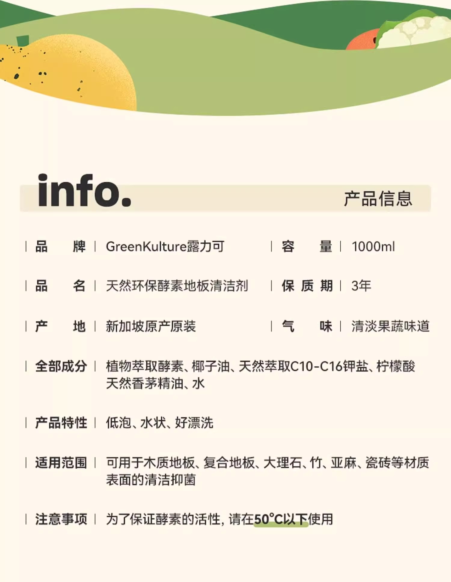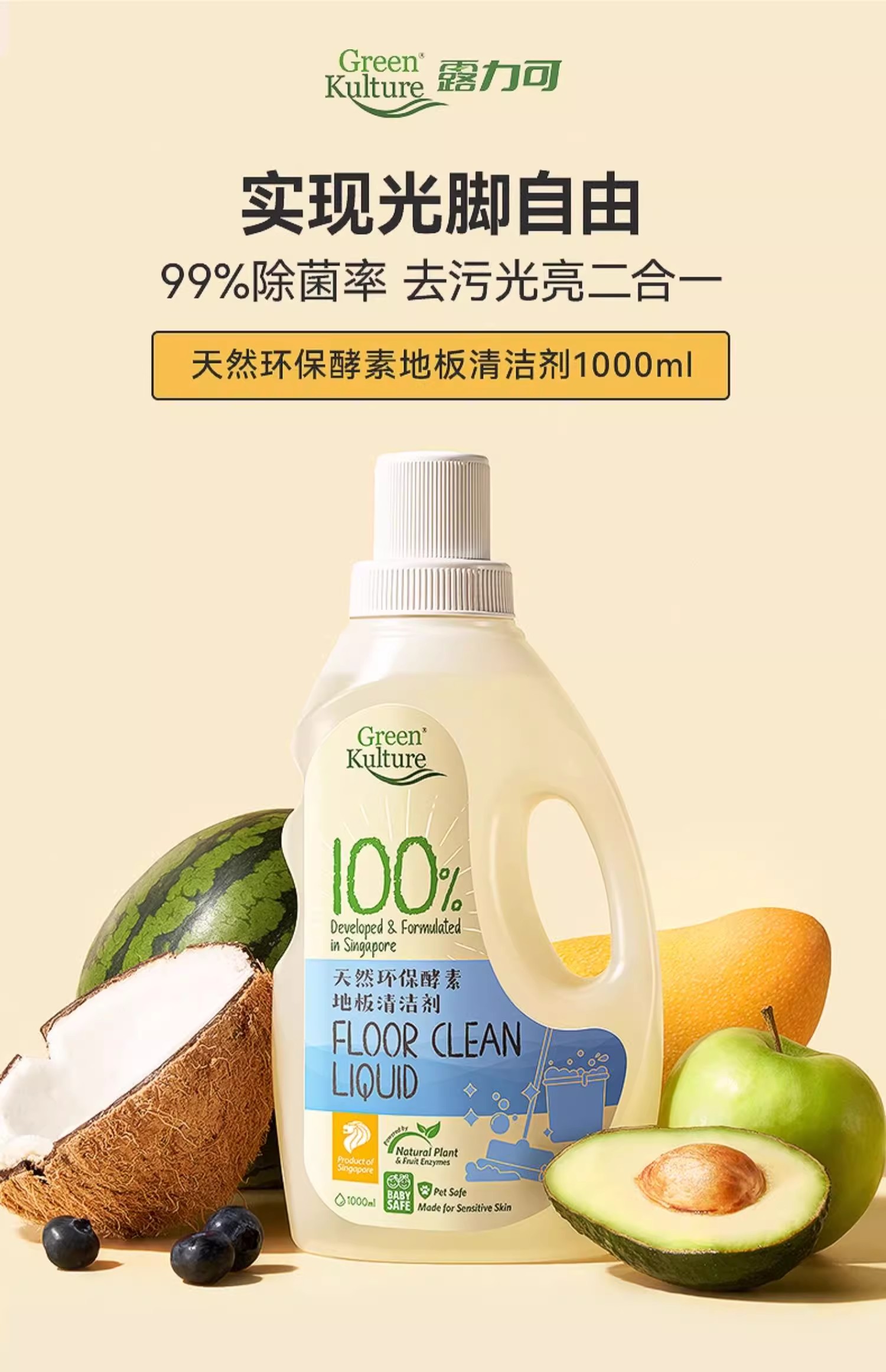 Green Kulture露力可-天然环保酵素地板清洁剂1000ml