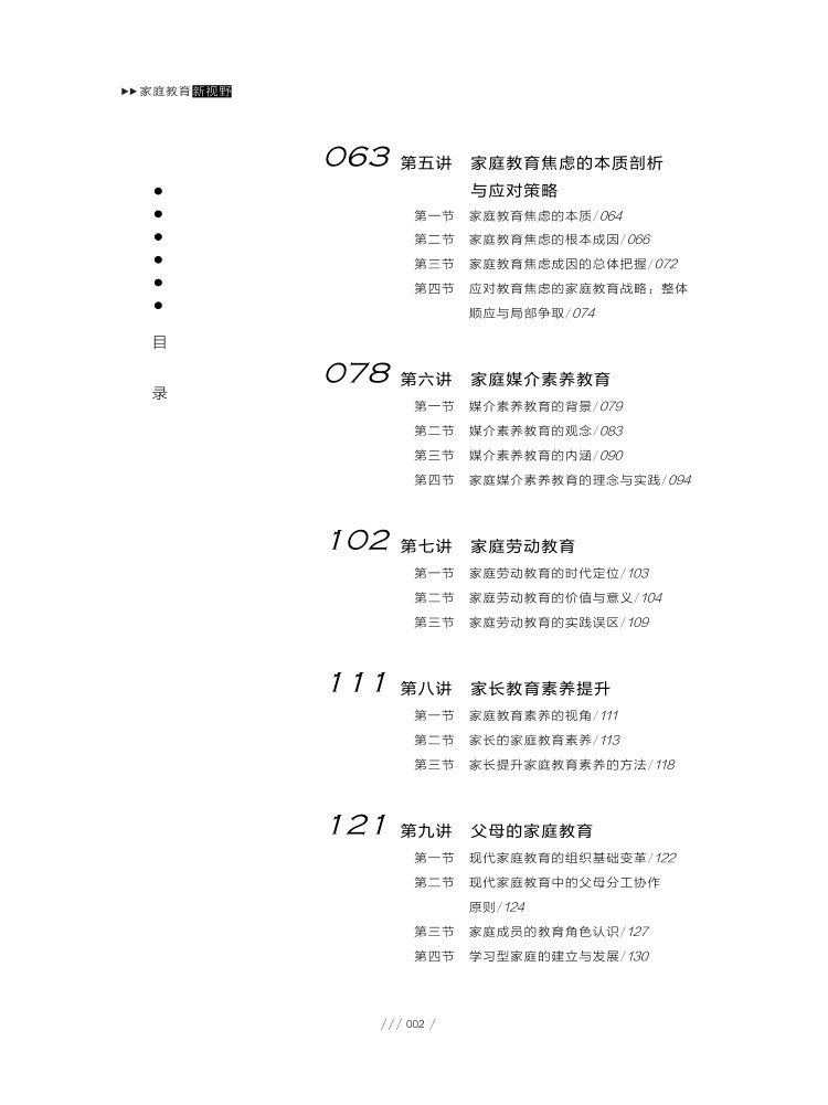 本书为“中小学教师能力提升线上课程配套讲义”。<br> 本书旨在帮助构建高质量家庭教育体系,在此目标指引下,本书聚焦现代家庭教育的使命、内涵、目标、内容、方法与途径、教育者等方面的新认识和新理解,以专题的形式对家校合育、家风文化、家庭教育焦虑、家庭劳动教育、家长教育素养等核心议题进行解读,使学习者获得面向新时代的家庭教育认识和理解,帮助学习者掌握新时代家庭教育的实践能力,提高家庭教育问题解决水平。本书具有时代性视野、新理念认识、专题化内容、高质量团队。