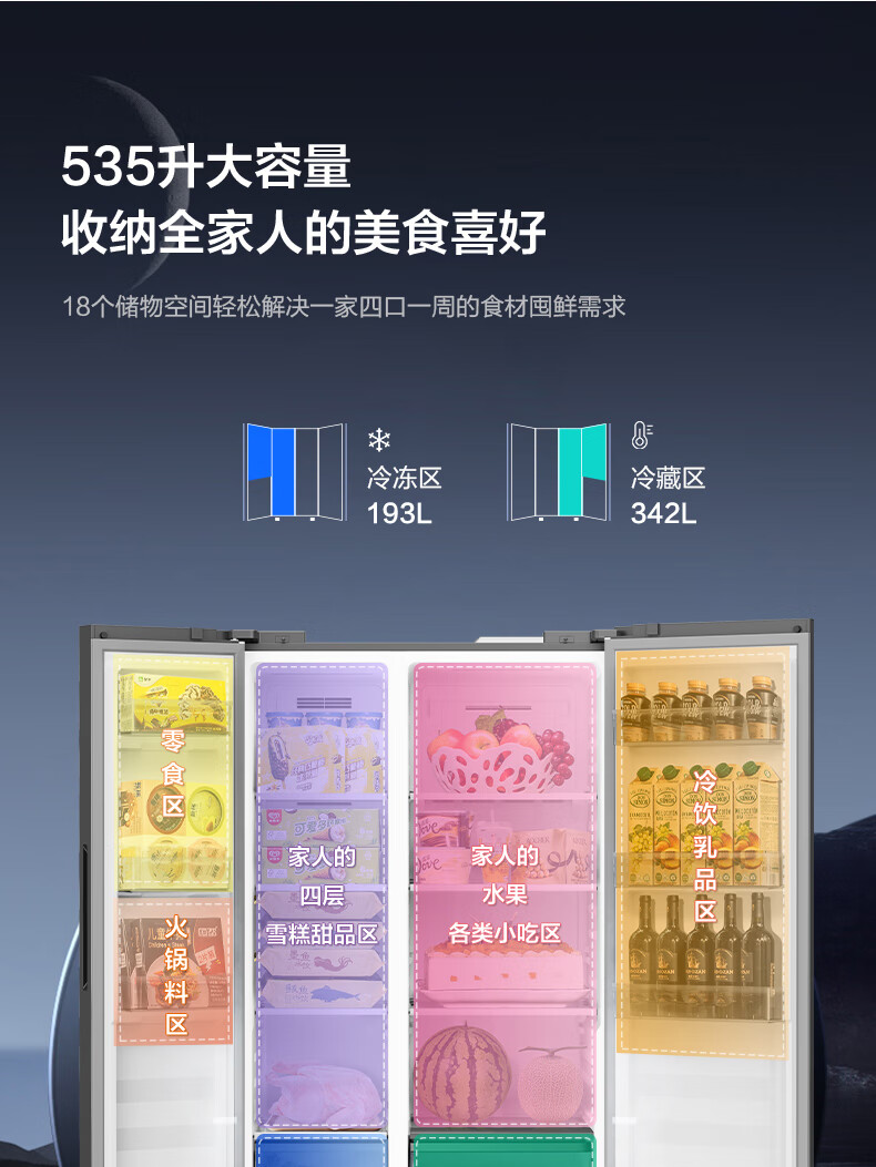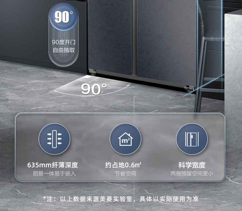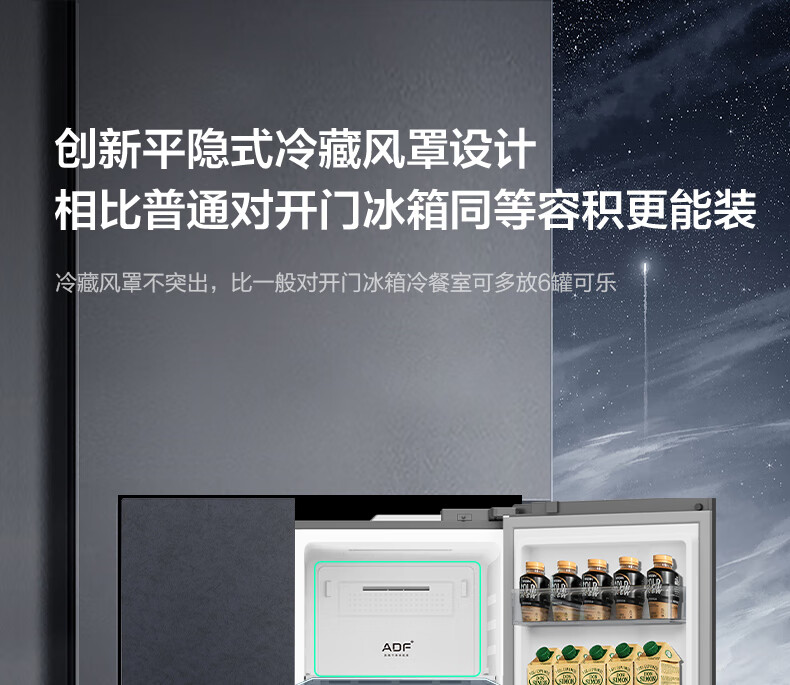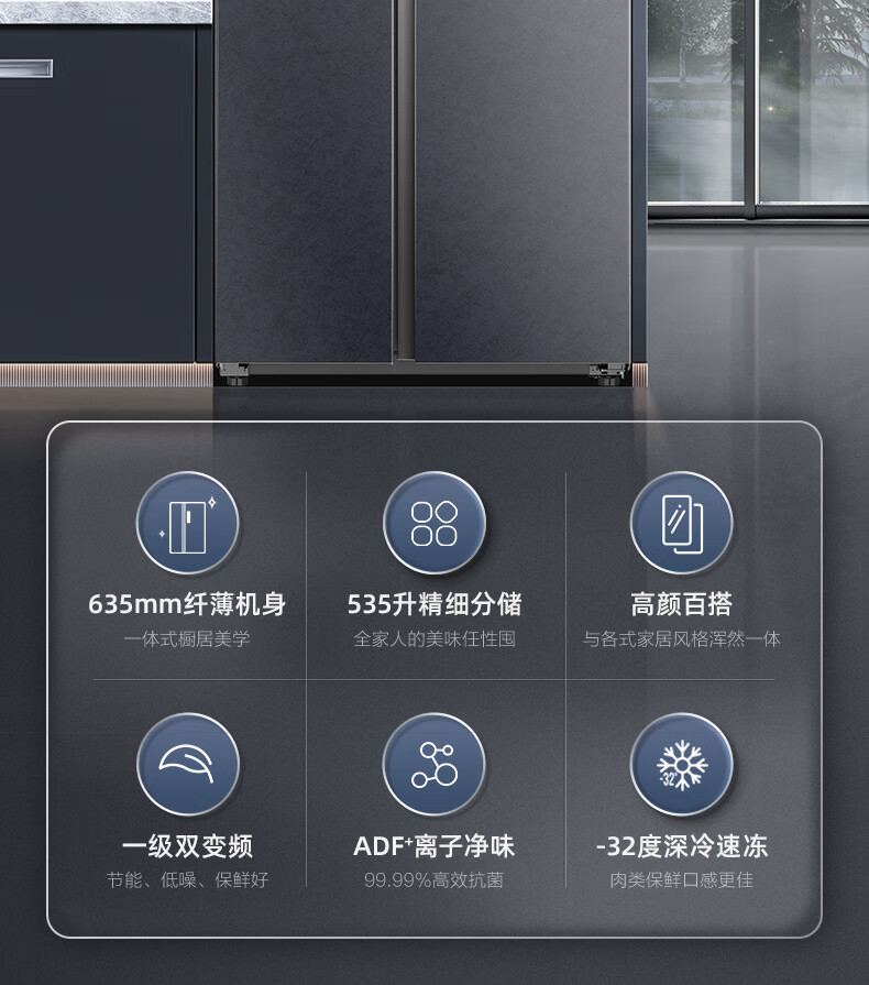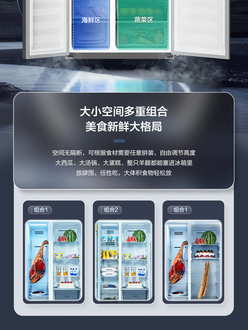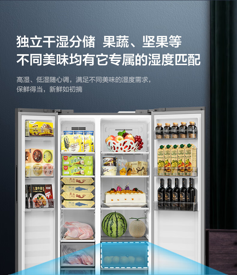 美菱(MeiLing)【彩晶系列】535升烟云灰玻璃对开门冰箱一级变频BCD-535WPBX【专】