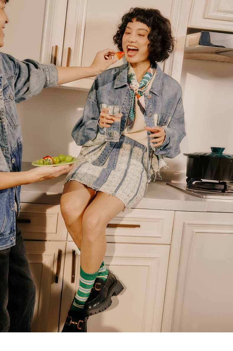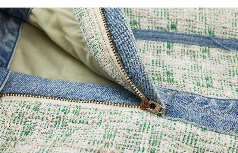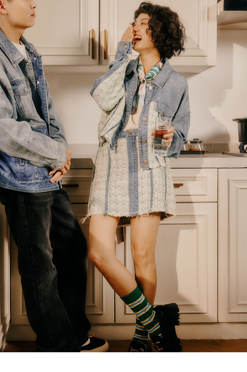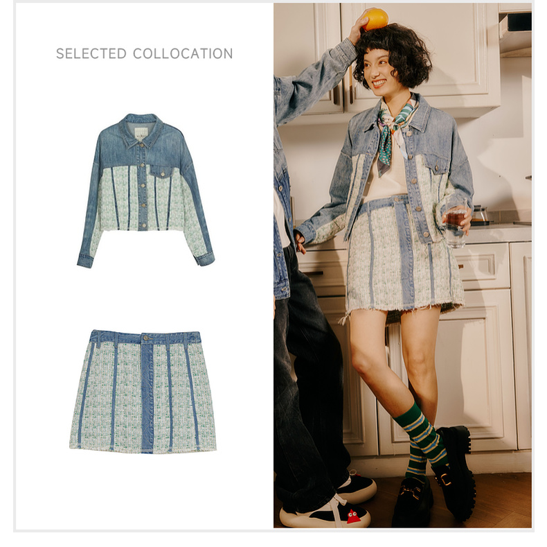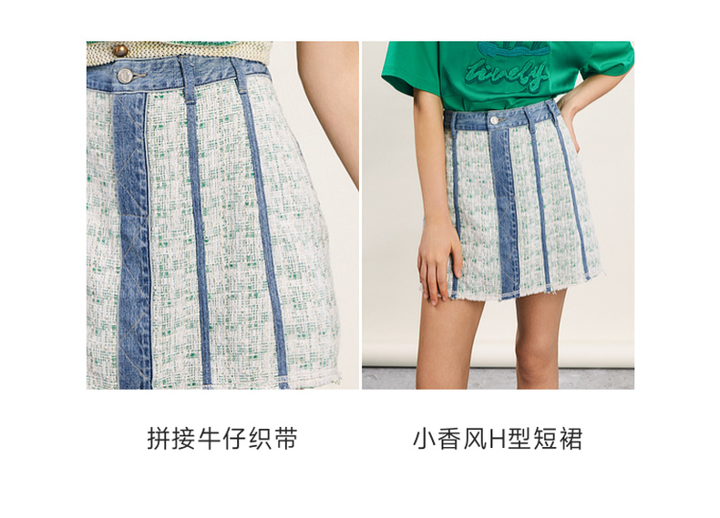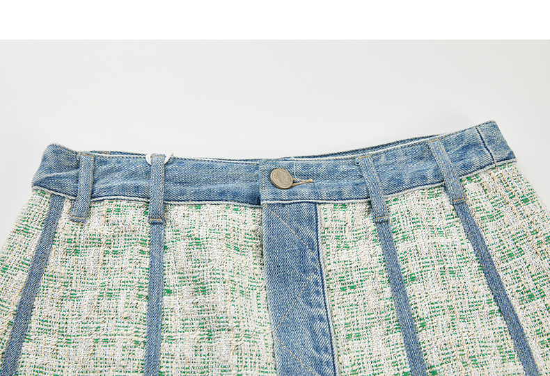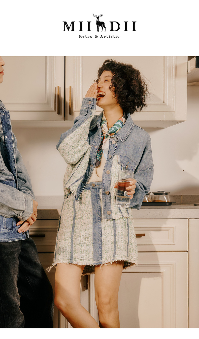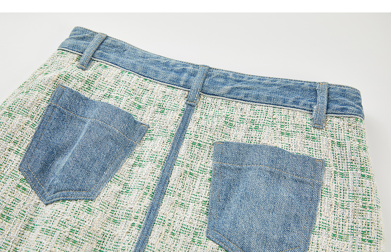 谜底牛仔半身裙2024春季新款复古高腰拼接设计感A型短裙241MB0131