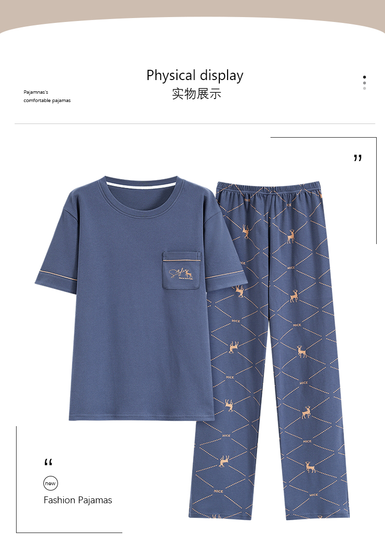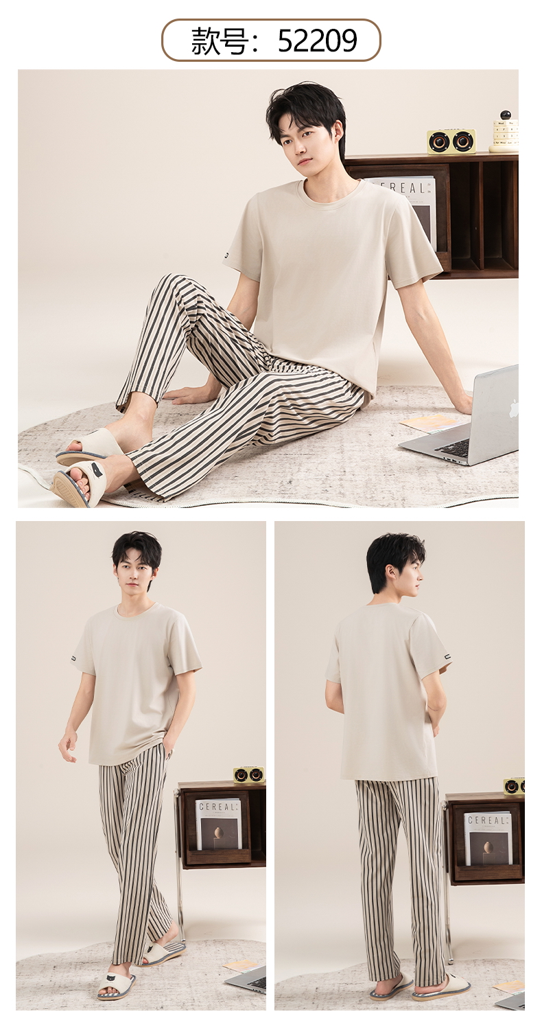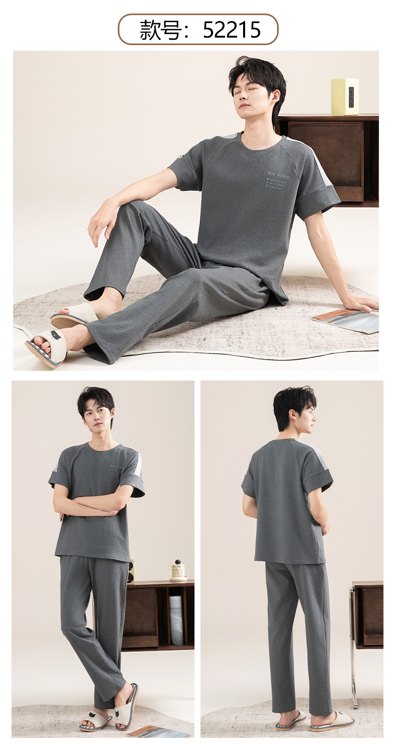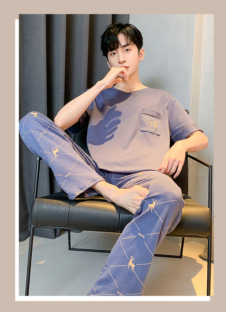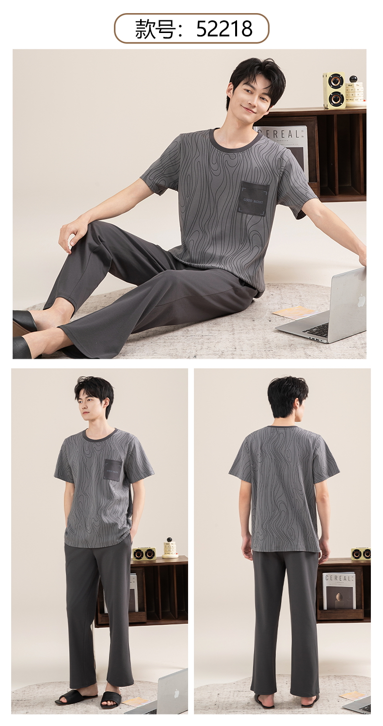 自然醒浮云家居服睡衣男士夏季纯棉薄款短袖长裤可外穿宽松大码家居服套装QH