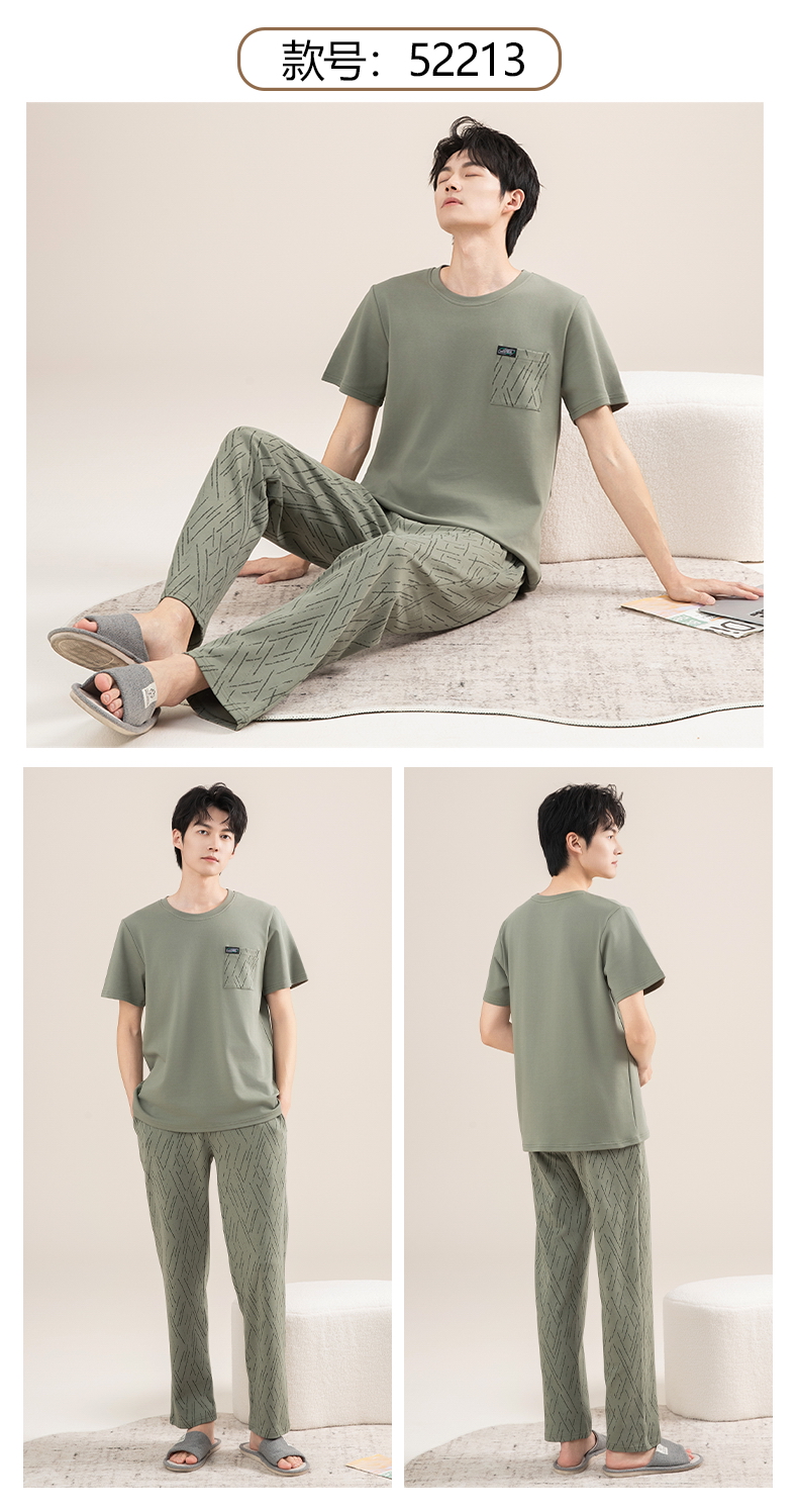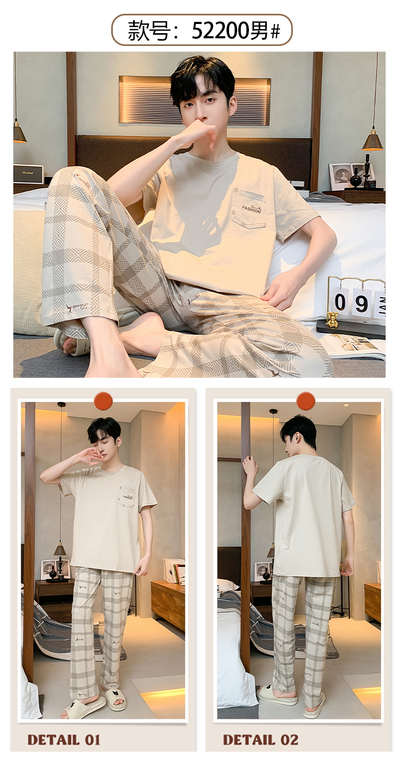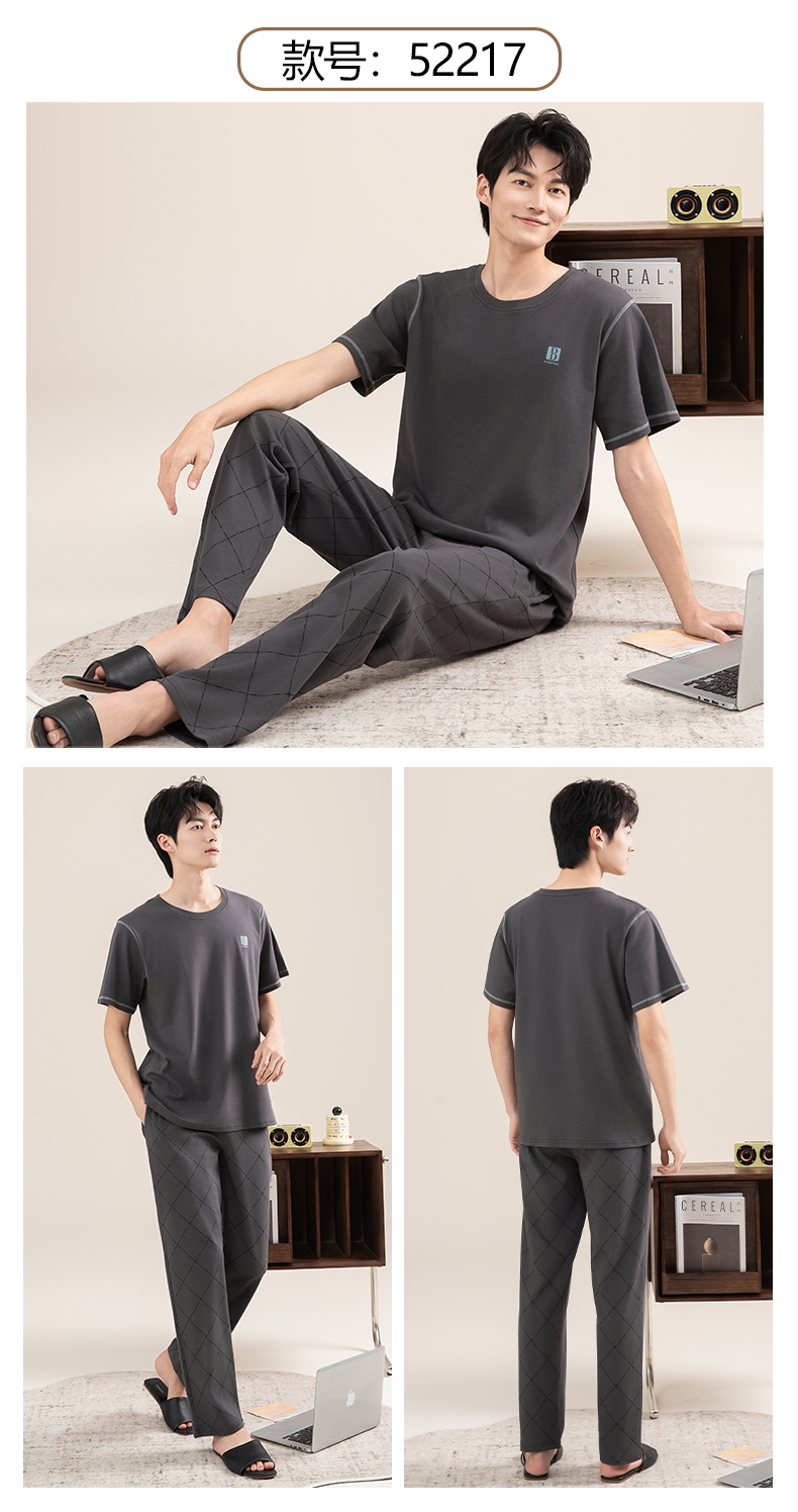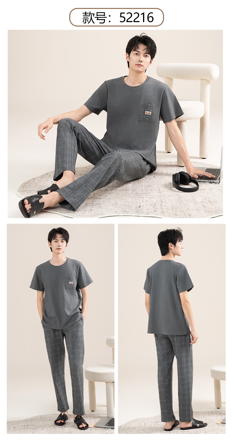 自然醒浮云家居服睡衣男士夏季纯棉薄款短袖长裤可外穿宽松大码家居服套装QH