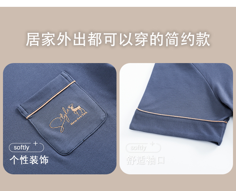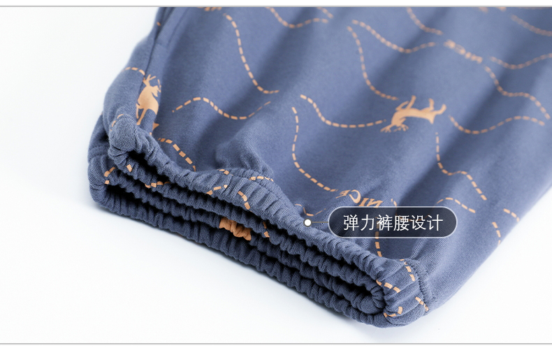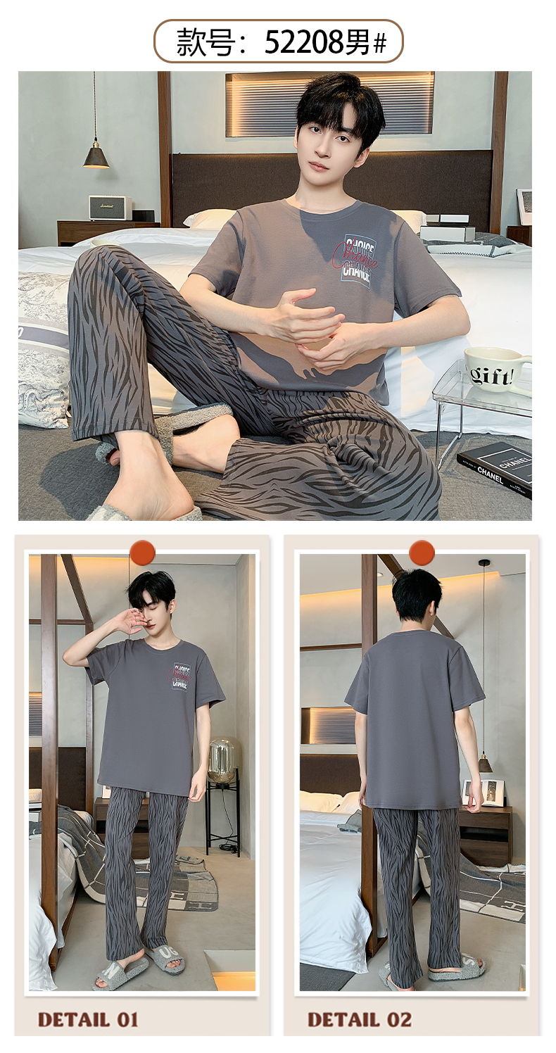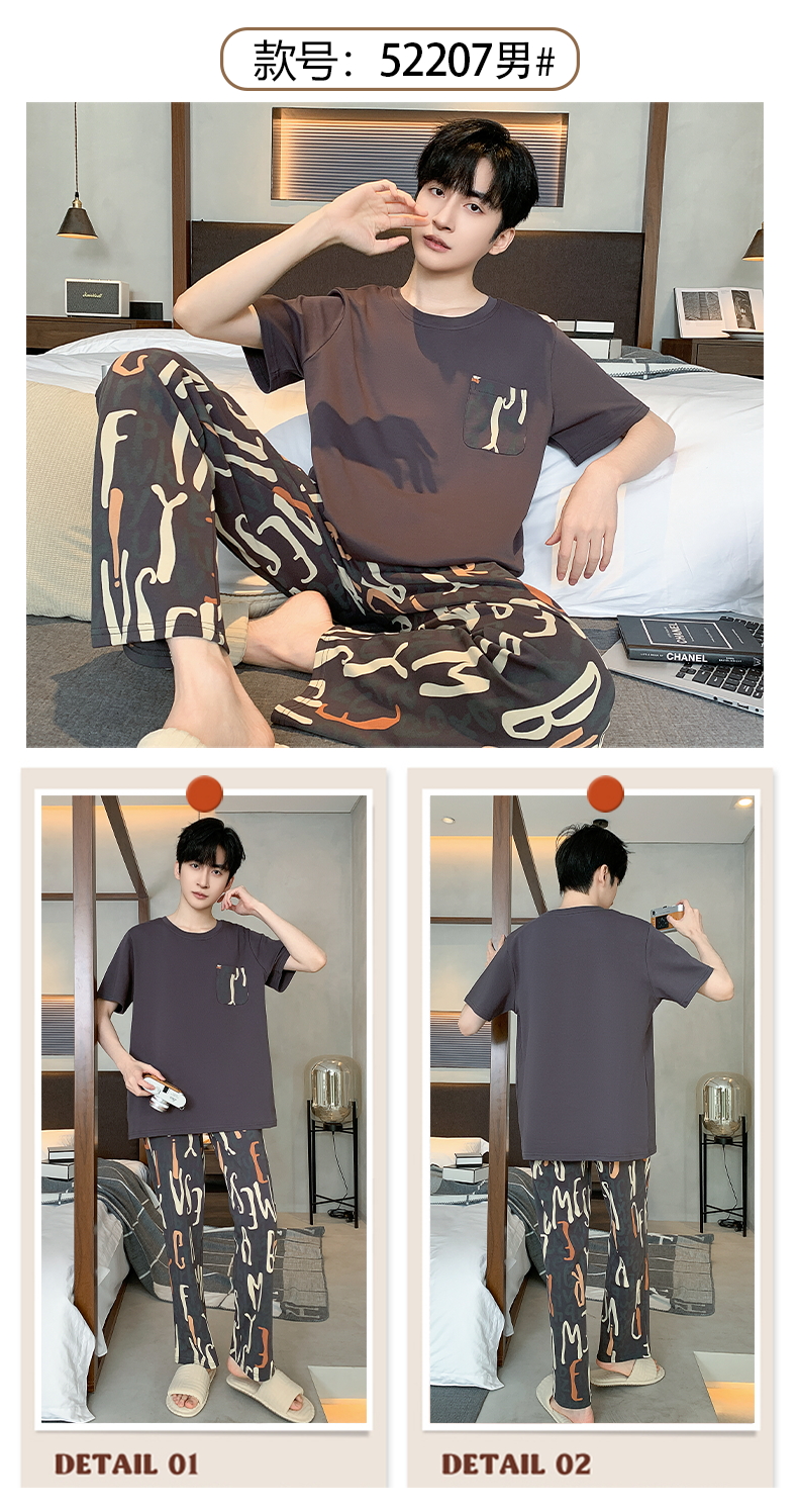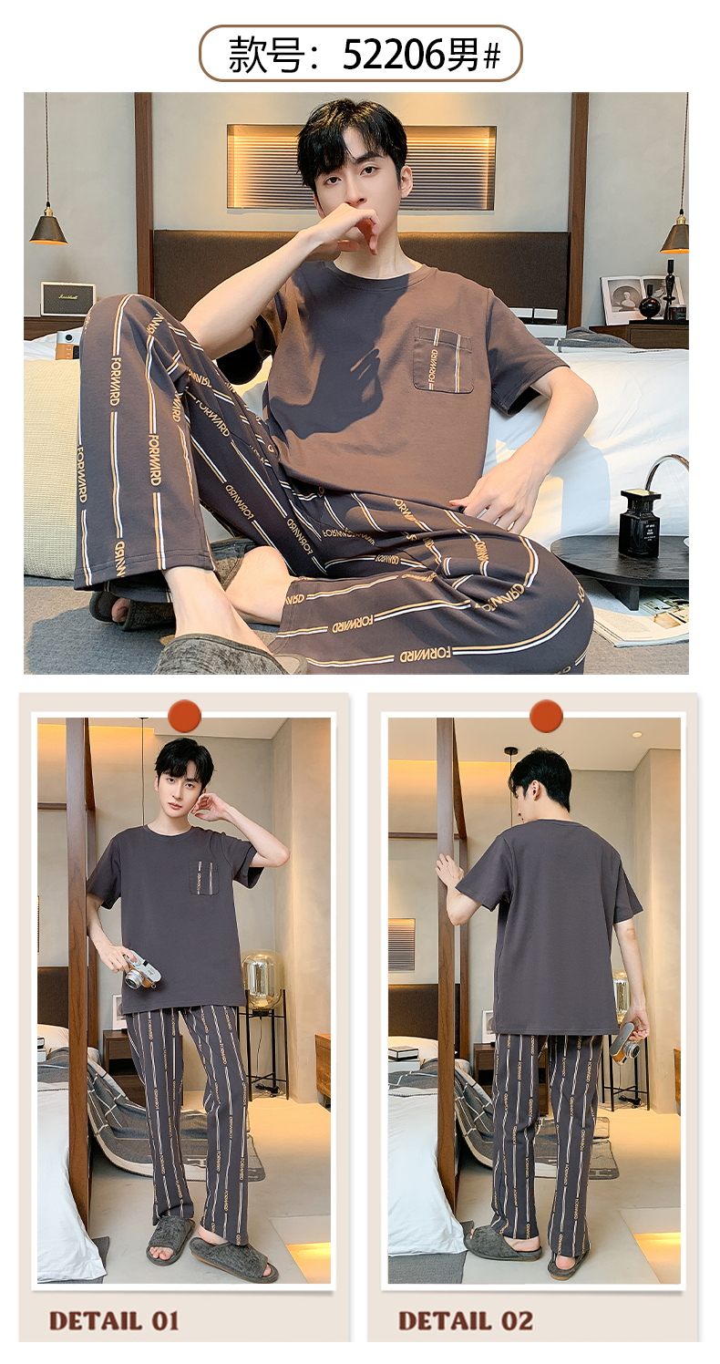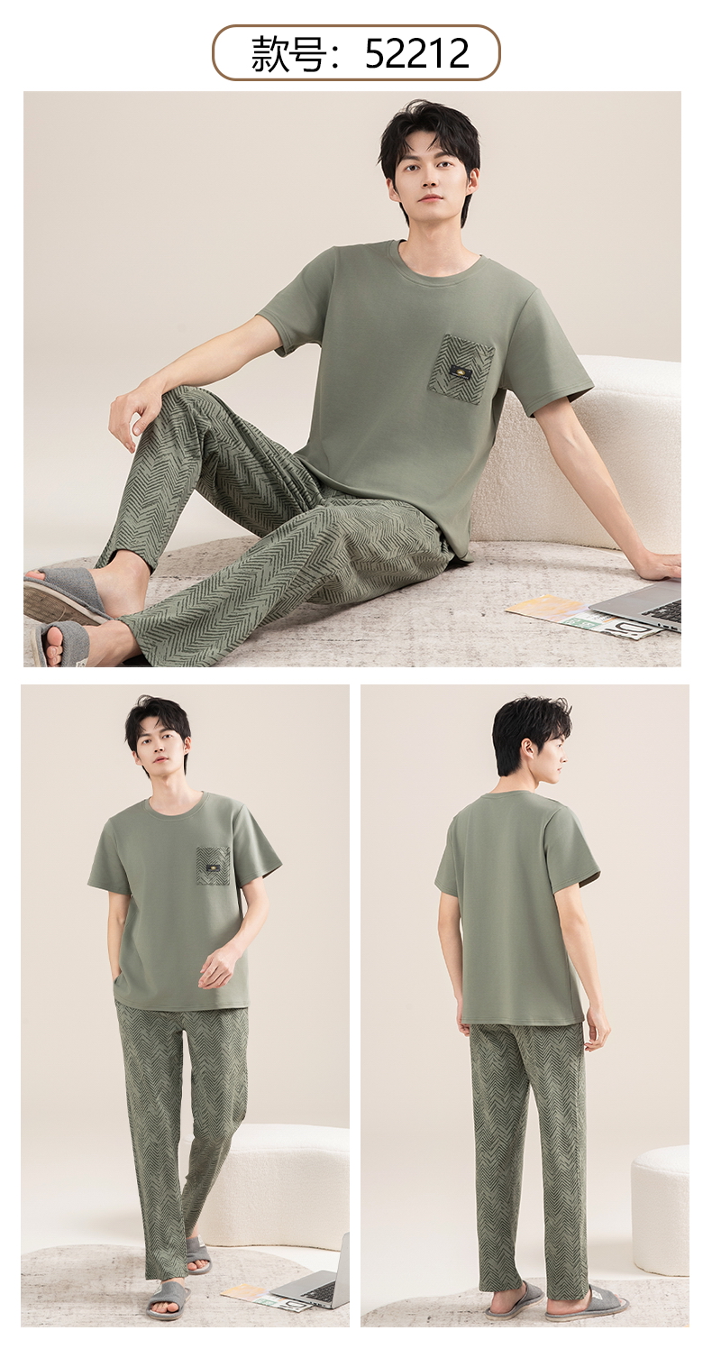 自然醒浮云家居服睡衣男士夏季纯棉薄款短袖长裤可外穿宽松大码家居服套装QH