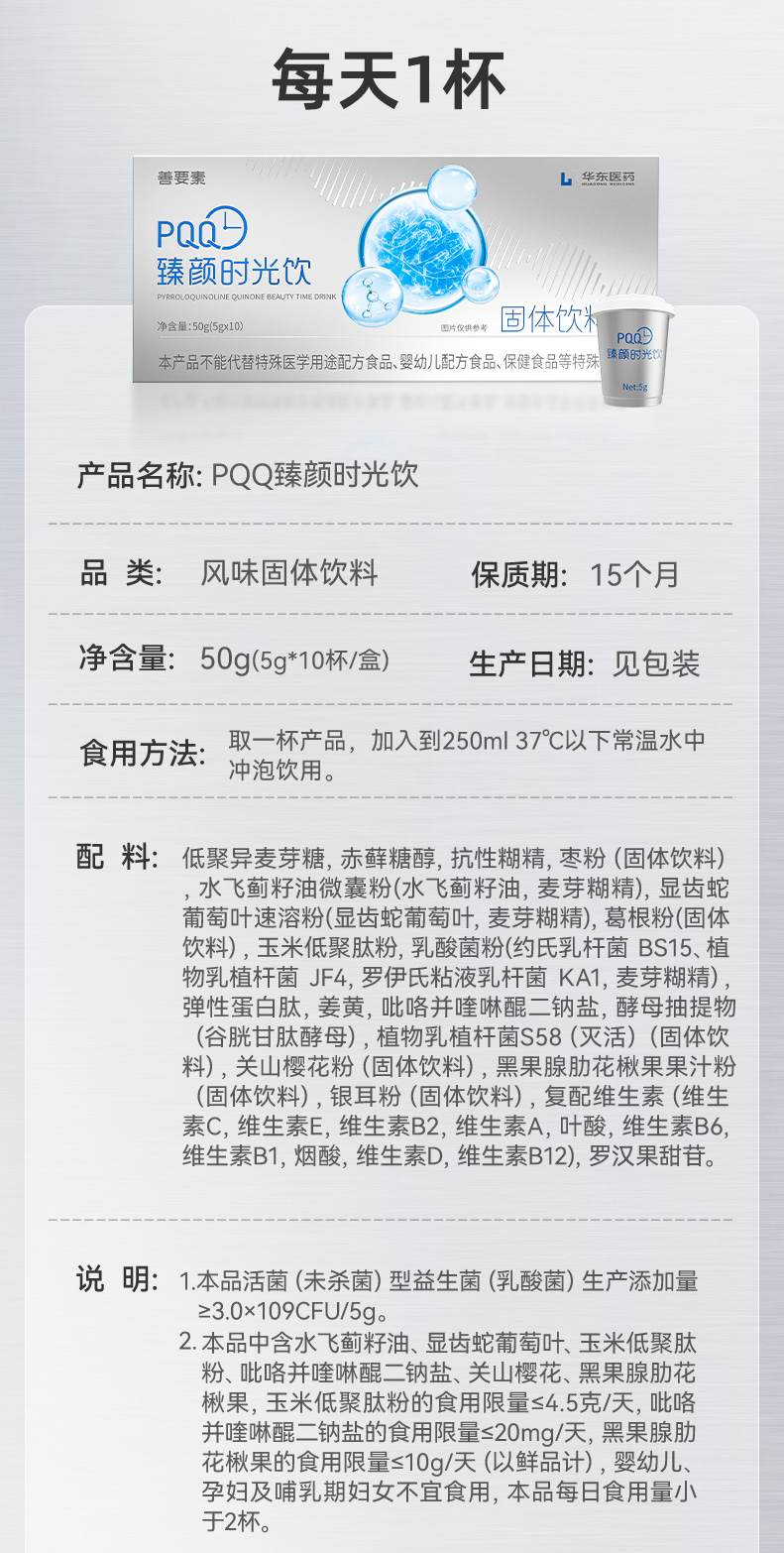 【北京卫视养生堂】华东医药 PQQ臻颜时光饮 固体饮料