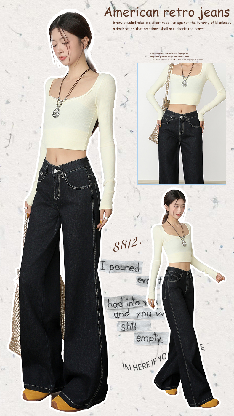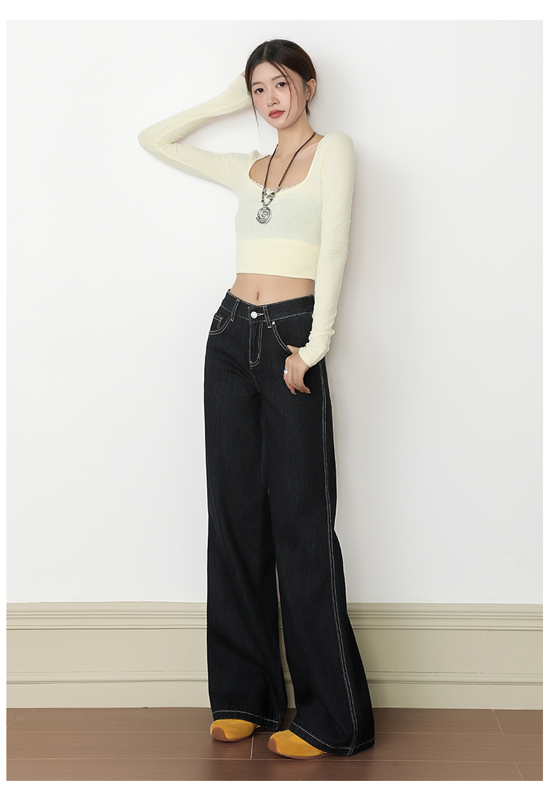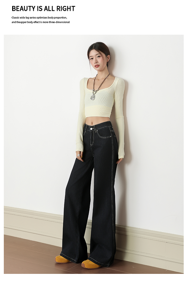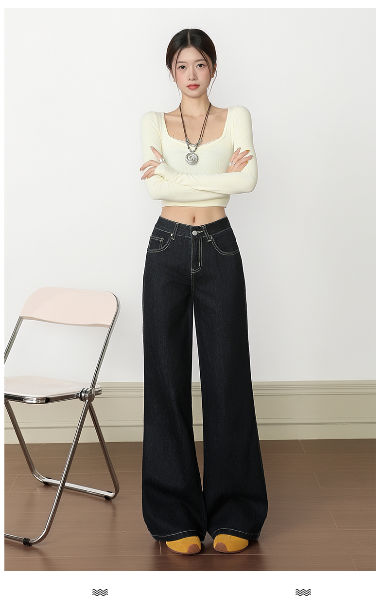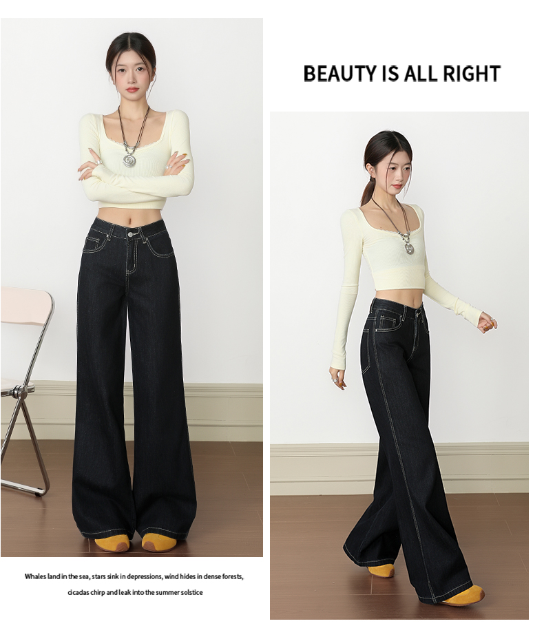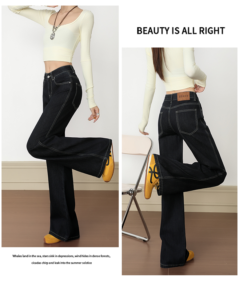 罗蒙秋冬女士牛仔裤深色微喇叭牛仔裤百搭低腰马蹄裤子复古显瘦宽松拖地裤