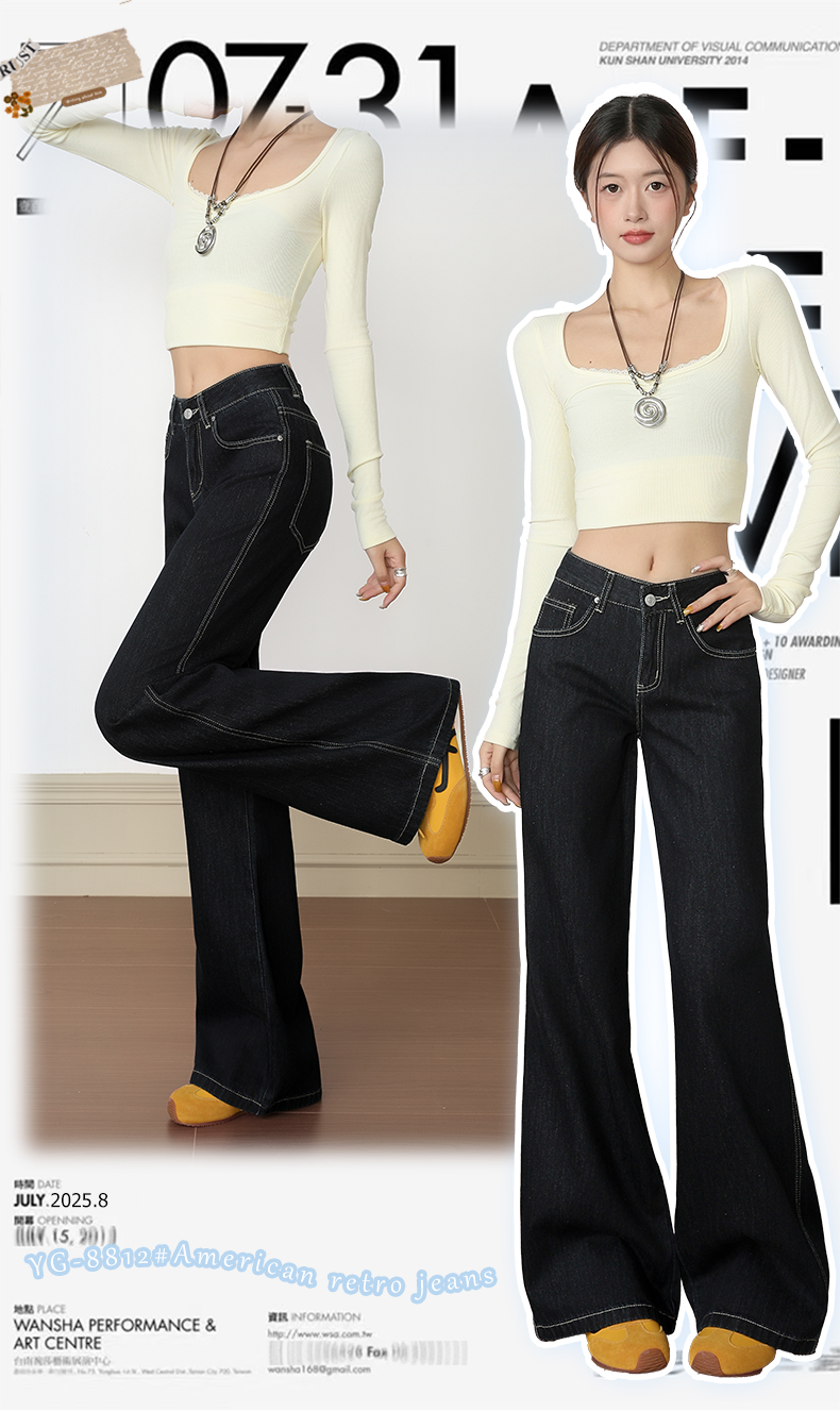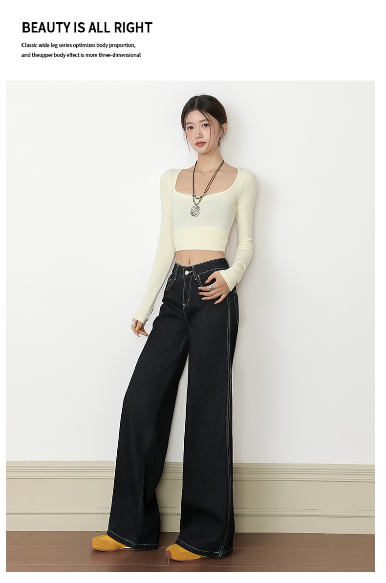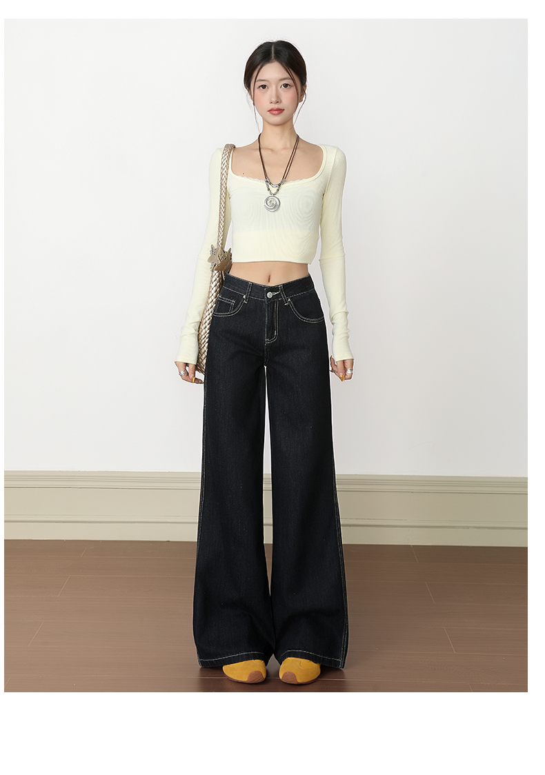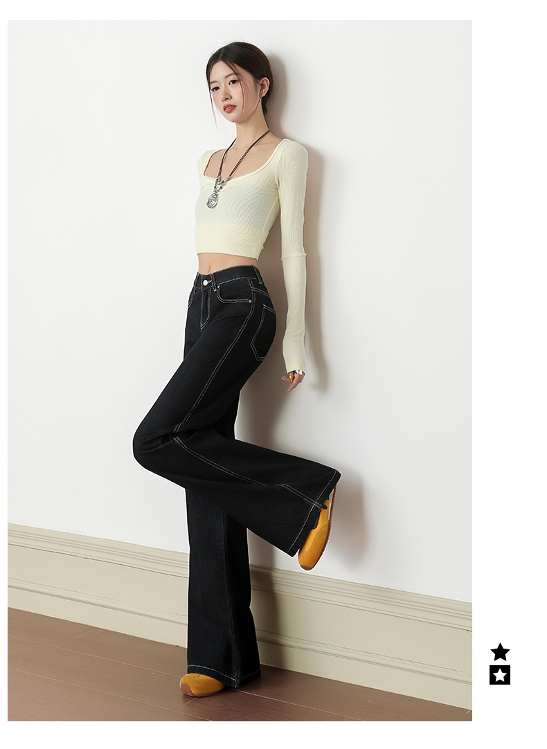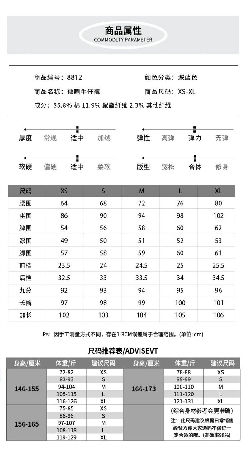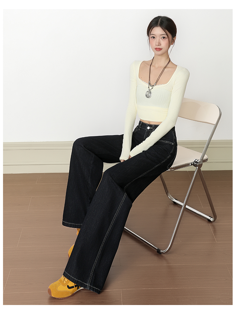 罗蒙秋冬女士牛仔裤深色微喇叭牛仔裤百搭低腰马蹄裤子复古显瘦宽松拖地裤