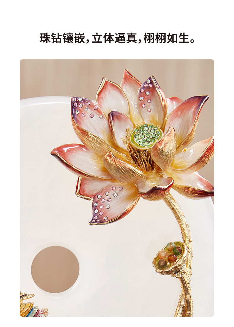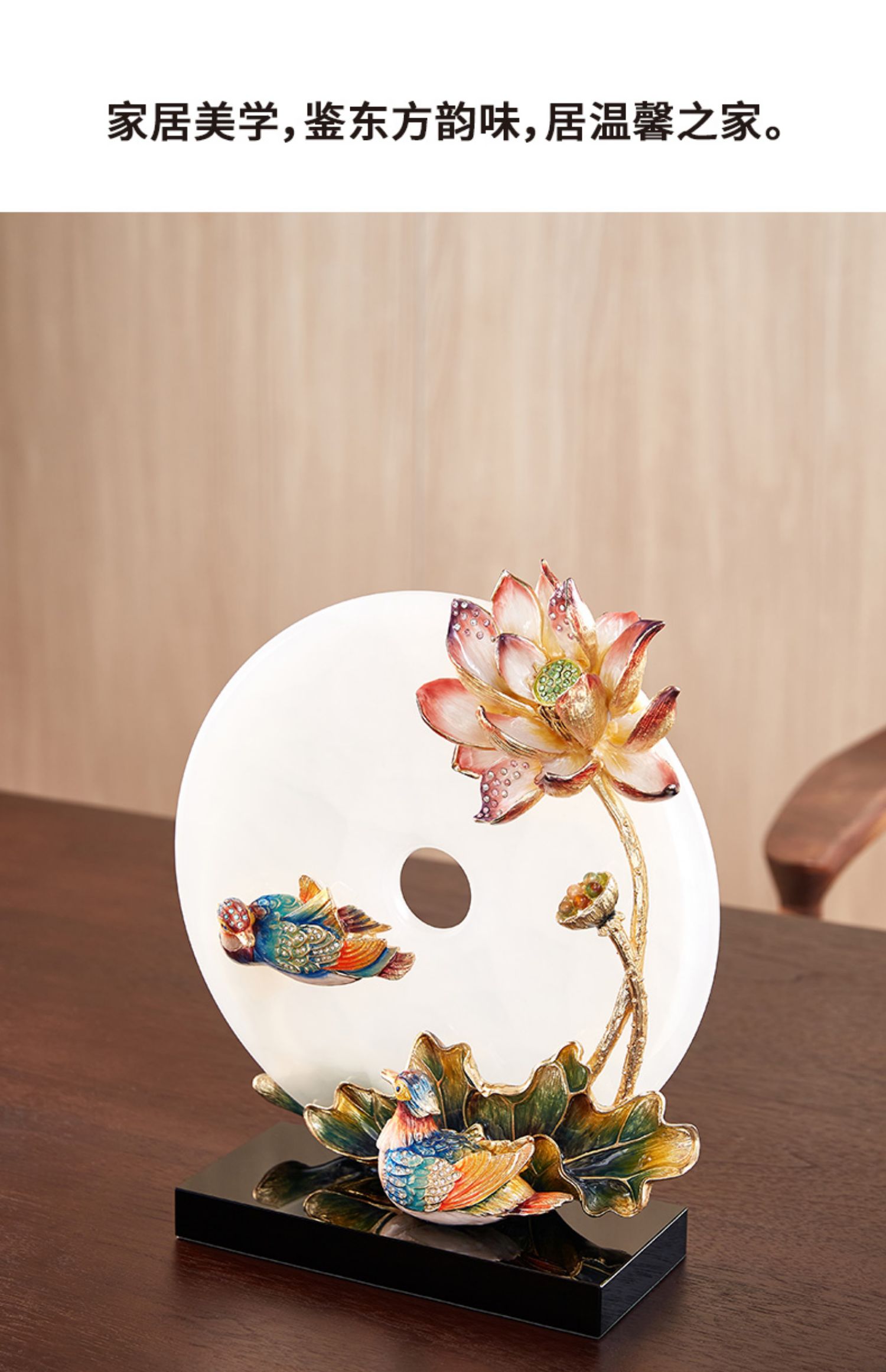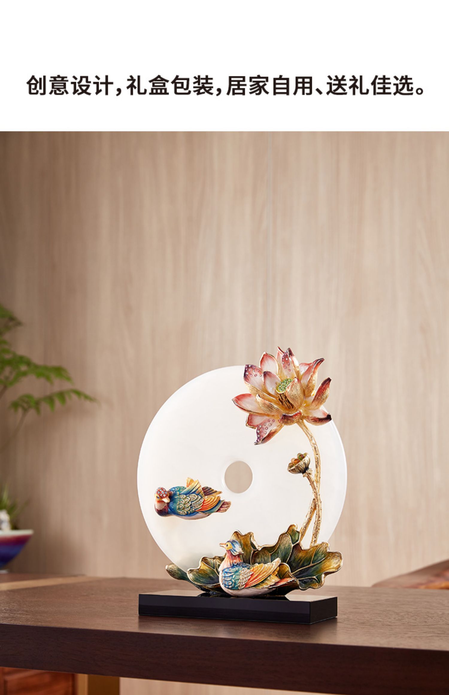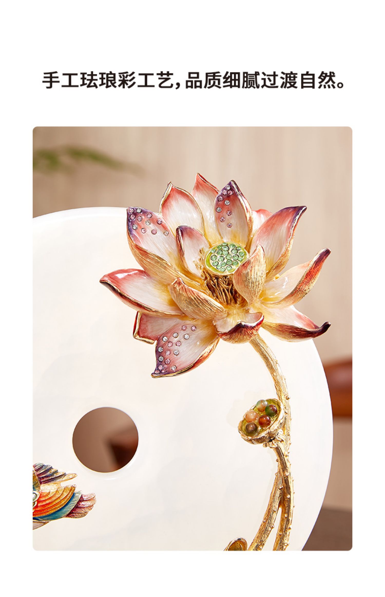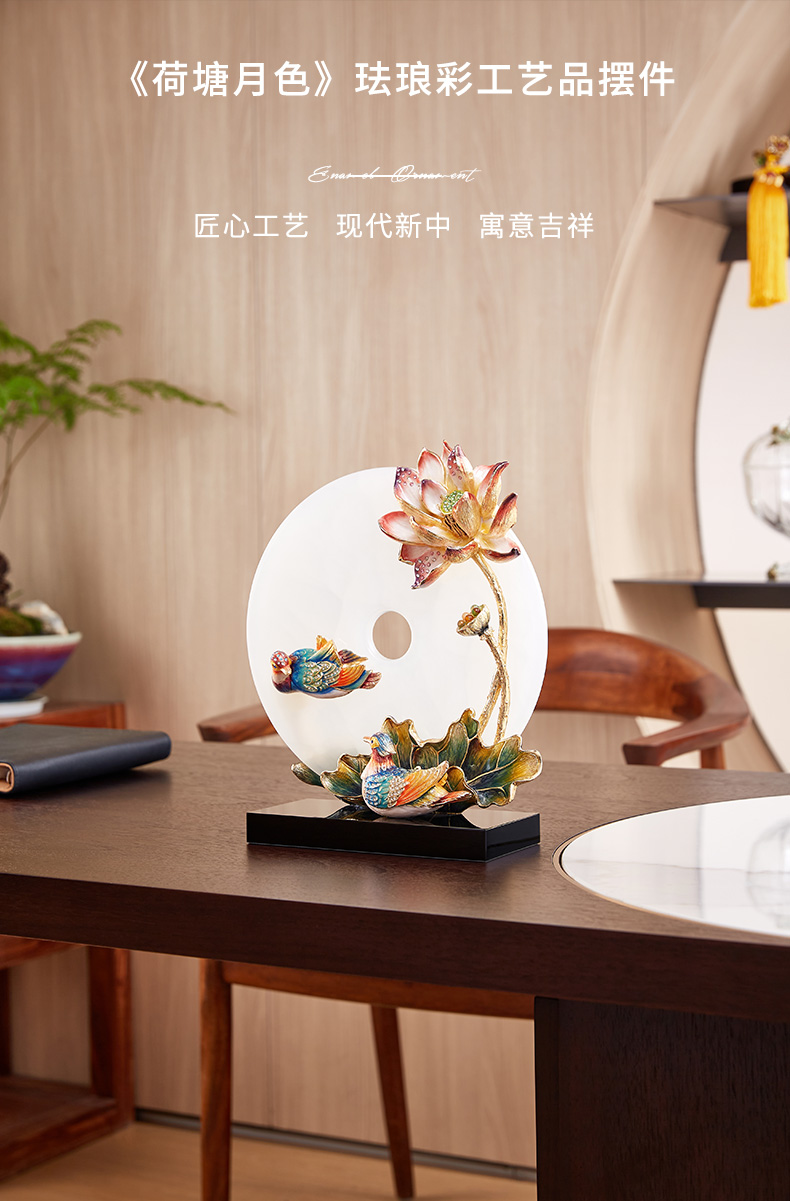 罗比罗丹荷塘月色平安扣摆件珐琅彩工艺荷花新中式家居饰品罗比罗丹摆件(荷塘月色)
