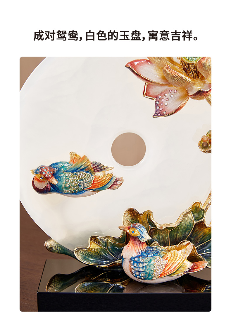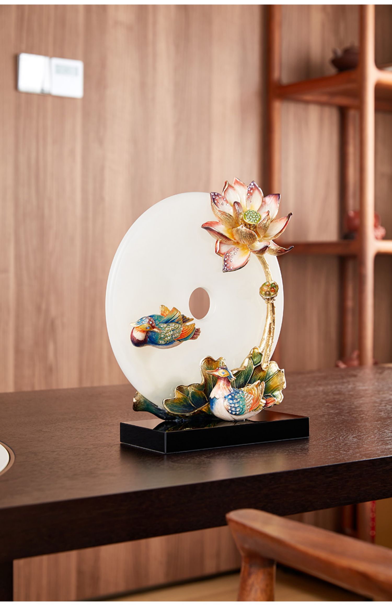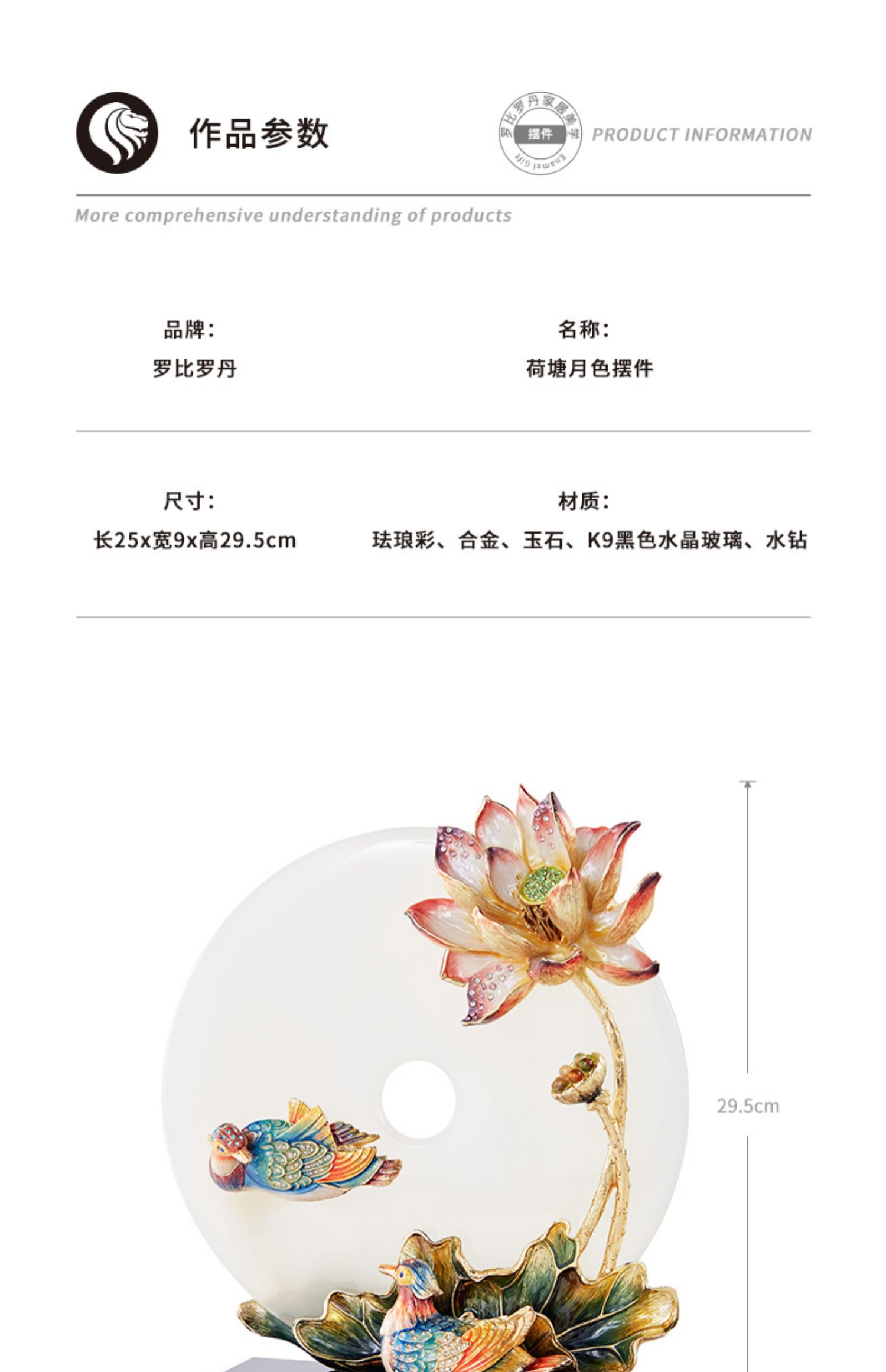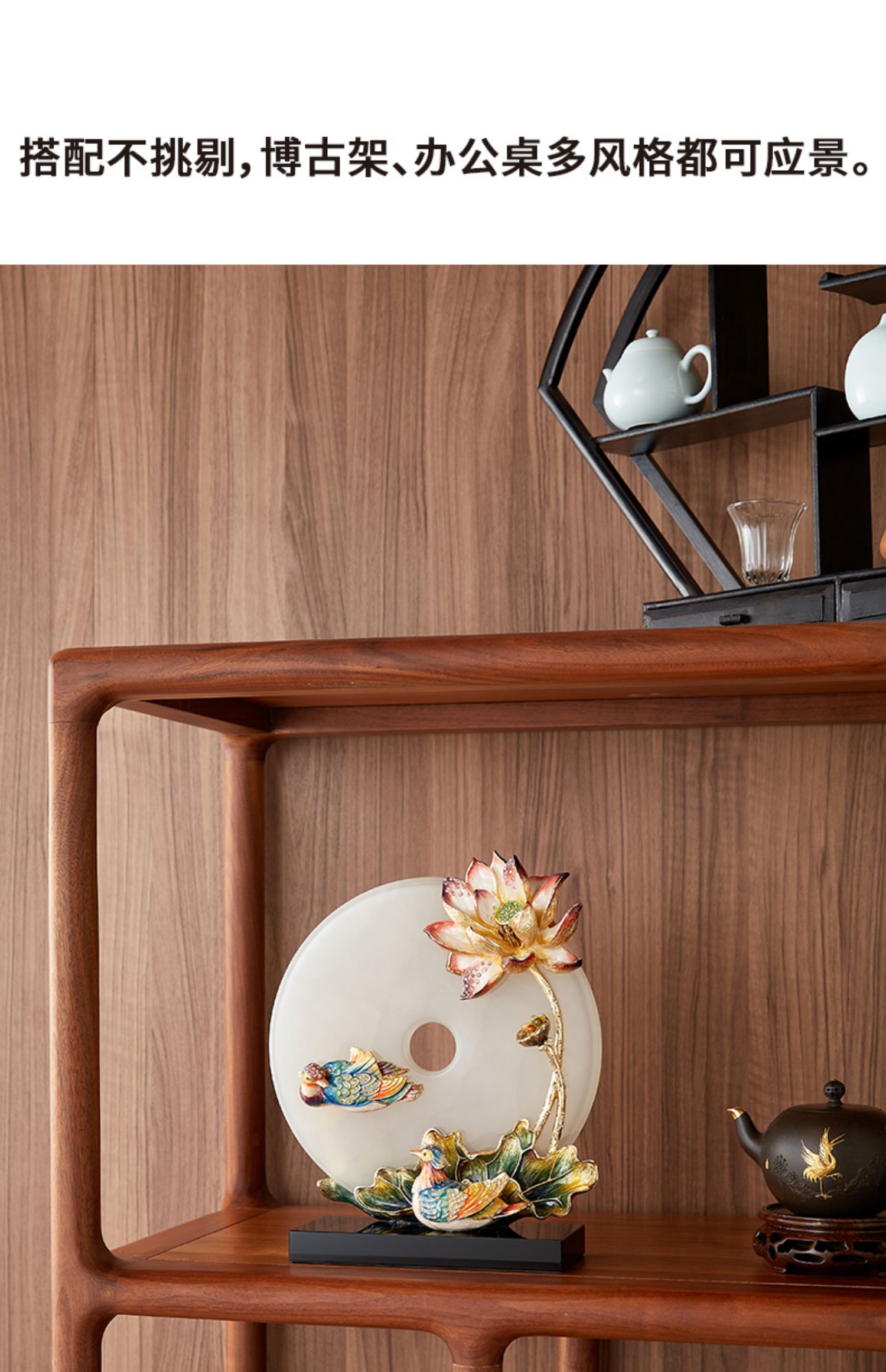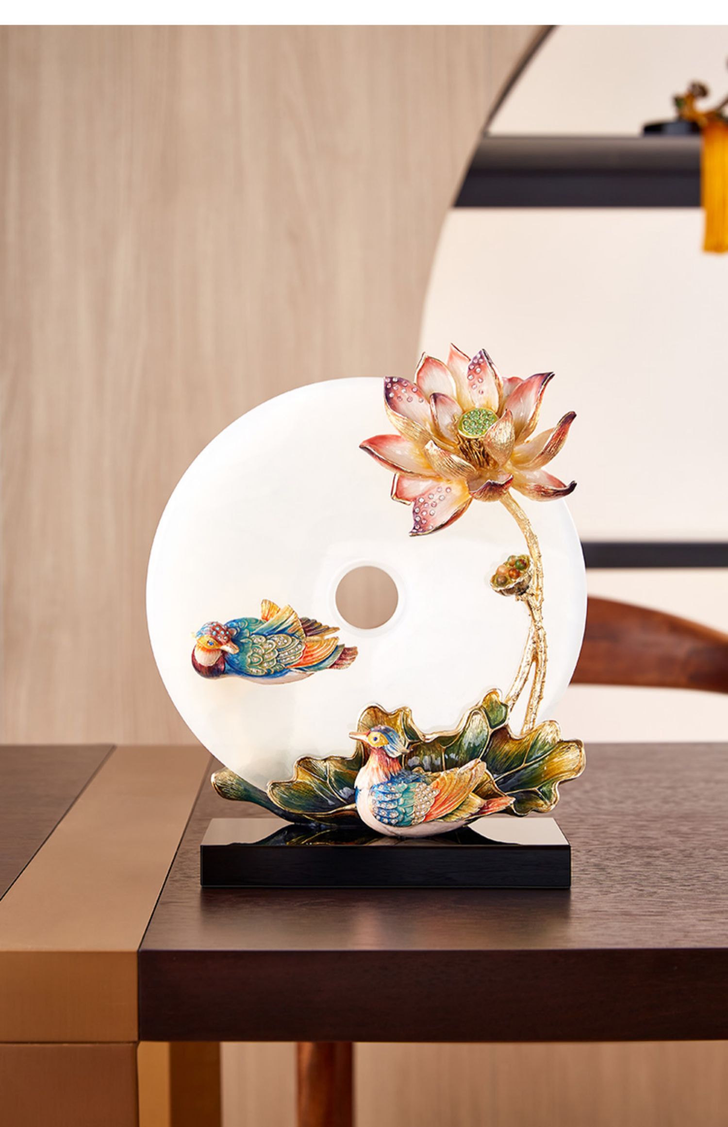 罗比罗丹荷塘月色平安扣摆件珐琅彩工艺荷花新中式家居饰品罗比罗丹摆件(荷塘月色)