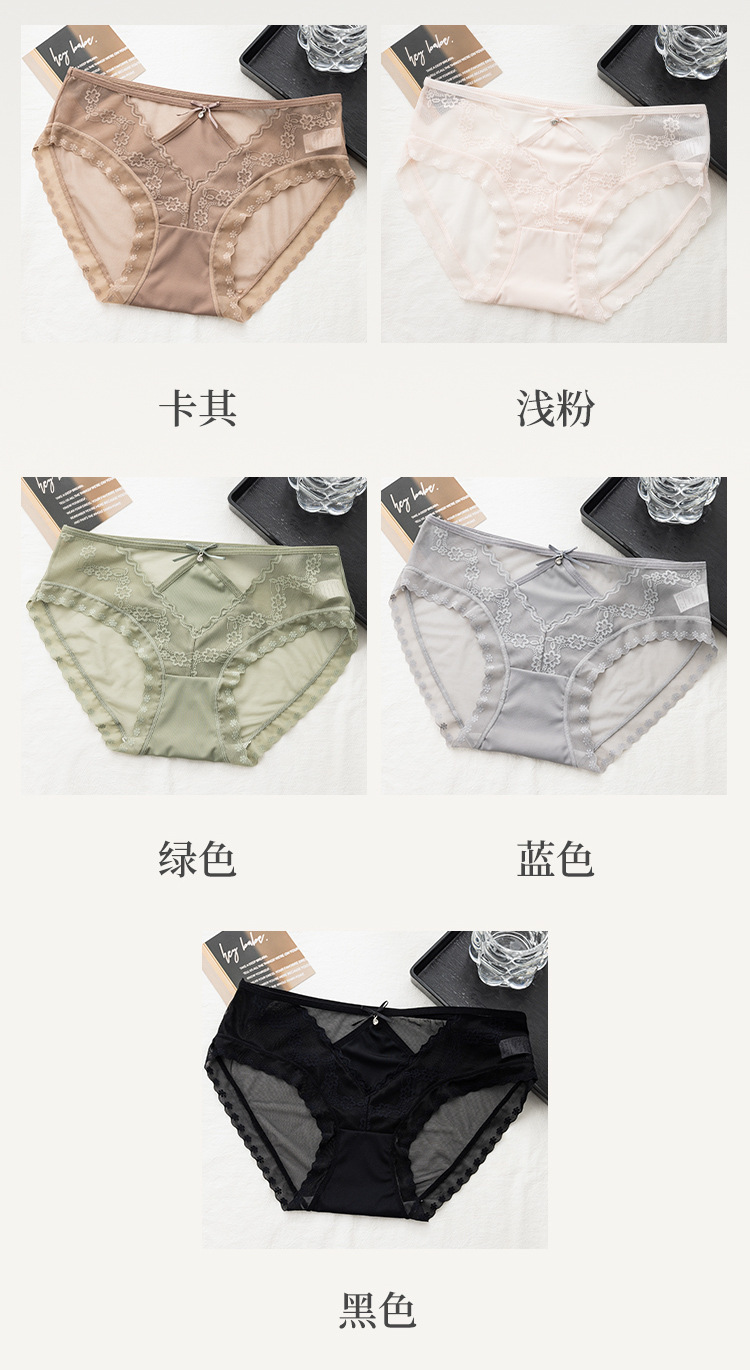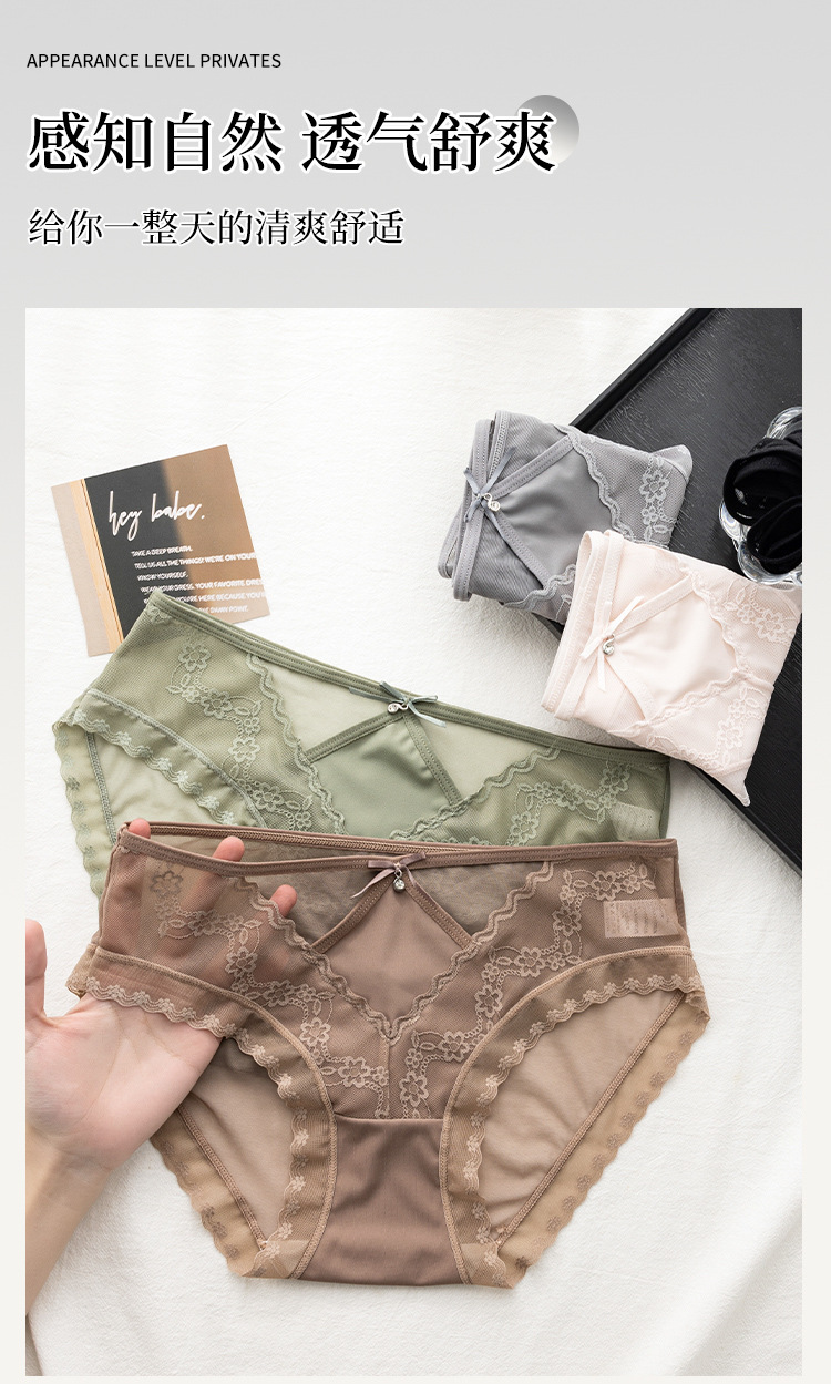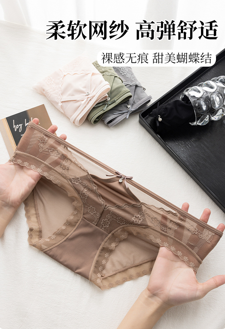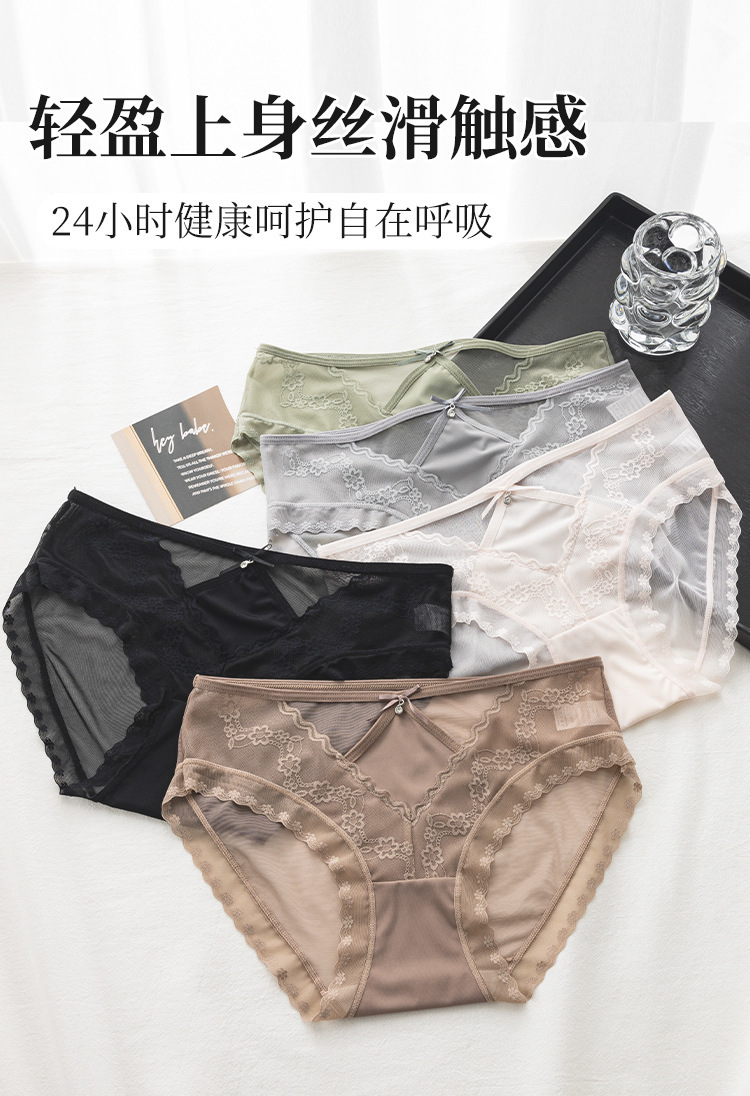 美拉德网纱蕾丝内裤 性感镂空 绣花设计 轻薄裸感 桑蚕丝裆纯欲风内裤女士三角裤
