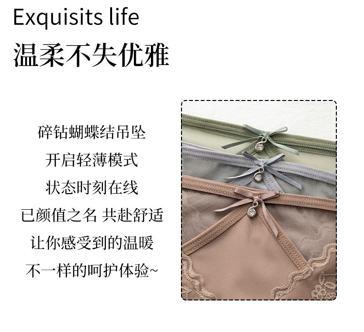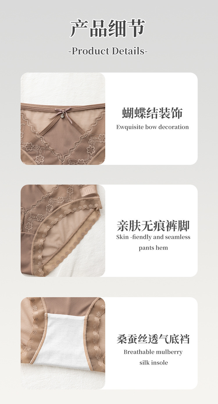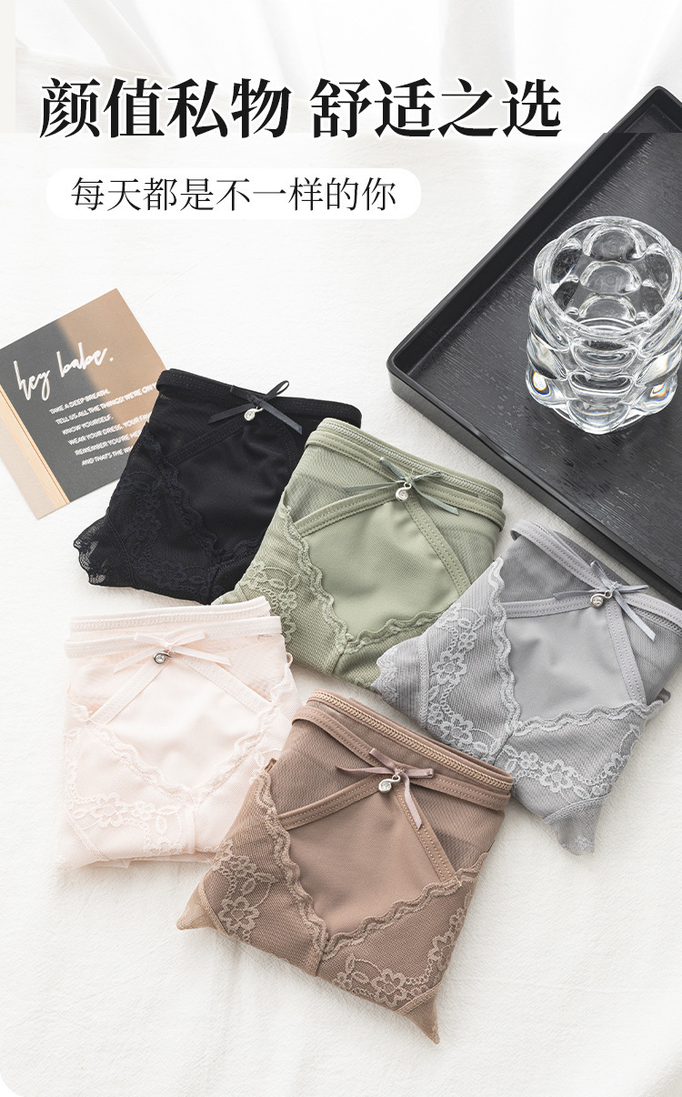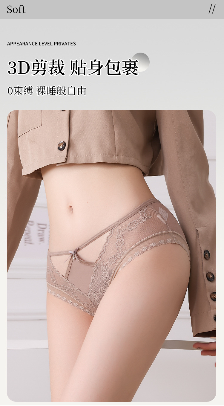 美拉德网纱蕾丝内裤 性感镂空 绣花设计 轻薄裸感 桑蚕丝裆纯欲风内裤女士三角裤