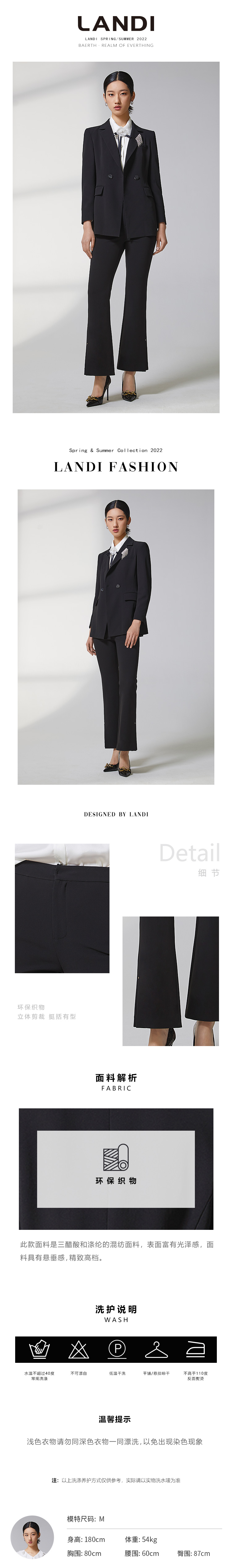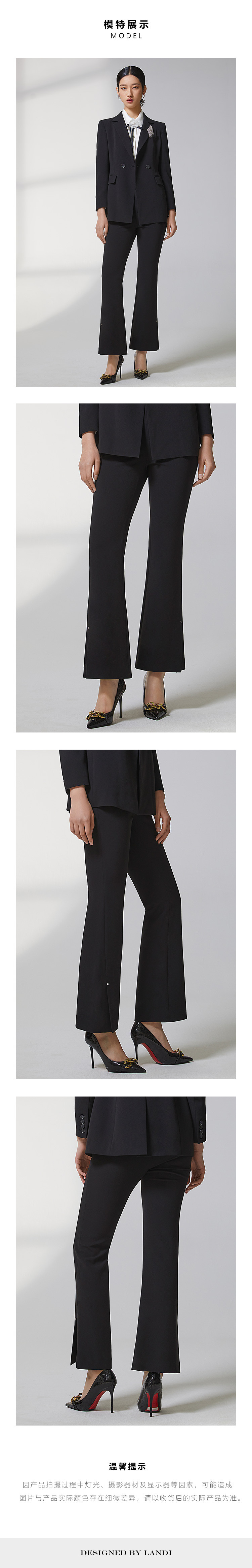 蓝地修身微喇长裤BLWCT030K00