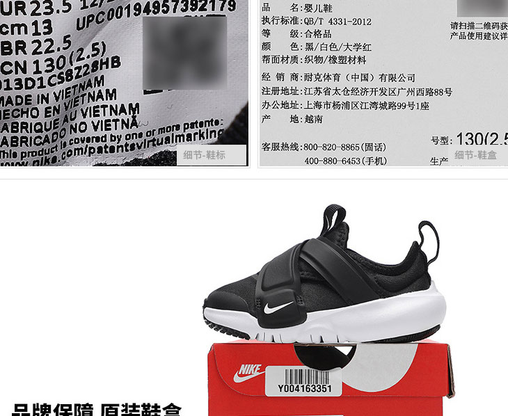 小耐克男女婴童魔术贴儿童运动鞋软底CZ0188-002
