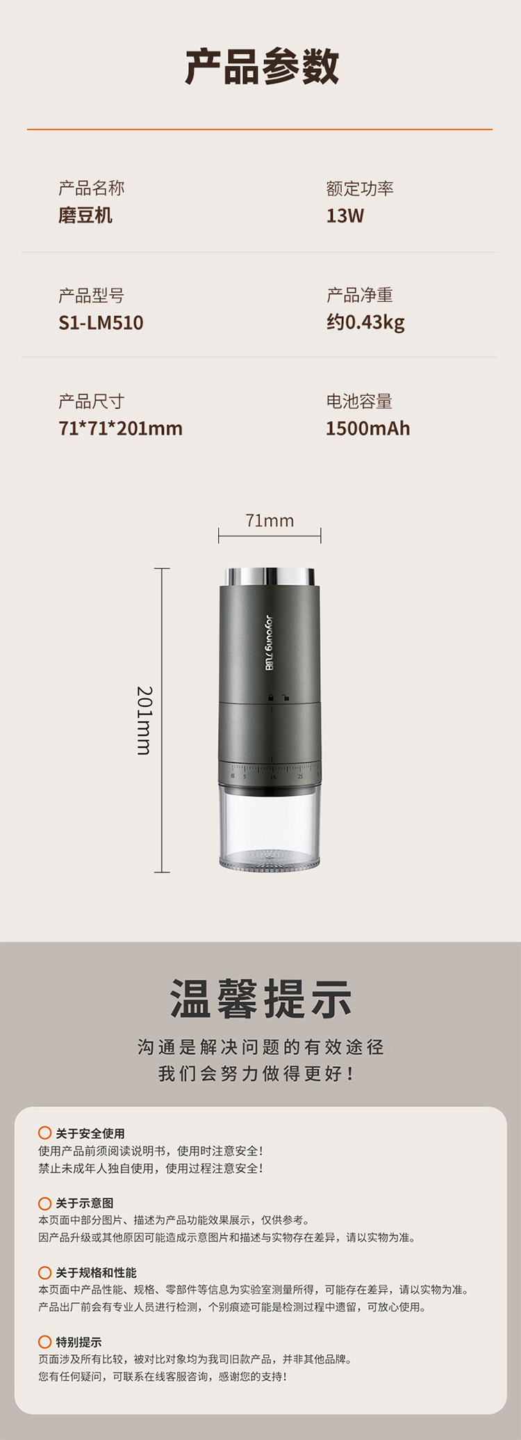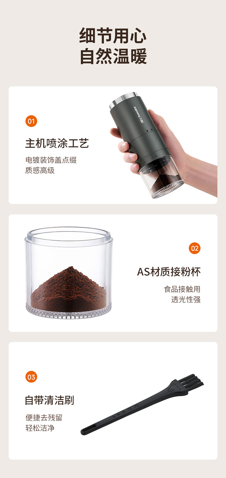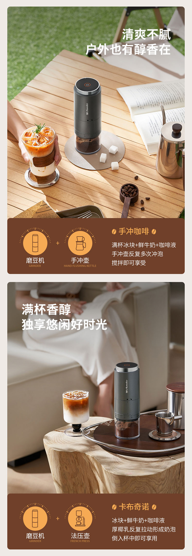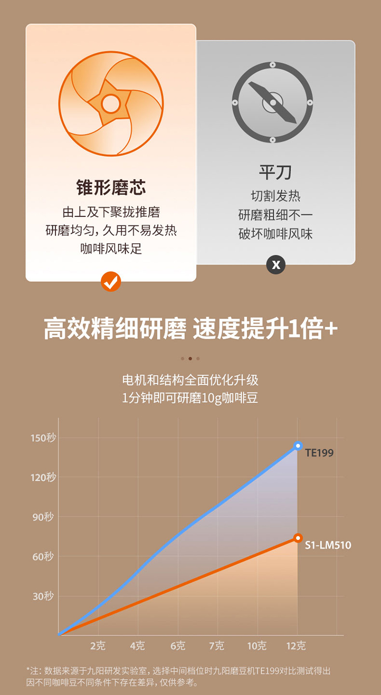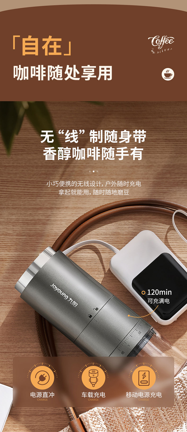 【自营】 九阳 咖啡磨粉机 38档粗细调节 无线使用长续航 锥形磨心