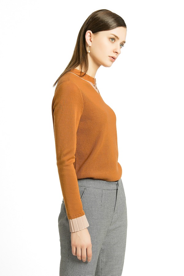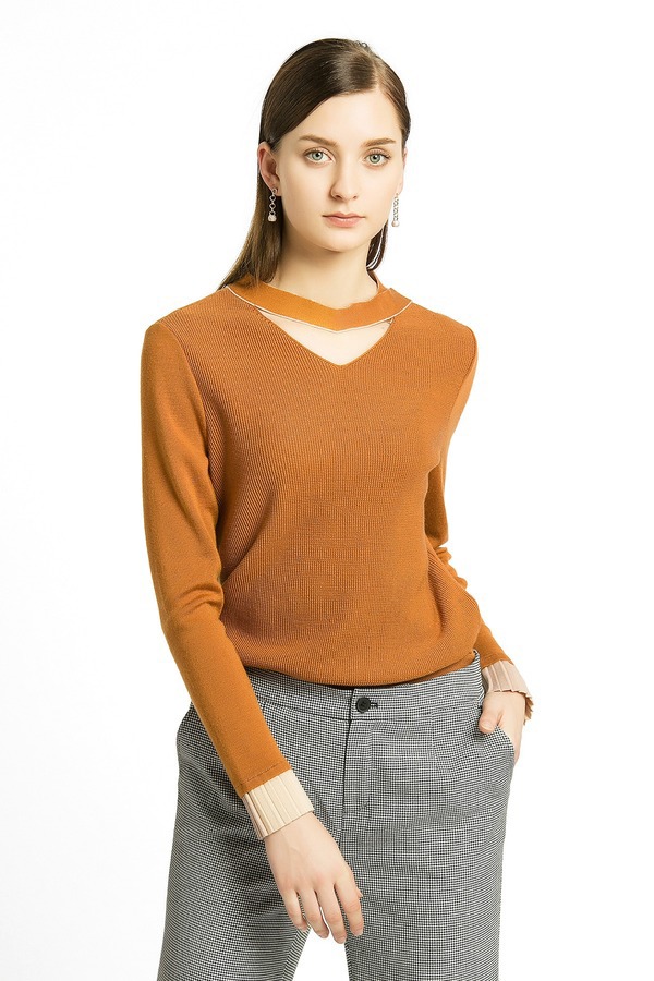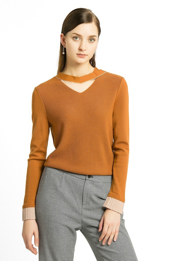 NAERSI娜尔思 焦糖色V领针织衫 95