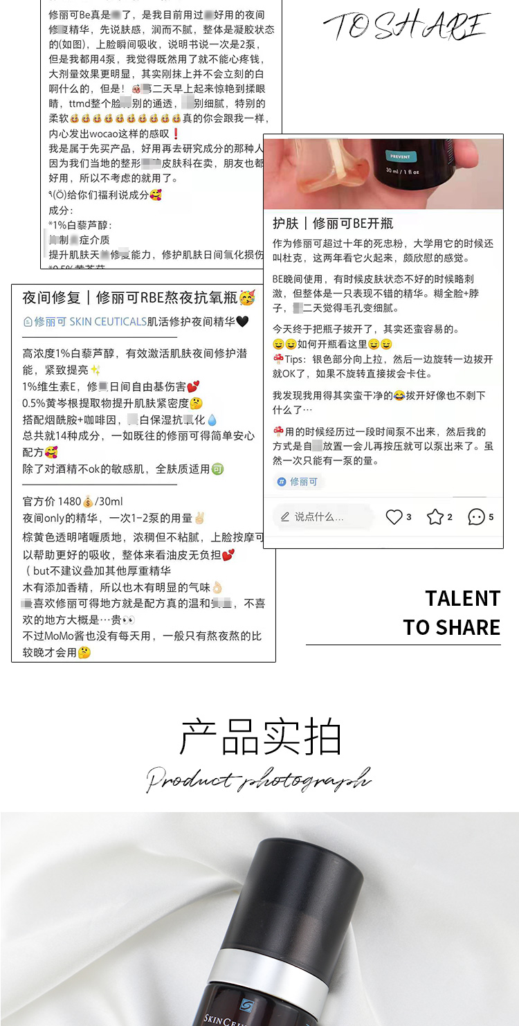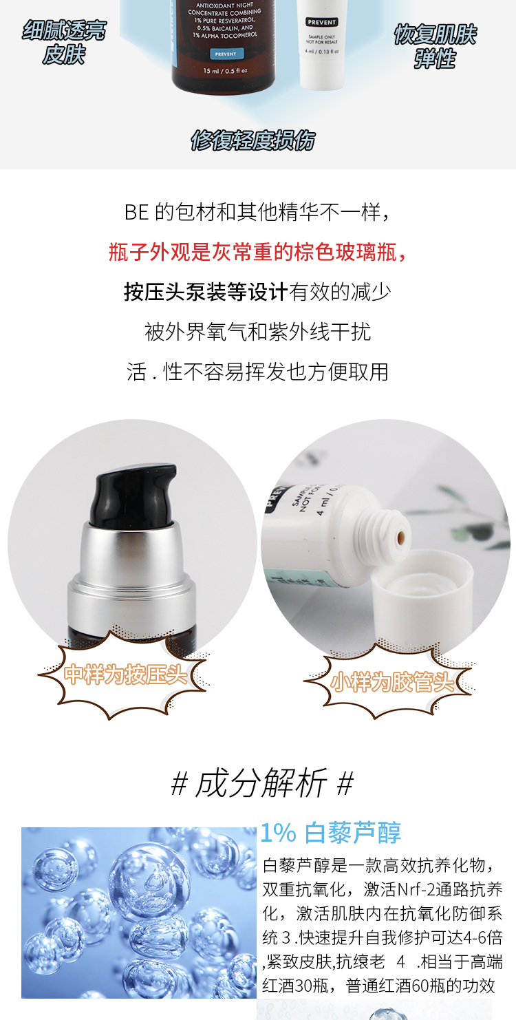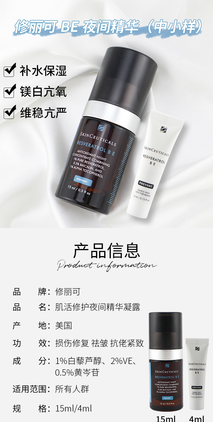 修丽可BE肌活修护夜间精华凝露精华15ml(中样)