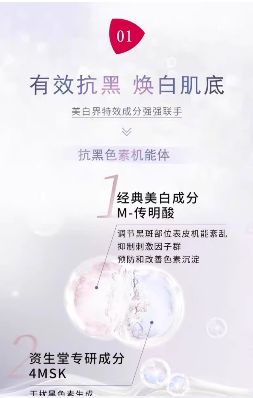 成分是资生堂的专研成分4MSK和经典美白成分M-传明酸