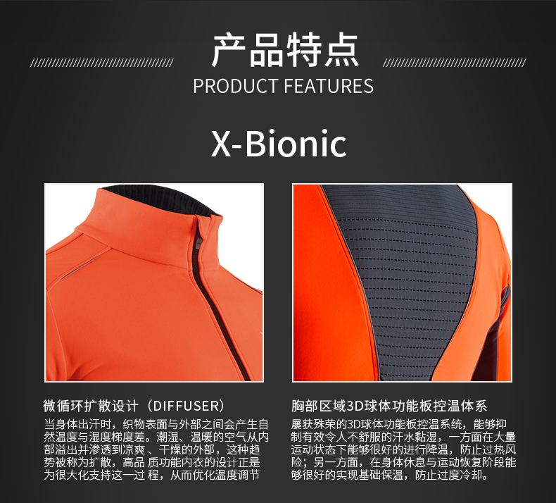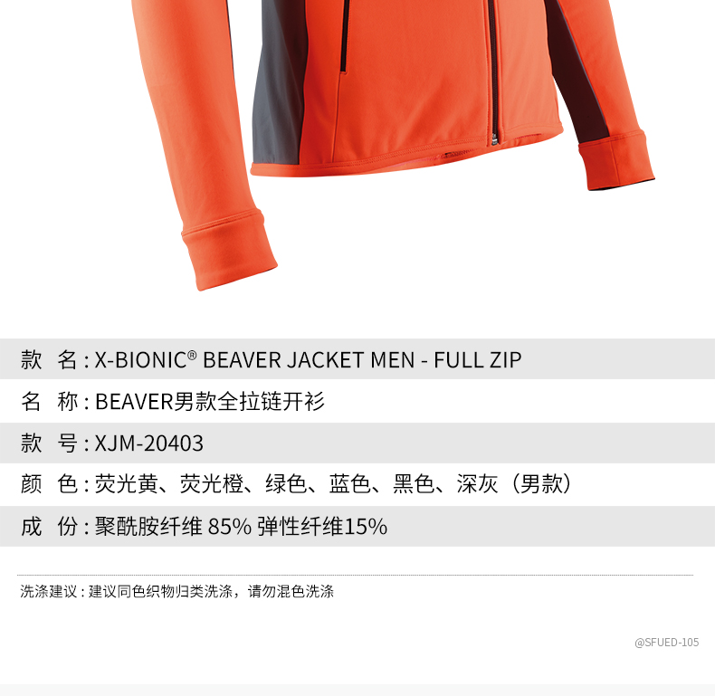 X-BIONIC 仿生海狸男士训练运动外套/中间层全拉链开衫 XJM-20403
