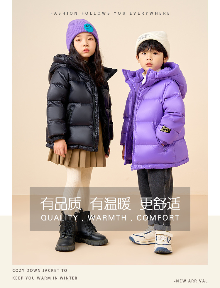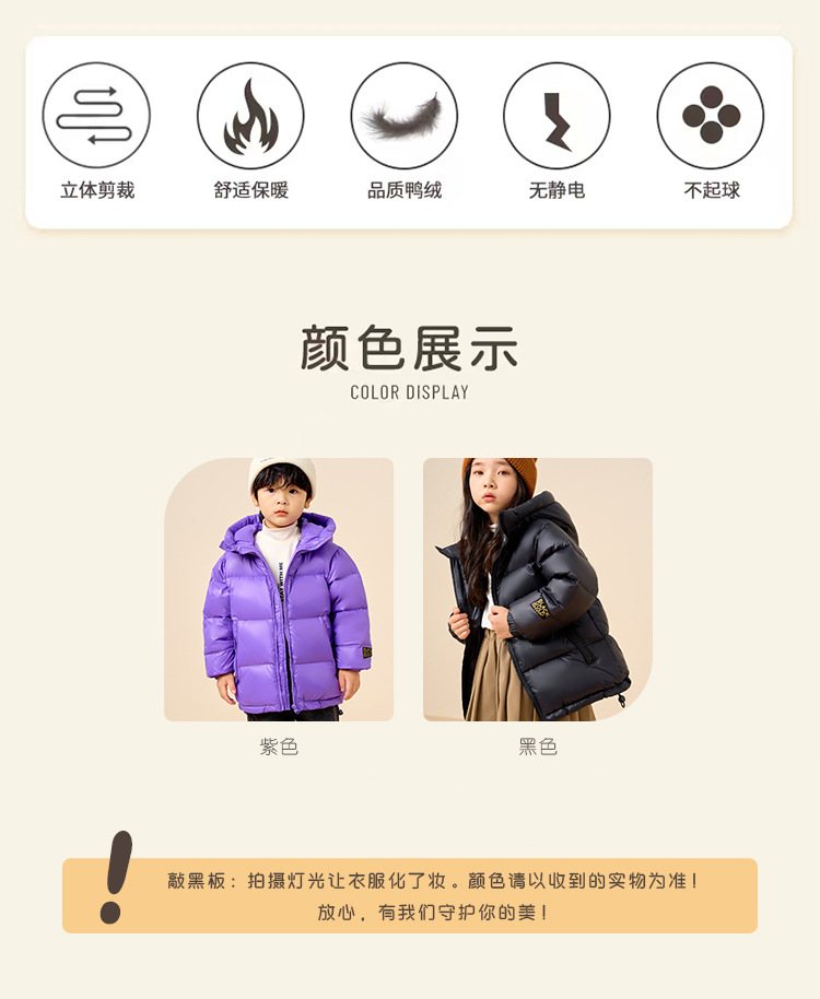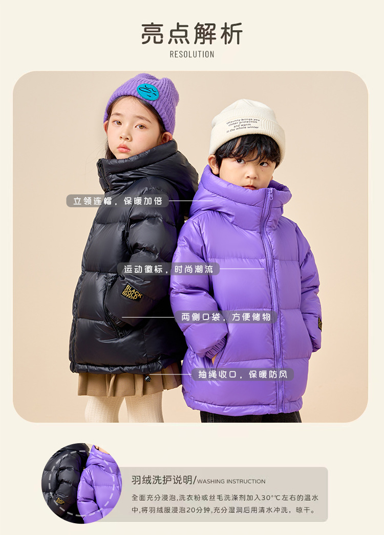 【专利锁温!背暖科技】儿童羽绒服,自主发热;冬季新款黑色金标亲子装白鸭绒,男女童小孩加厚外套